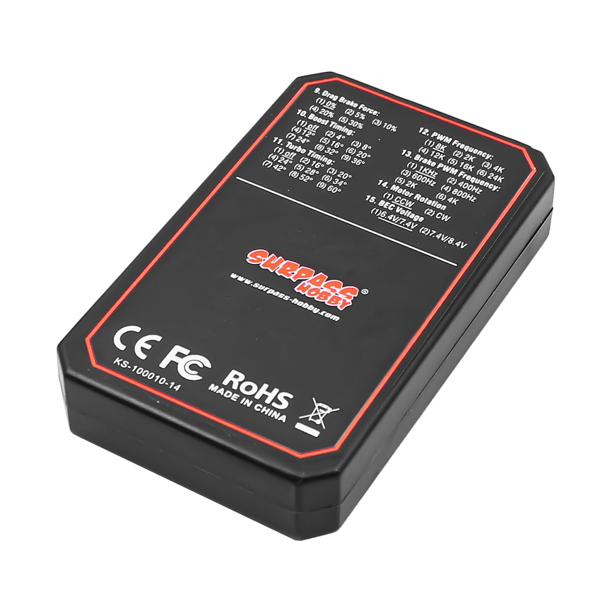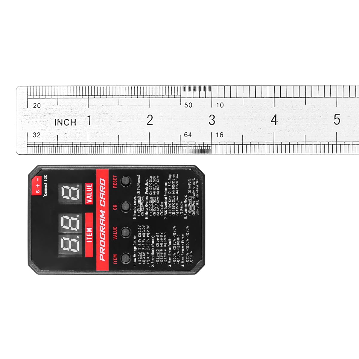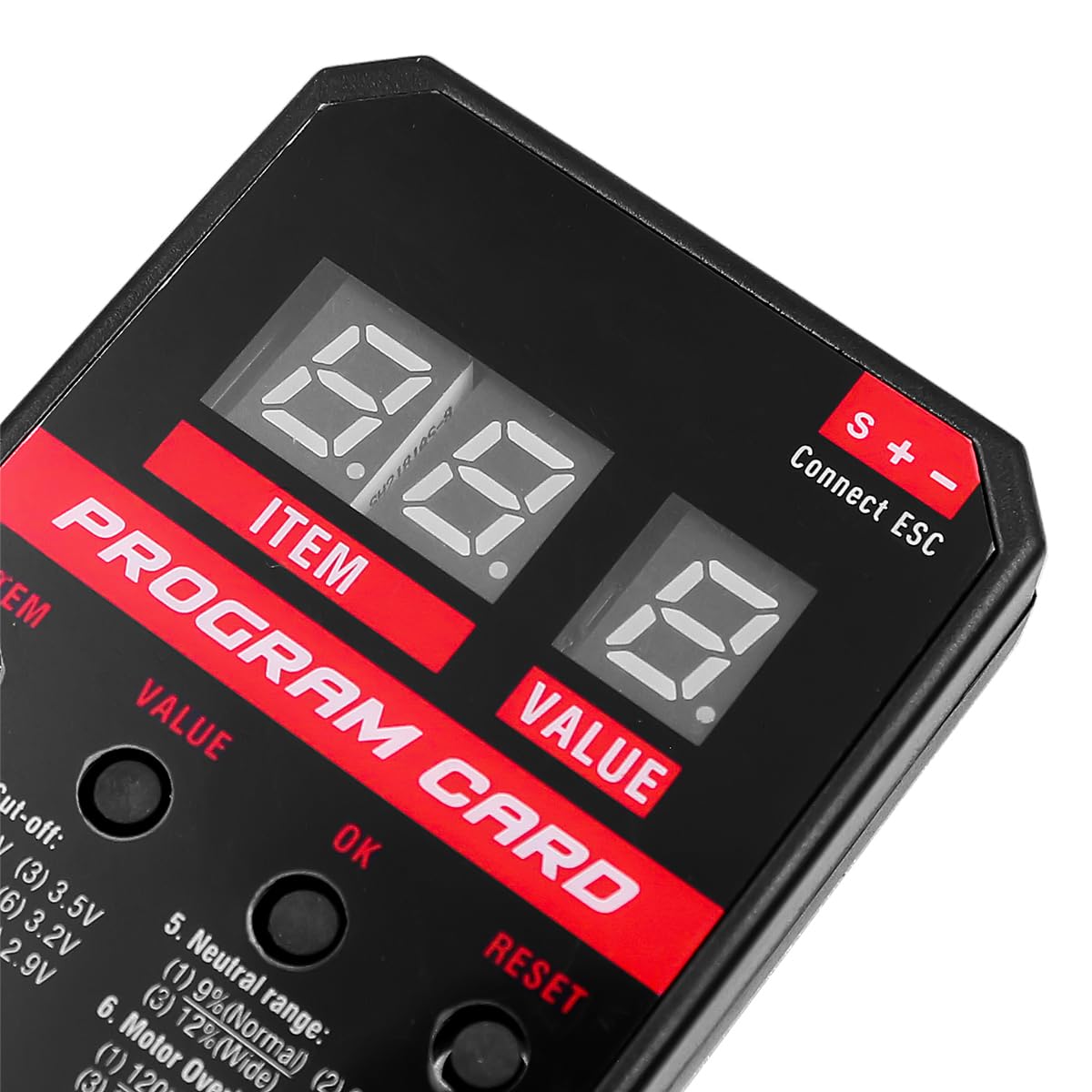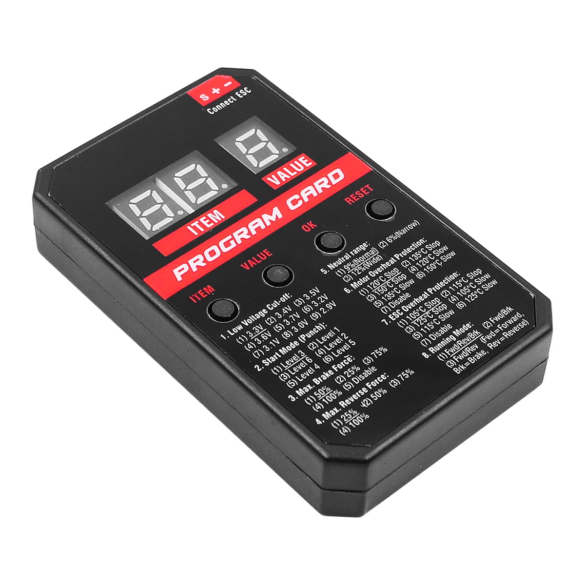 Compatibile con Rocket-RC e Super Hobby ESC, non può essere utilizzato con altre marche di ESC. Con spegnimento a bassa tensione, modalità di avvio, forza frenante massima, forza di inversione massima, funzione gamma neutra, protezione da surriscaldamento motore, protezione da surriscaldamento ESC, modalità di funzionamento, forza frenante di resistenza e altre funzioni. Con display a LED, lettura chiara, facile da osservare. L'interfaccia intuitiva rende la programmazione dell'ESC facile e veloce. Plug and play, basta collegare il controller e accenderlo, impostare il valore, è molto semplice.