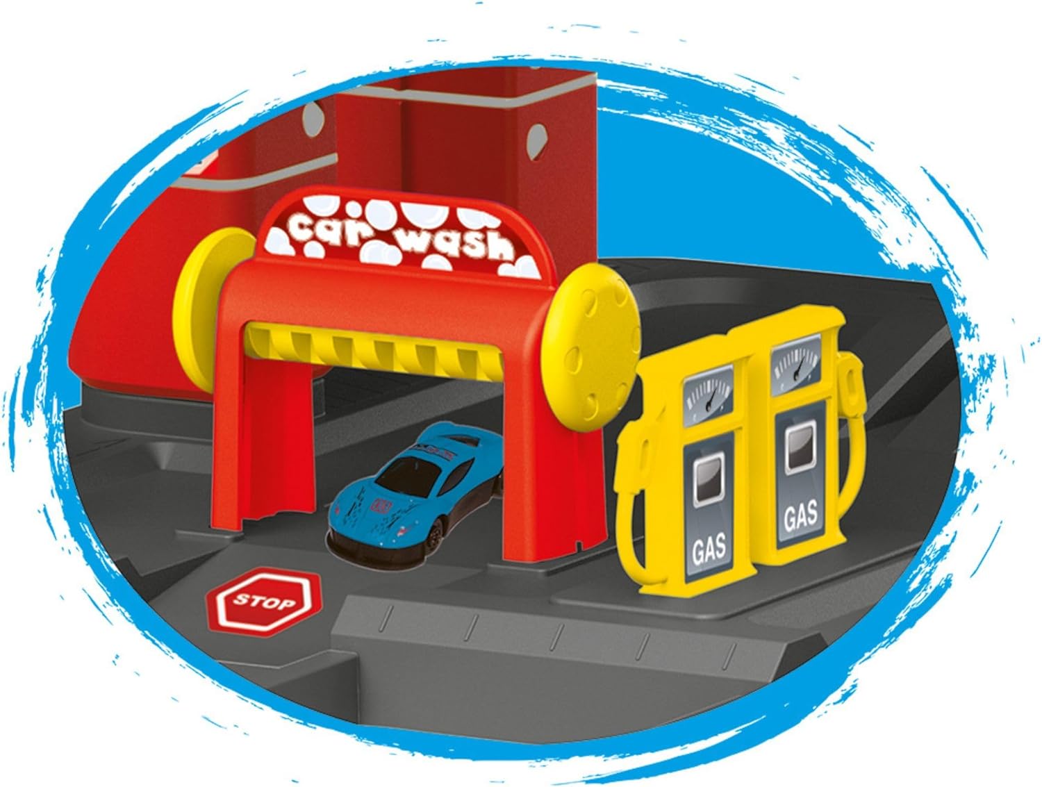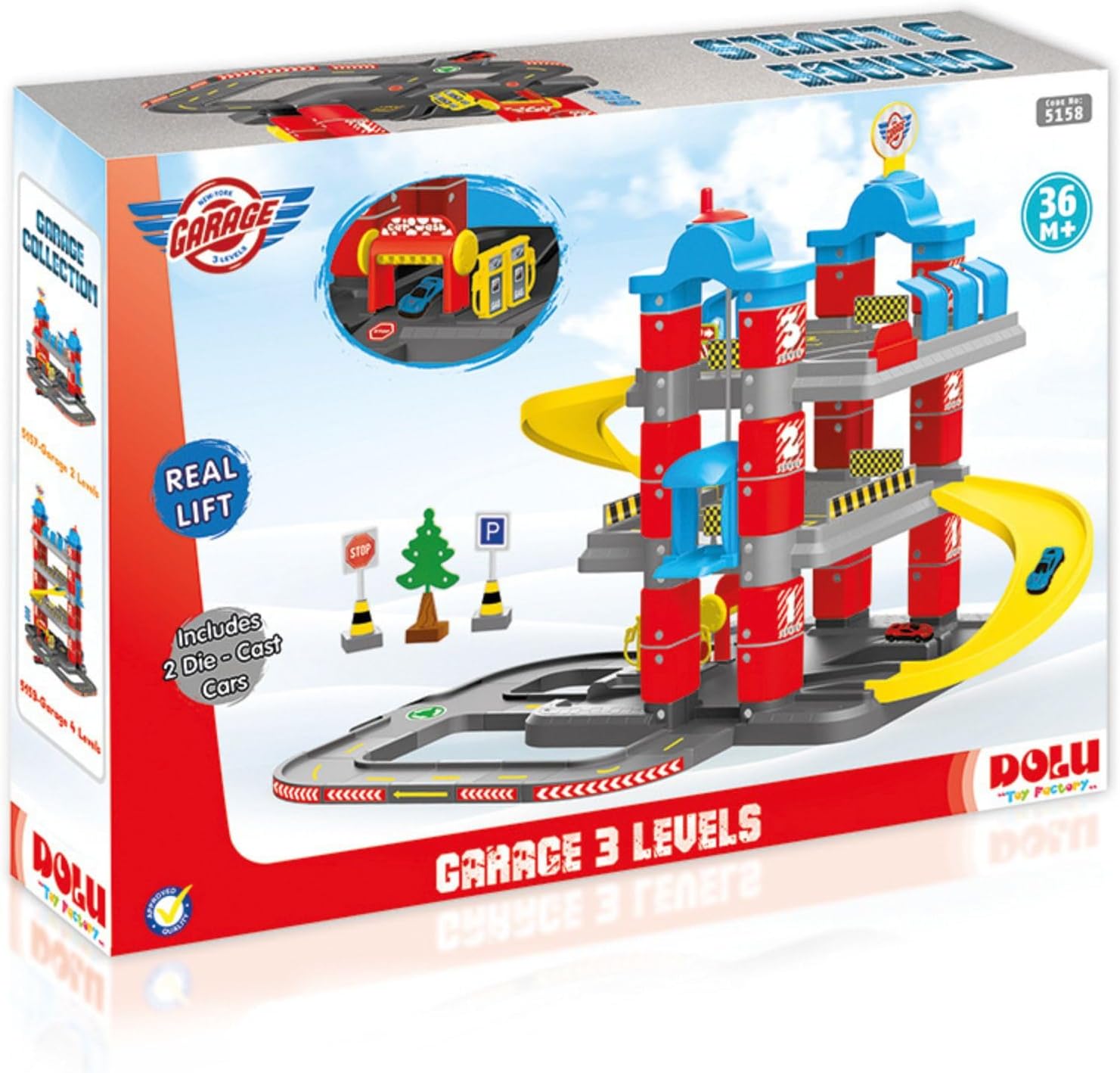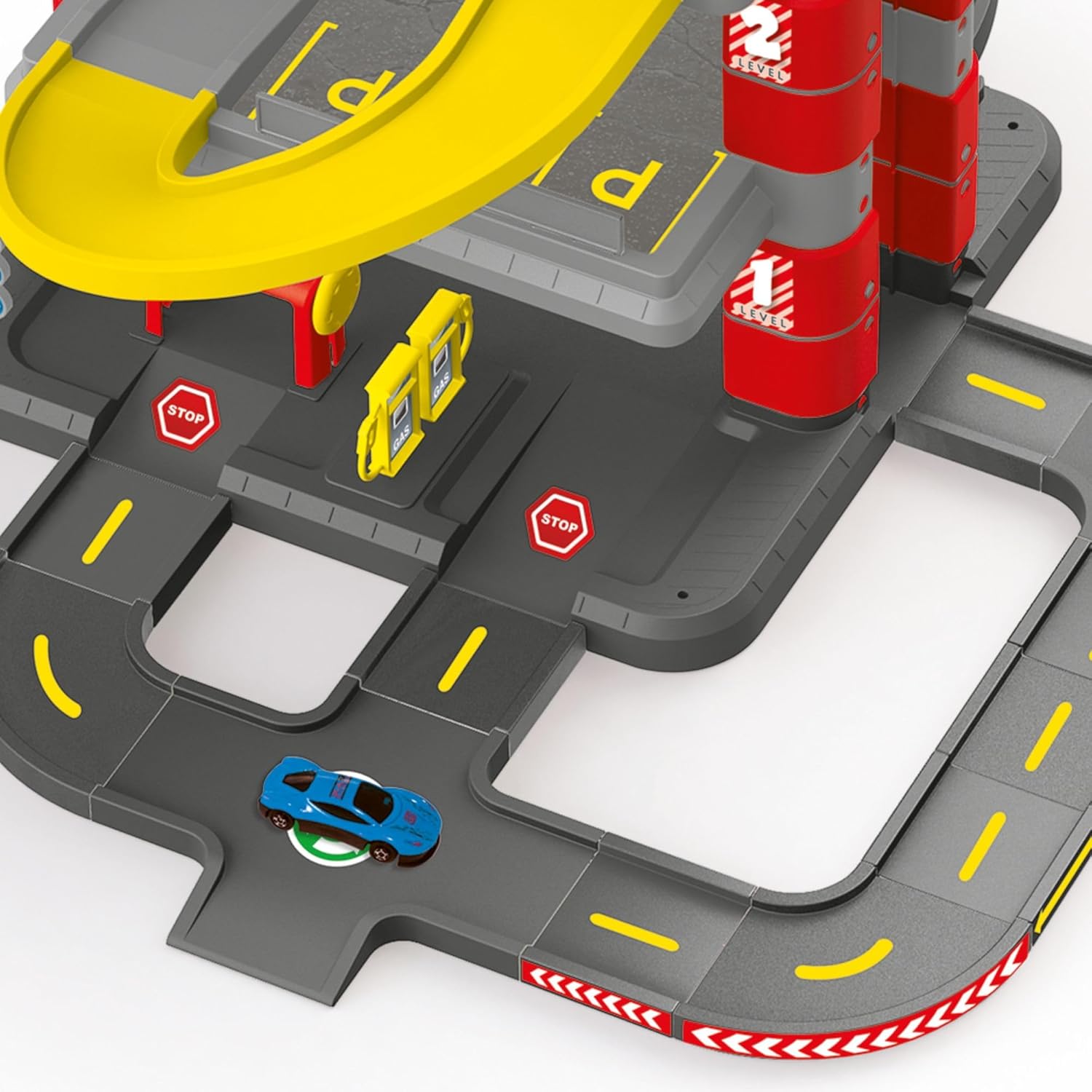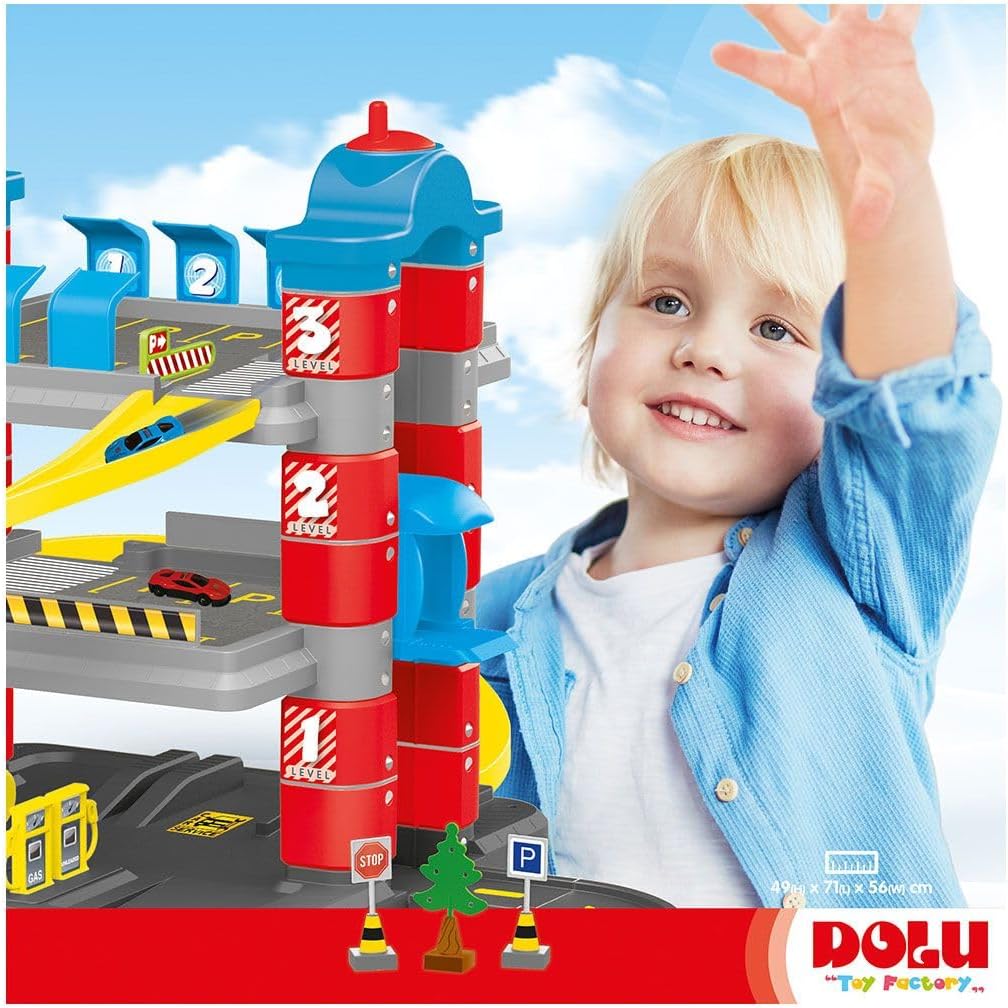 Ci sono due auto di metallo I bambini traggono vantaggio dalle tendenze del gioco di ruolo quando guidano la loro auto dal livello superiore al livello inferiore. Funzione di sollevamento disponibile Adatto per 36 mesi, adesivi e figure