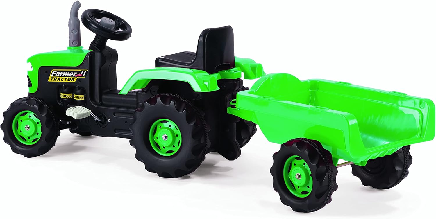 Divertimento a pedali: questo trattore cavalcabile è azionabile a pedali e favorisce l'attività fisica e lo sviluppo delle capacità motorie dei bambini. Rimorchio rimovibile: il trattore è dotato di un rimorchio rimovibile che migliora il gioco permettendo ai bambini di trasportare giocattoli, bambole o anche i loro amici a quattro zampe. Volante e clacson: il volante facile da usare e il clacson funzionale con un divertente clacson aggiungono elementi interattivi all'esperienza di gioco. Costruzione robusta: realizzato in plastica resistente, questo trattore è costruito per resistere ai rigori del gioco all'aperto e garantire un divertimento duraturo. Portata massima: Con un peso massimo di 35 kg, è adatto a un'ampia gamma di bambini.