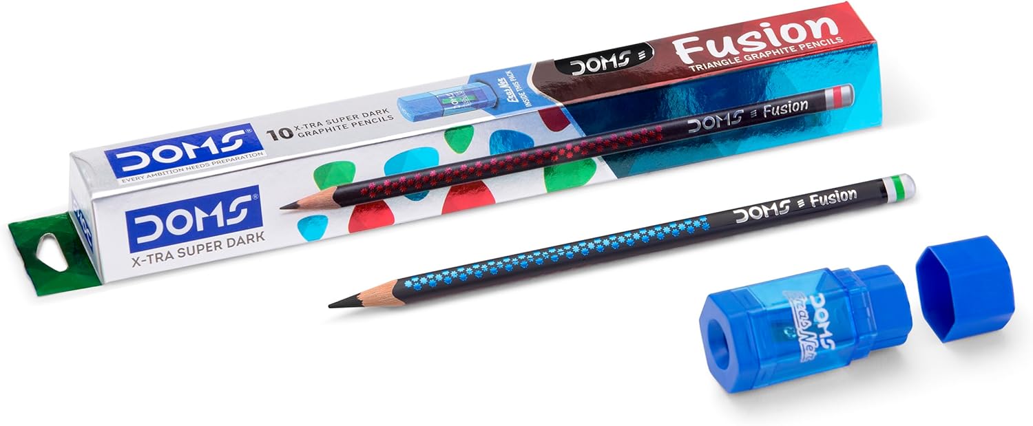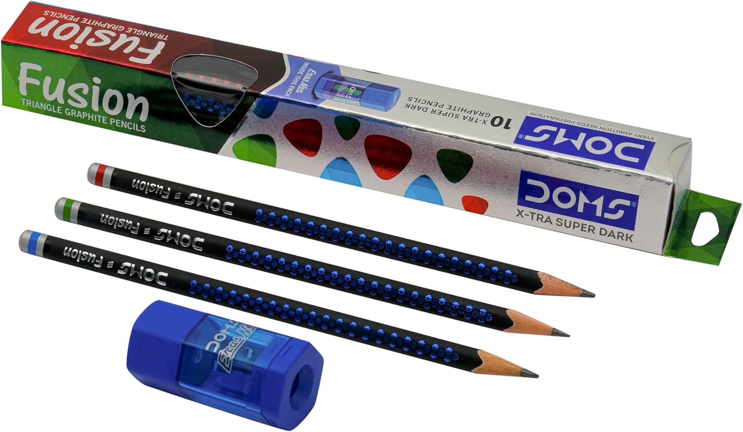 ✏️ MINA EXTRA DARK: Spessore 2,7 mm per scrittura morbida, uniforme e precisa. 🔺 FUSTO TRIANGOLARE 7,2 MM: Design ergonomico che garantisce comfort e presa sicura. 💪 VERSATILI E RESISTENTI: Perfette per scuola, ufficio, appunti, schizzi e disegno creativo. 📦 FORMATI DISPONIBILI: Kit completo con accessori, blister compatto o barattolo da 100 pezzi. ✏️ DOMMY, LA MASCOT DOMS: Un simpatico compagno che rende lo studio e la creatività più divertenti per i bambini.