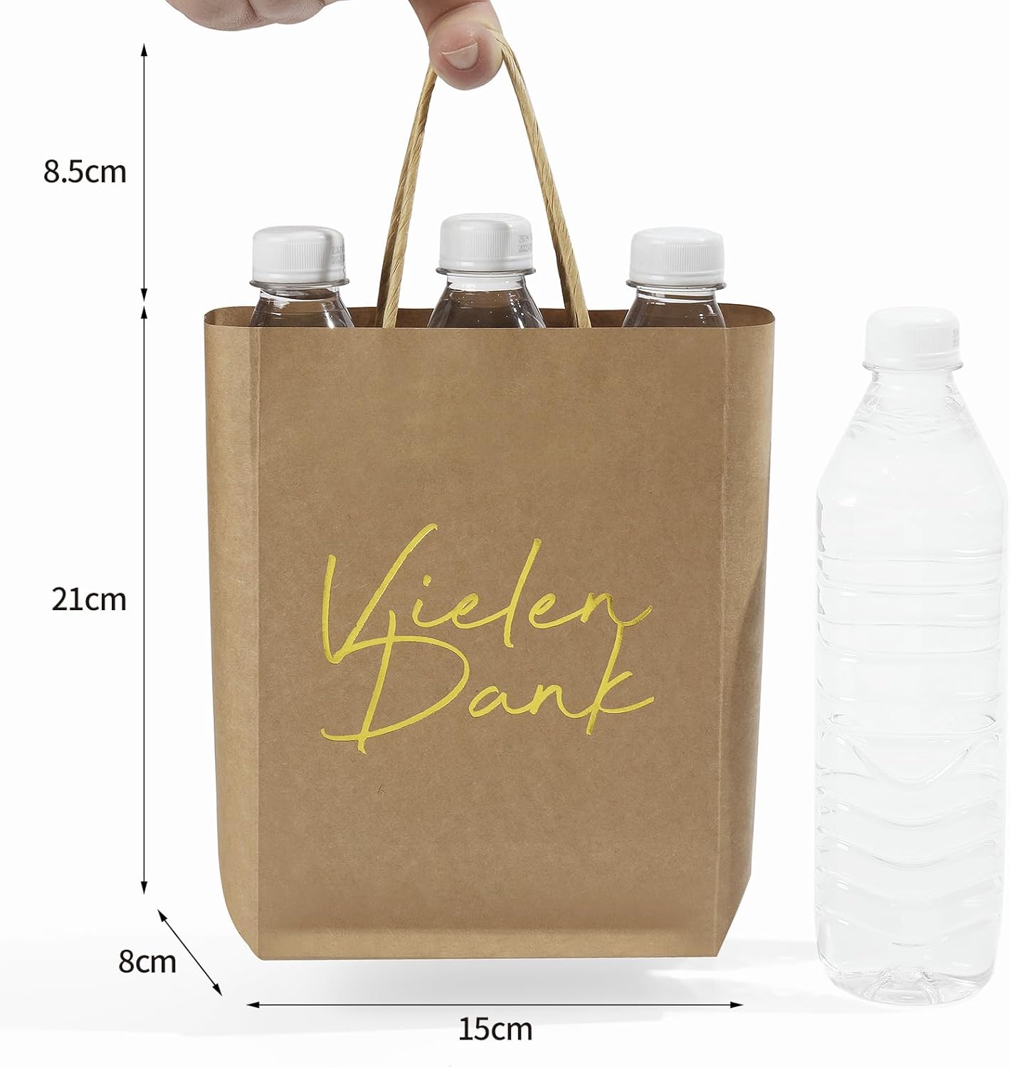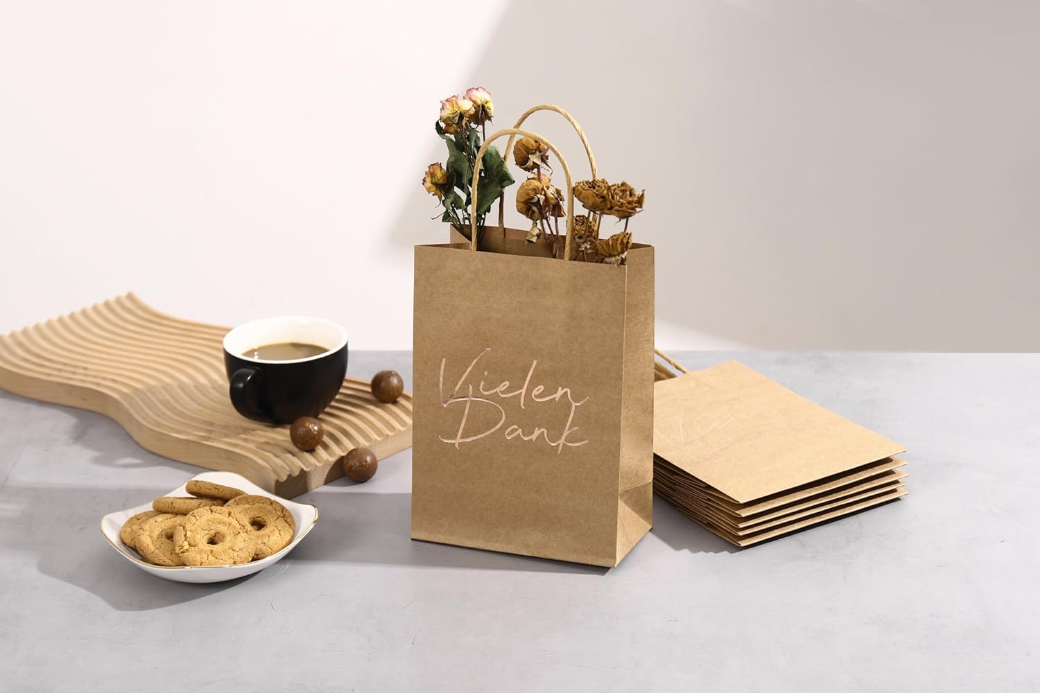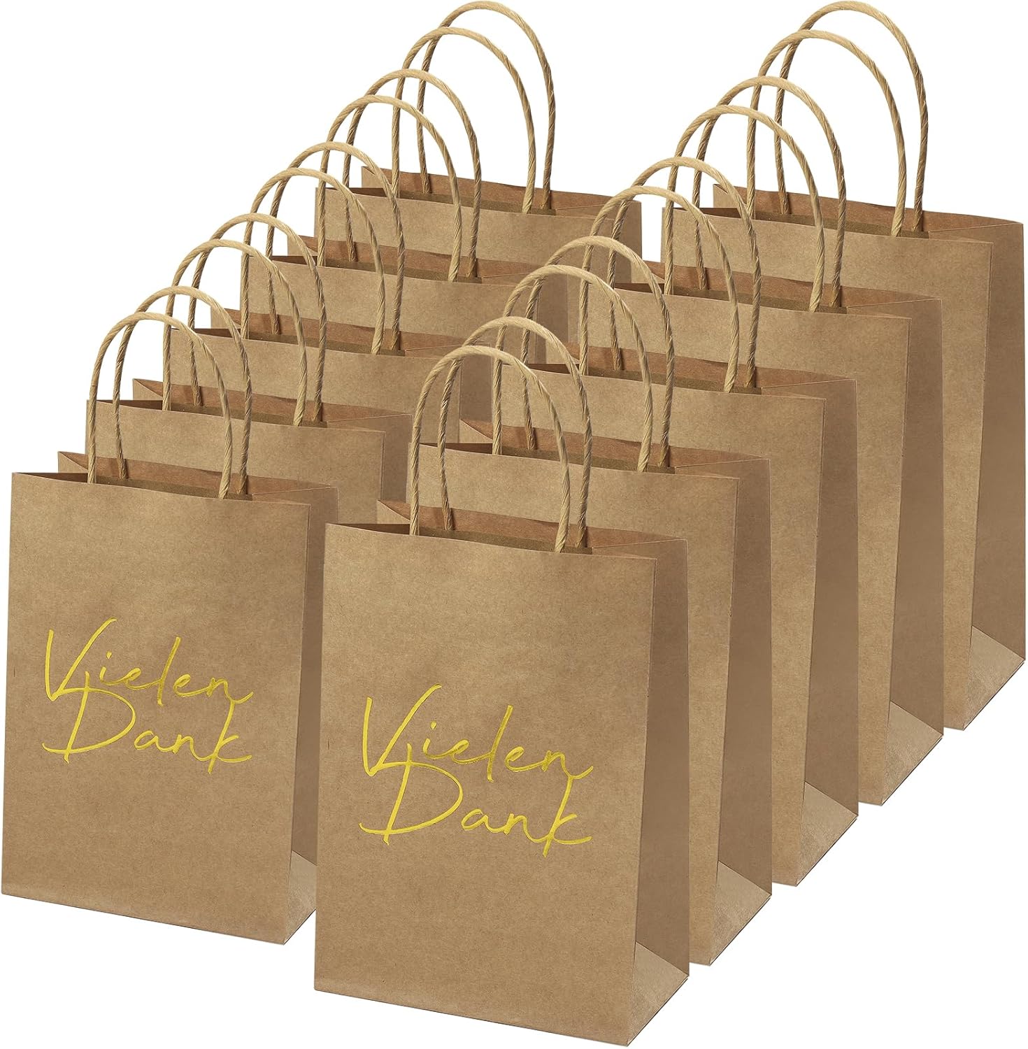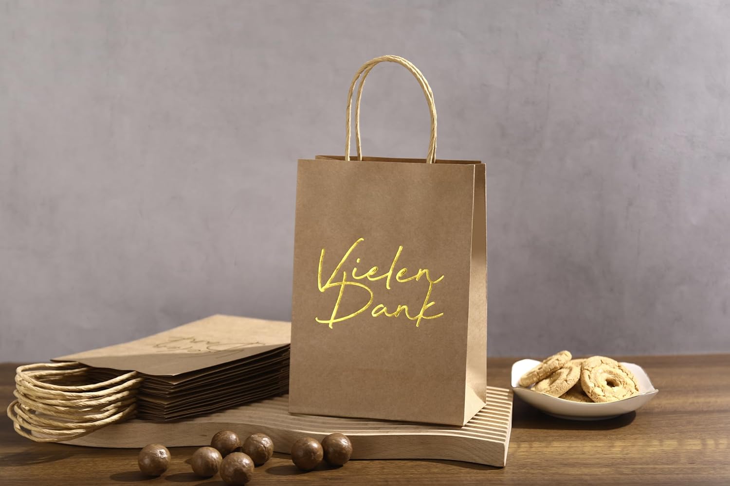 Donindis 20 sacchetti di carta con manico, grazie, carta kraft, lamina d'oro, 21 * 15 * 8 cm