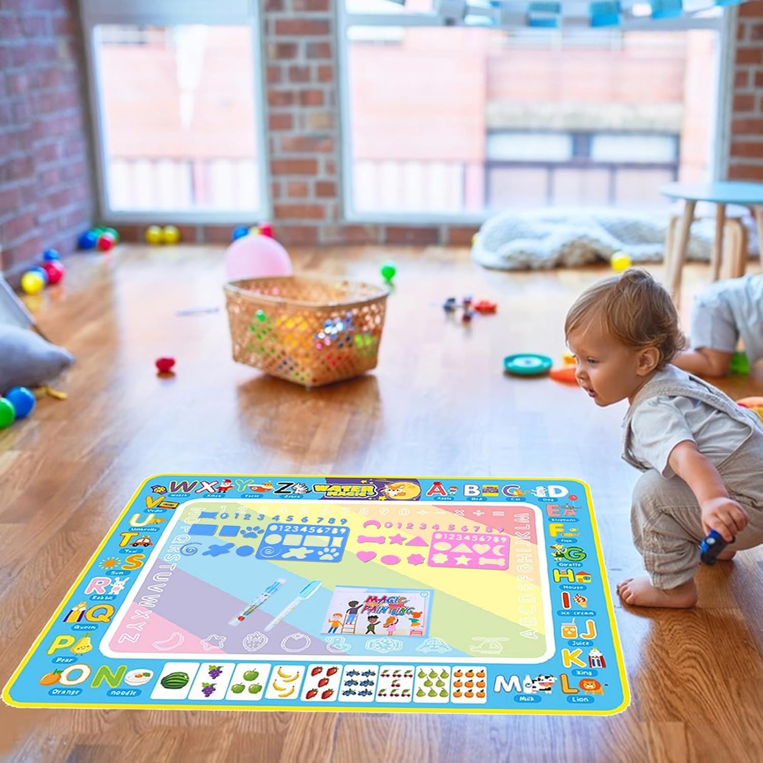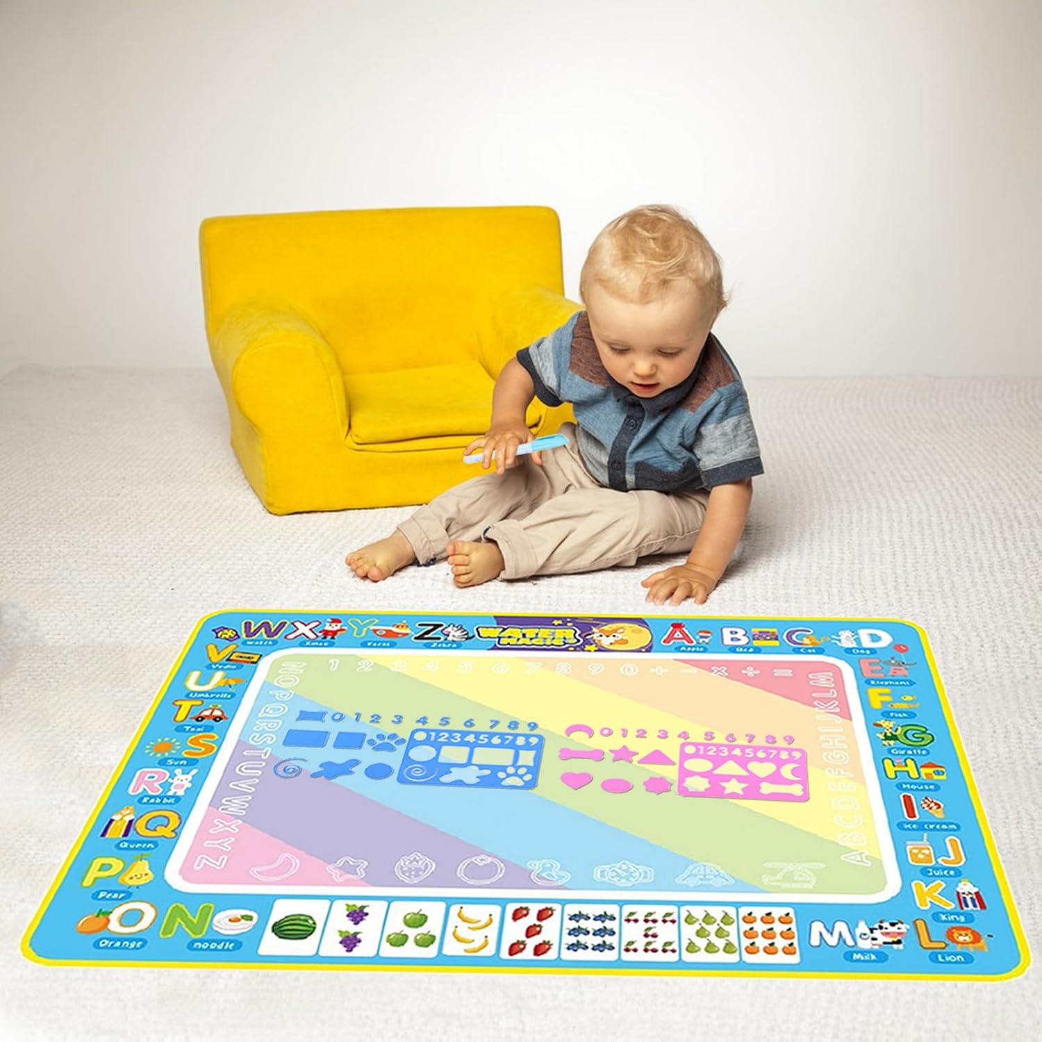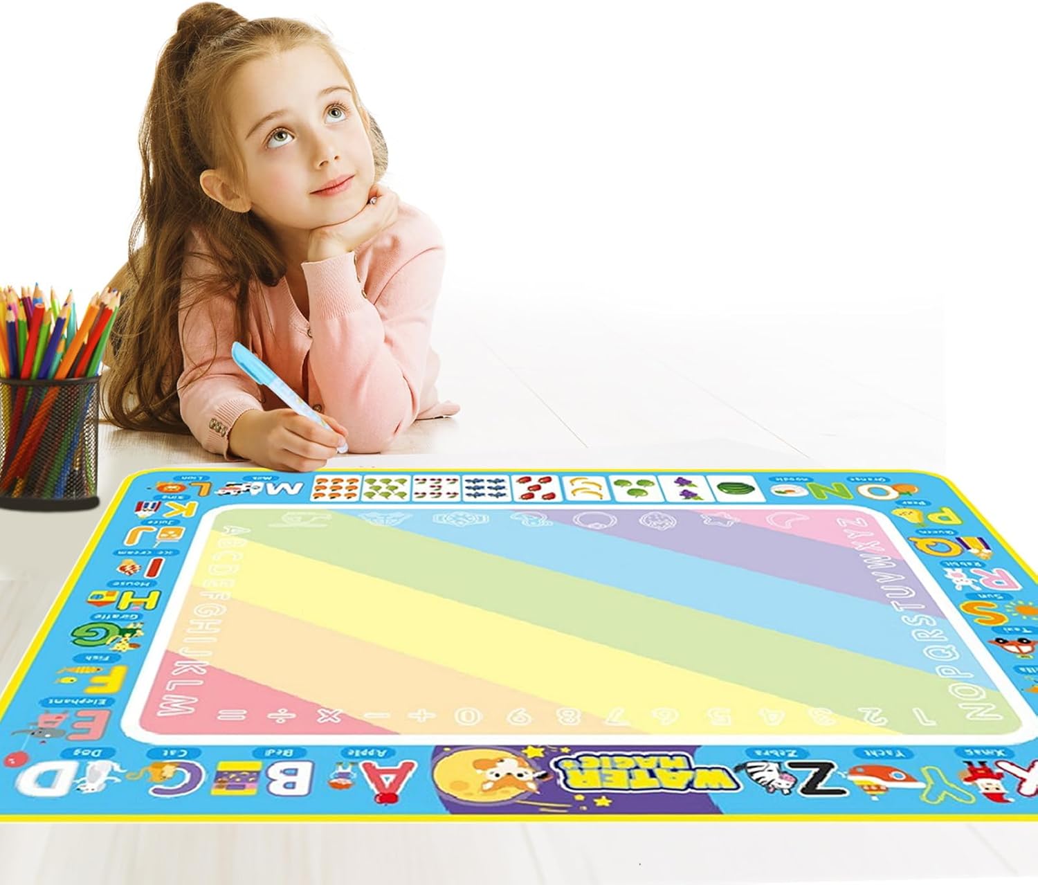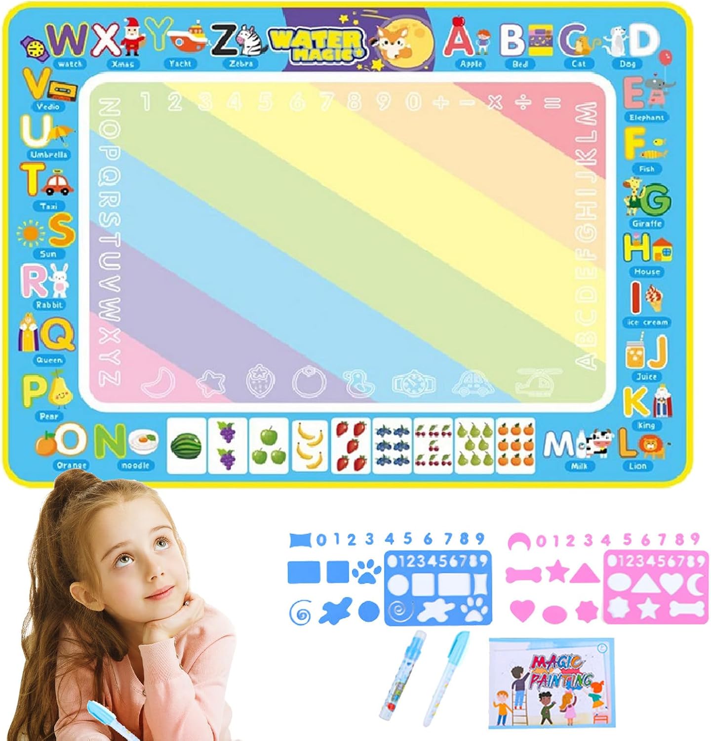 Doodling senza pasticcio: incoraggia il lato artistico di tuo figlio con questo tappetino da scarabocchi d'acqua. Adoderanno scarabocchiare, disegnare e dipingere con acqua e penne di fascino senza pasticcio. Questo è un modo colorato per mantenere pulite le superfici e un'attività preferita per i bambini di qualsiasi età. Uso ripetuto: il nostro tappetino per scarabocchi d'acqua fornisce divertimento senza casi per i bambini. Usando solo acqua pulita, possono attingere ai cuscinetti riutilizzabili per una maggiore creatività. Dopo 5-10 minuti, i disegni scompaiono automaticamente, rendendolo senza problemi. Non sono necessarie vernici o penne, riempi semplicemente i pennarelli con acqua di rubinetto. Usa semplicemente: stimola la creatività di tuo figlio con il nostro tappetino da scarabocchi d'acqua. Questo set completo include cuscinetti d'acqua reali, 2 penne speciali, francobolli, stencil e un rullo di stampa super cool: tutto ciò di cui hanno bisogno per far brillare le loro abilità artistiche. Convenientemente creativo: tieni il tuo bambino impegnato alle corse in auto con il nostro tappetino da scarabocchi d'acqua. Offrendo un grande spazio da 80x60 cm, possono disegnare più immagini con penne d'acqua. Soprattutto: non sono necessari carta o inchiostro. Grandi idee regalo: equipaggia tuo figlio con il tappetino da per incoraggiare la creatività e la conoscenza. Nessun disordine, solo divertente. È ideale per tutte le età come regalo memorabile e per un compleanno o Natale.