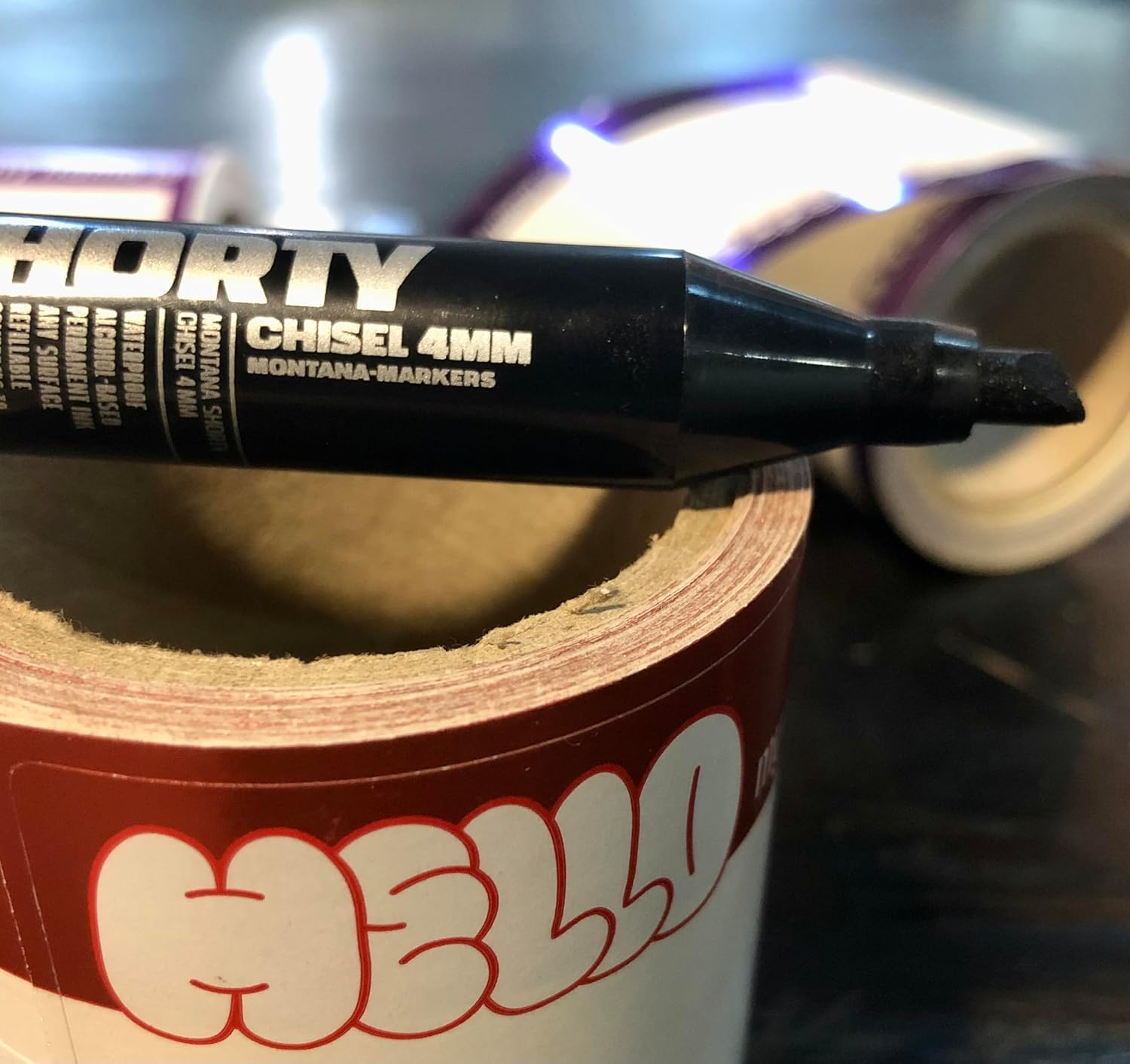 ❤ Classico motivo “Hello my Name Is” - 50 adesivi per rotolo - rosso metallizzato ❤ Dimensioni: 12 x 8 cm ❤ Superficie riflettente per effetti forti, ideale per graffiti, street art e progetti creativi ❤ Adesione duratura su tutte le superfici, perfetta per tag, firme e disegni ❤ Il set contiene anche il pennarello Montana Shorty in nero intenso (punta da 3 mm) - compatto, permanente, maneggevole e ideale per linee precise o tag veloci! ❤ Ideale per dichiarazioni creative!