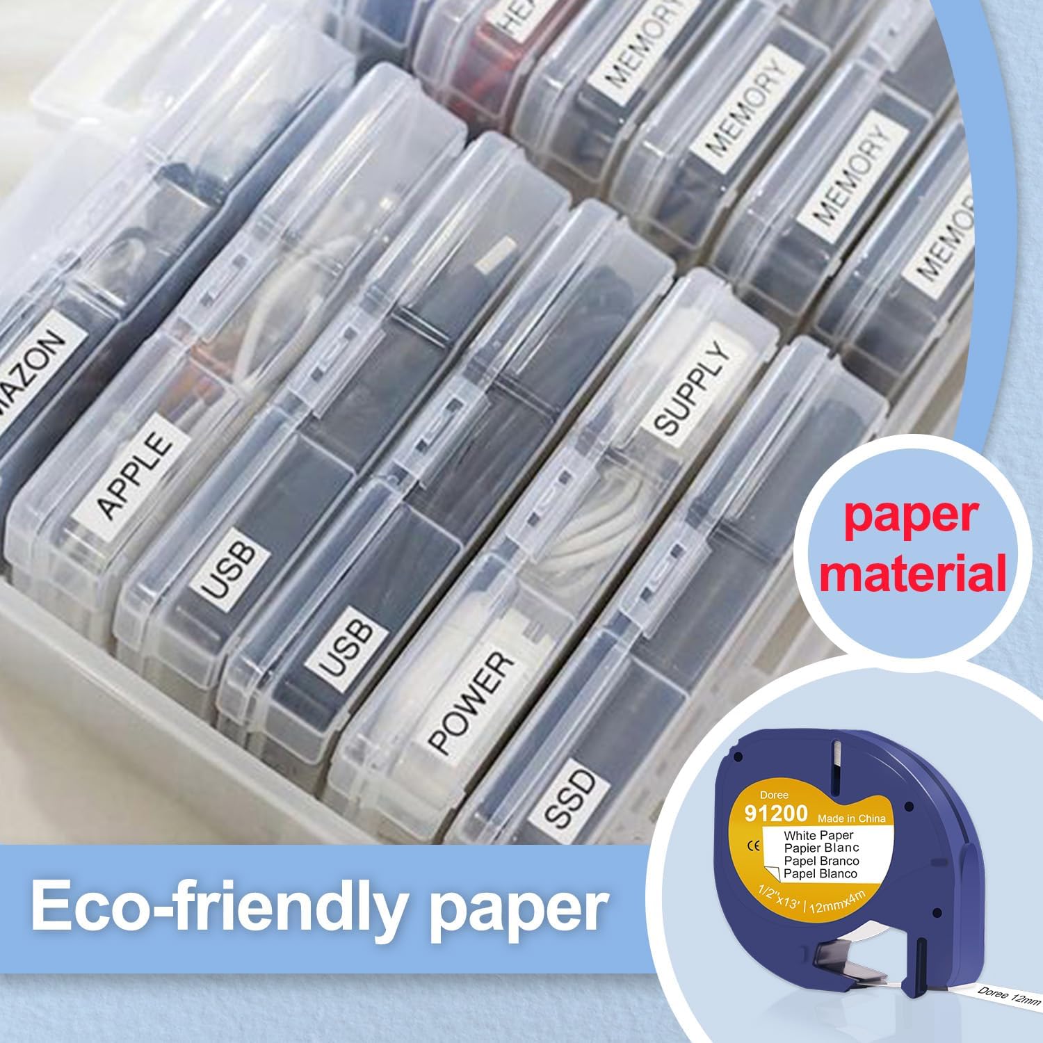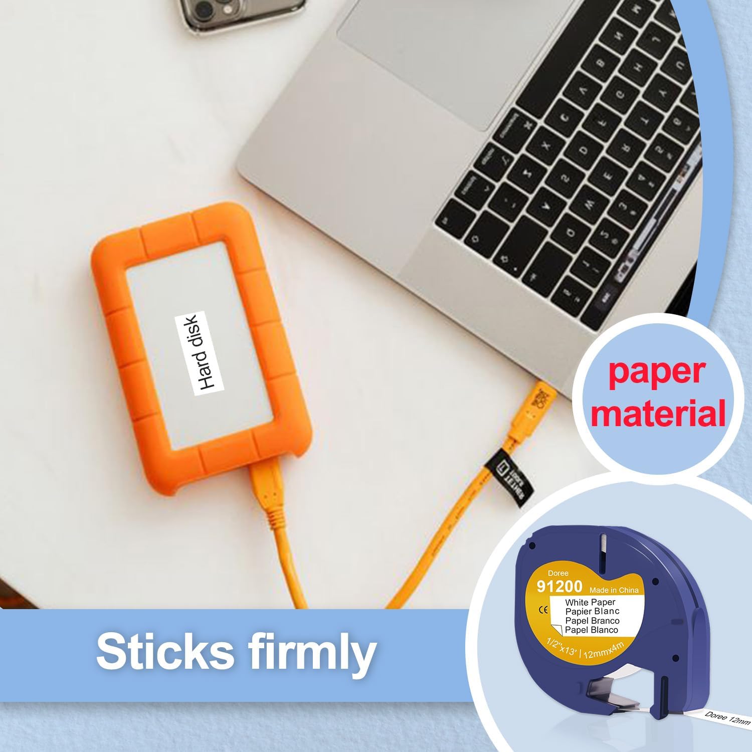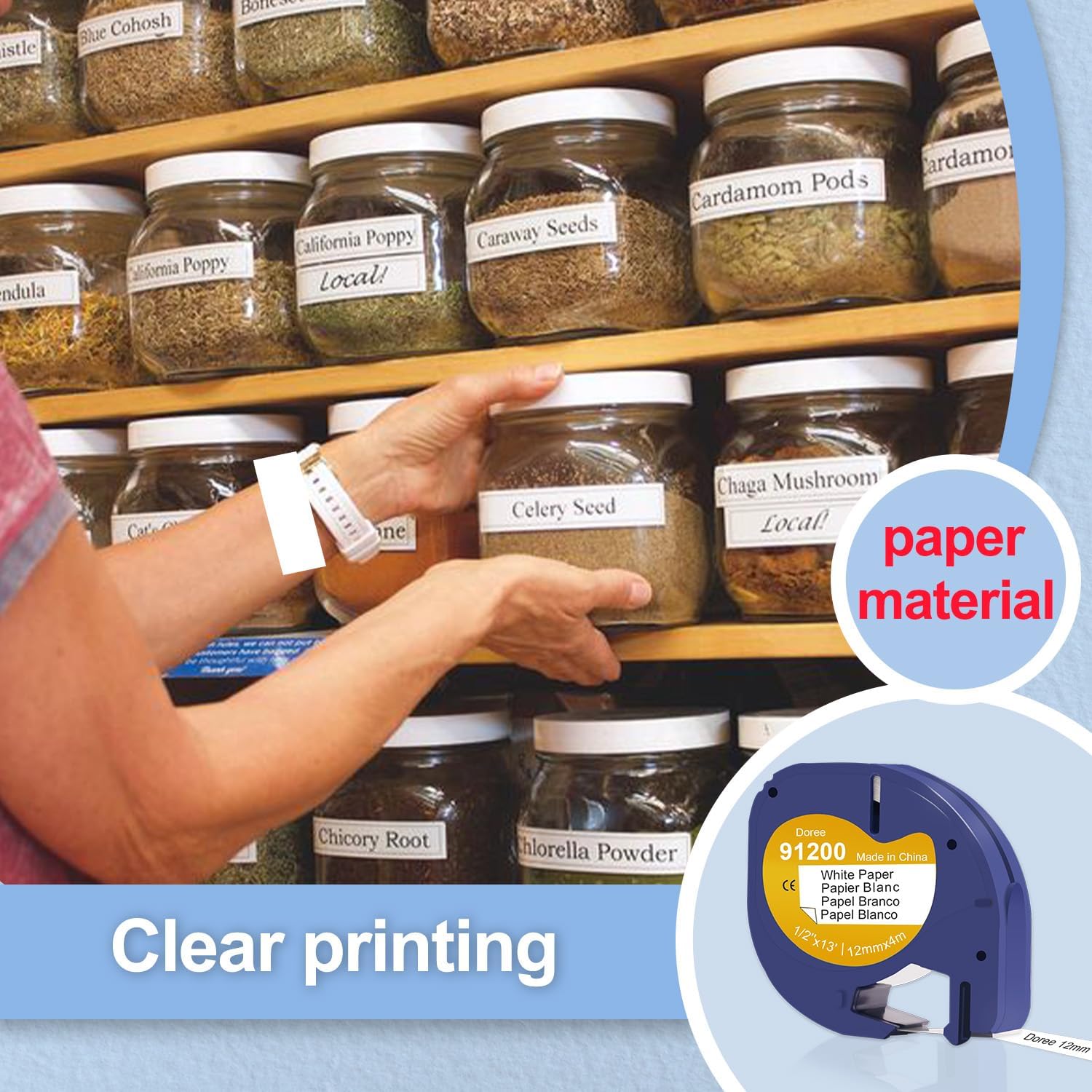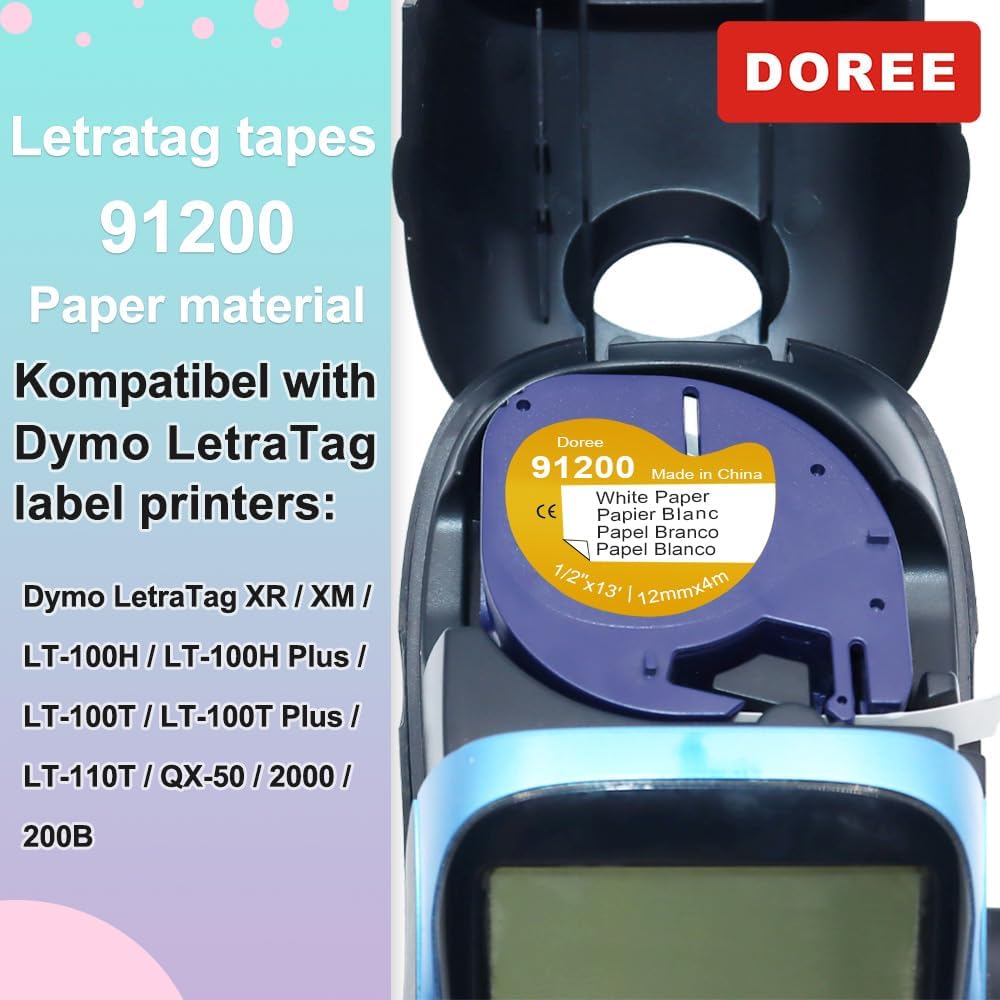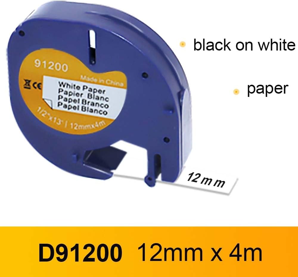 Modelli compatibili: Dymo LT Label Printer LT-100T, LT-100T Plus, LT-100H, LT-100H Plus, QX50 Dimensioni e colore: 12 mm x 4 m, confezione da 10 pezzi nero su bianco Caratteristiche: facile da usare, facile da staccare, stampa chiara e naturale, resistente all'olio, impermeabile, resistente alla corrosione, forte adesione Ampia gamma di utilizzi: stampa per ufficio, etichettatura di prodotti chimici, stoccaggio/classificazione di prodotti di cancelleria, ecc. Nastro per etichette di alta qualità. Resistente alle intemperie, facile da leggere, si attacca sia alle lattine di plastica che alle lattine metalliche, l'etichetta non sbiadisce.