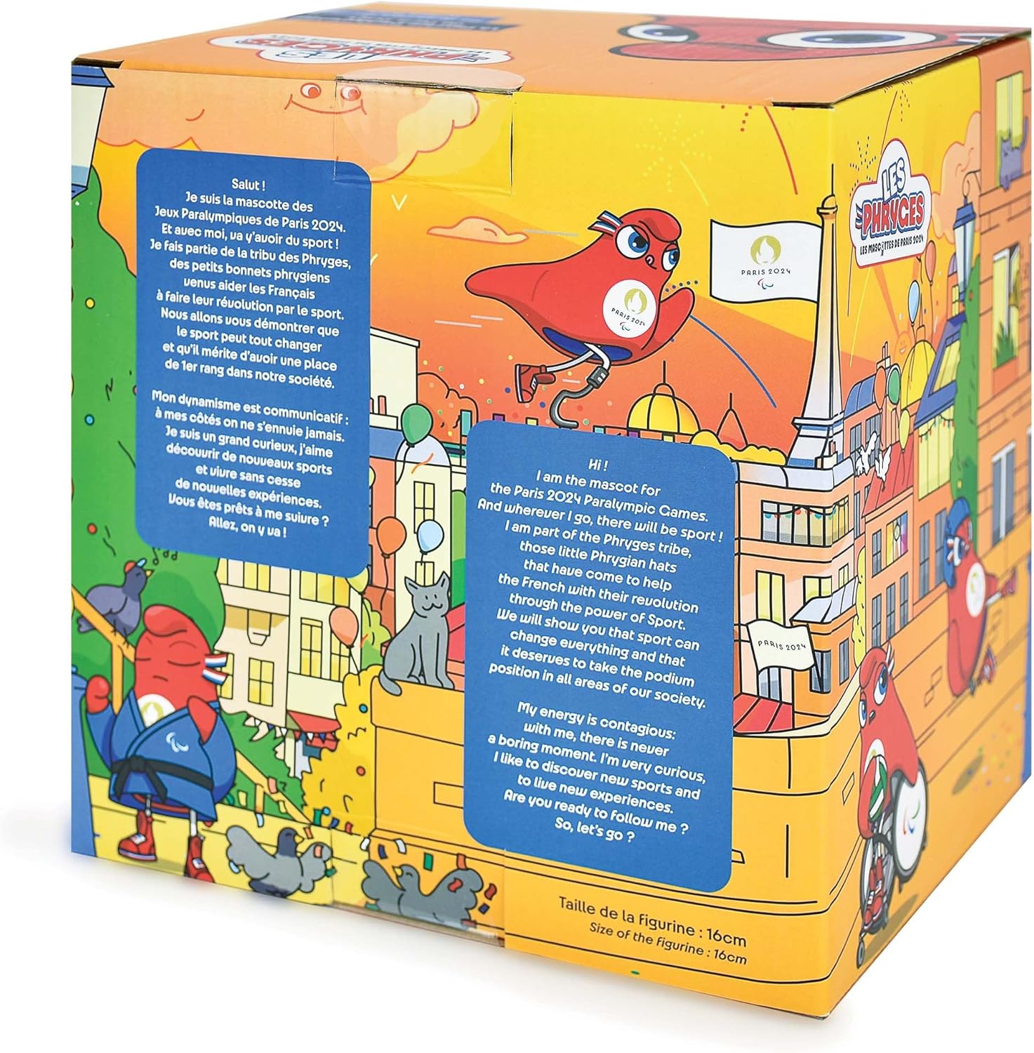FIGURINE DA COLLEZIONARE JO PARIS 2024: le varie mascotte della tribù dei Frygi presentano diversi eventi sportivi, monumenti che saranno visibili durante questa Olimpiade: handisport, judo, skateboard, handisport, surf. FIGURINE NOVATRICE: I creatori della Mascotte hanno voluto segnare una rottura con le precedenti edizioni dei Giochi e dargli senso. Le mascotte sono ispirate al cappello frigio: un simbolo familiare, che rappresenta lo spirito francese. SVILUPPA L'IMAGINARIO DEI BAMBINI: le Figure ufficiali dei Giochi Olimpici e Paralimpici 2024 trasmettono i valori importanti dello sport, dell'inclusione, della fiducia in se stessi! Con loro tutto diventa possibile! FIGURINE DI QUALITÀ: le statuette in resina sono state accuratamente dipinte per ritrascrivere alla perfezione le espressioni, il pupazzo e la personalità di ogni mascotte sportive. IDEA REGALO: Questa statuetta è perfetta da regalare ai bambini. Farà un magnifico ricordo delle GU di Parigi 2024 da mettere nella stanza del tuo bambino.