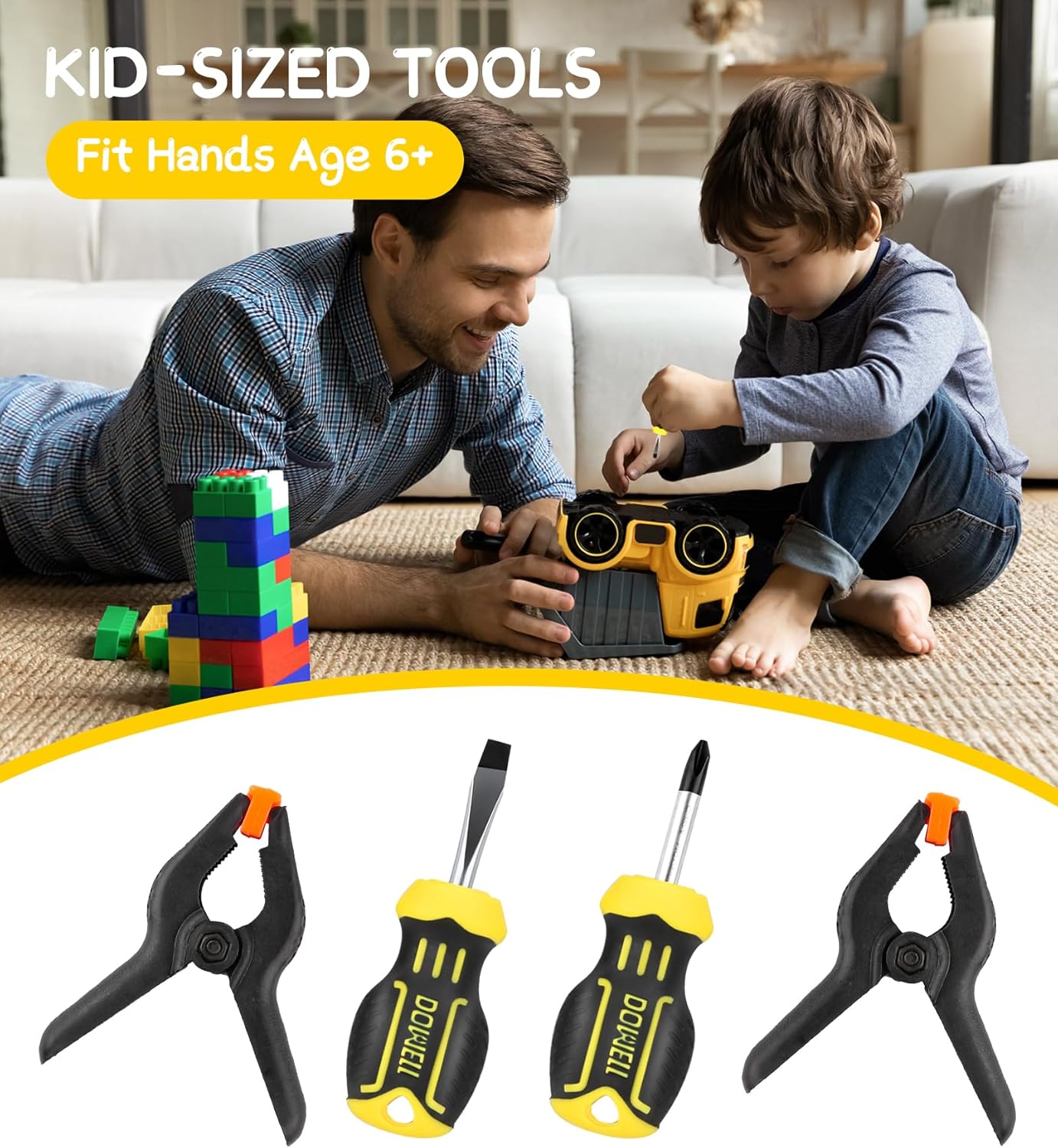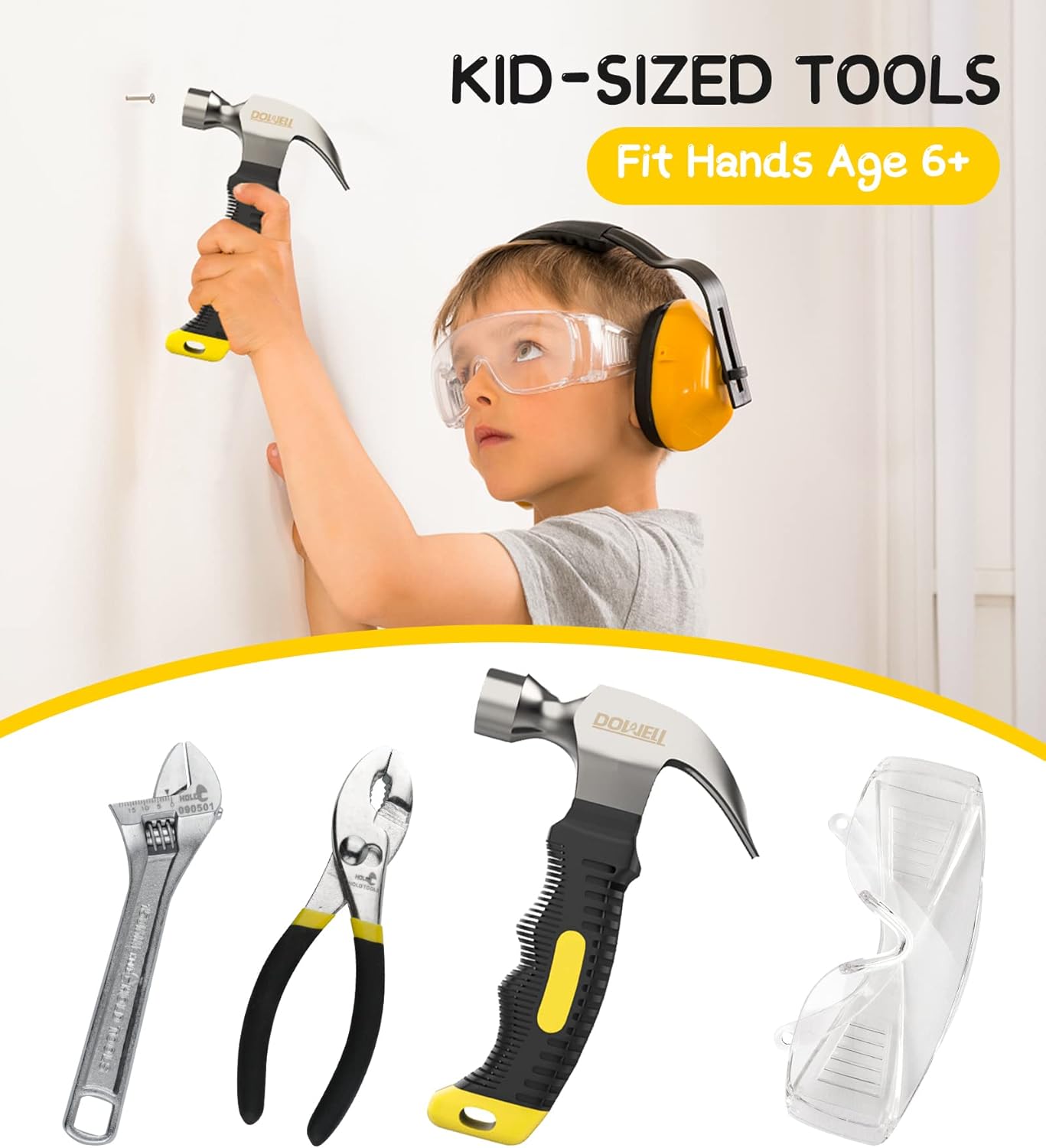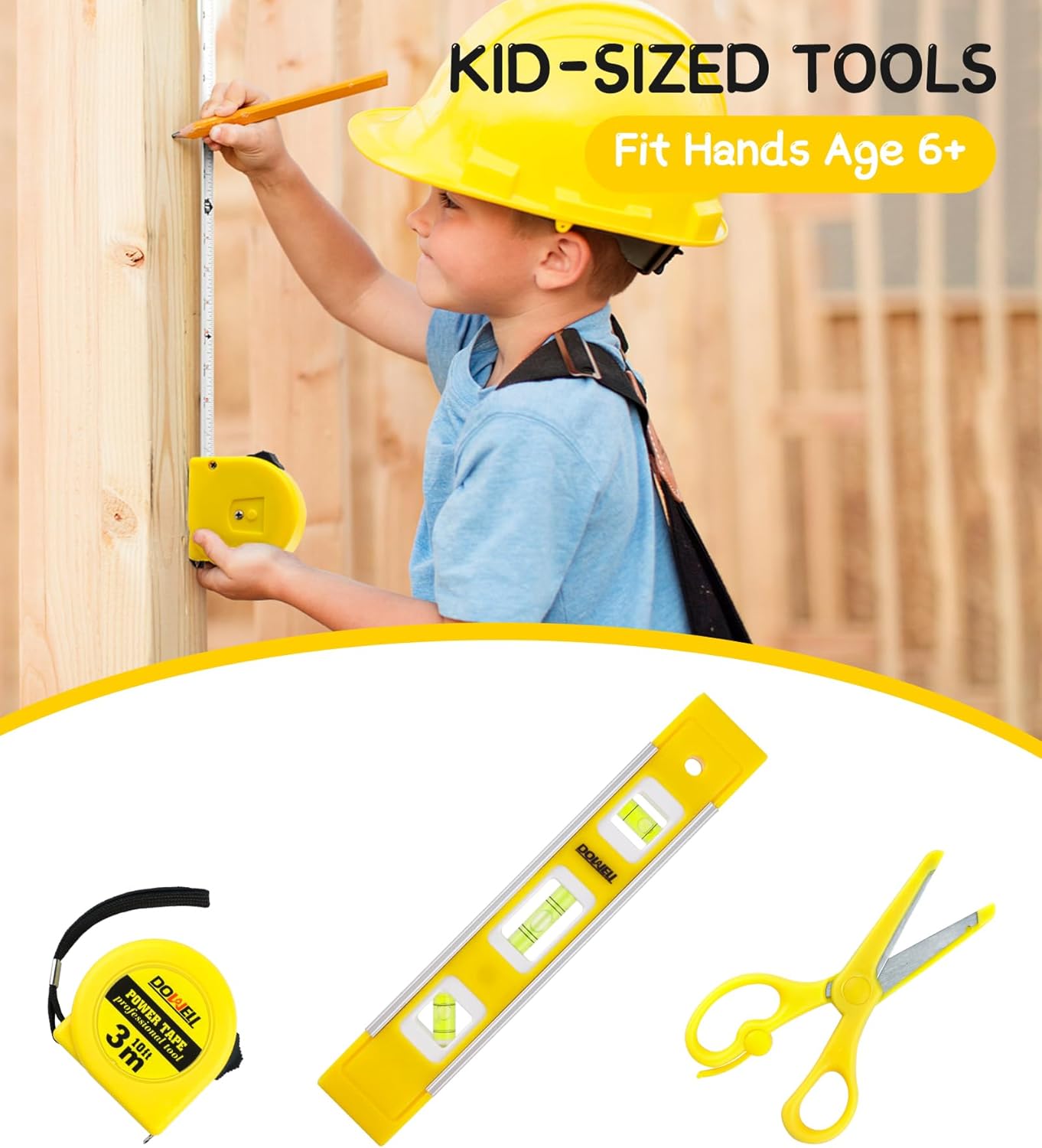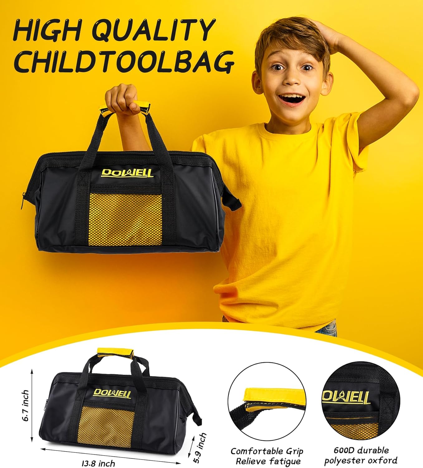 Set di attrezzi adatto ai bambini: questo piccolo kit di attrezzi è progettato appositamente per i bambini, viene fornito con strumenti reali: piccolo martello da 226,8 g, chiave da 15,2 cm, pinza a giunto scorrevole da 15,2 cm, livello di 22,9 cm, metro a nastro da 3 m, 2 morsetti a molla da 5 cm, 2 cacciaviti, occhiali di sicurezza, forbici, ecc. Ottimo regalo per i bambini: questo set di strumenti consente ai bambini di partecipare alla manutenzione e al lavoro domestico con i genitori, trascorrendo momenti felici insieme. È una meravigliosa idea regalo per i bambini piccoli che amano uscire con i genitori in garage. Piccoli strumenti reali: tutti gli strumenti reali possono aiutare i giovani costruttori a creare risultati reali. Borsa per attrezzi con cerniera resistente: realizzata in tessuto 600D, abbastanza forte da trasportare tutti gli strumenti in giro. Alta qualità di sicurezza: tutti gli strumenti di questo set di strumenti per bambini sono realizzati con materiali di alta qualità, sicuri ed ecologici, innocui per il corpo umano