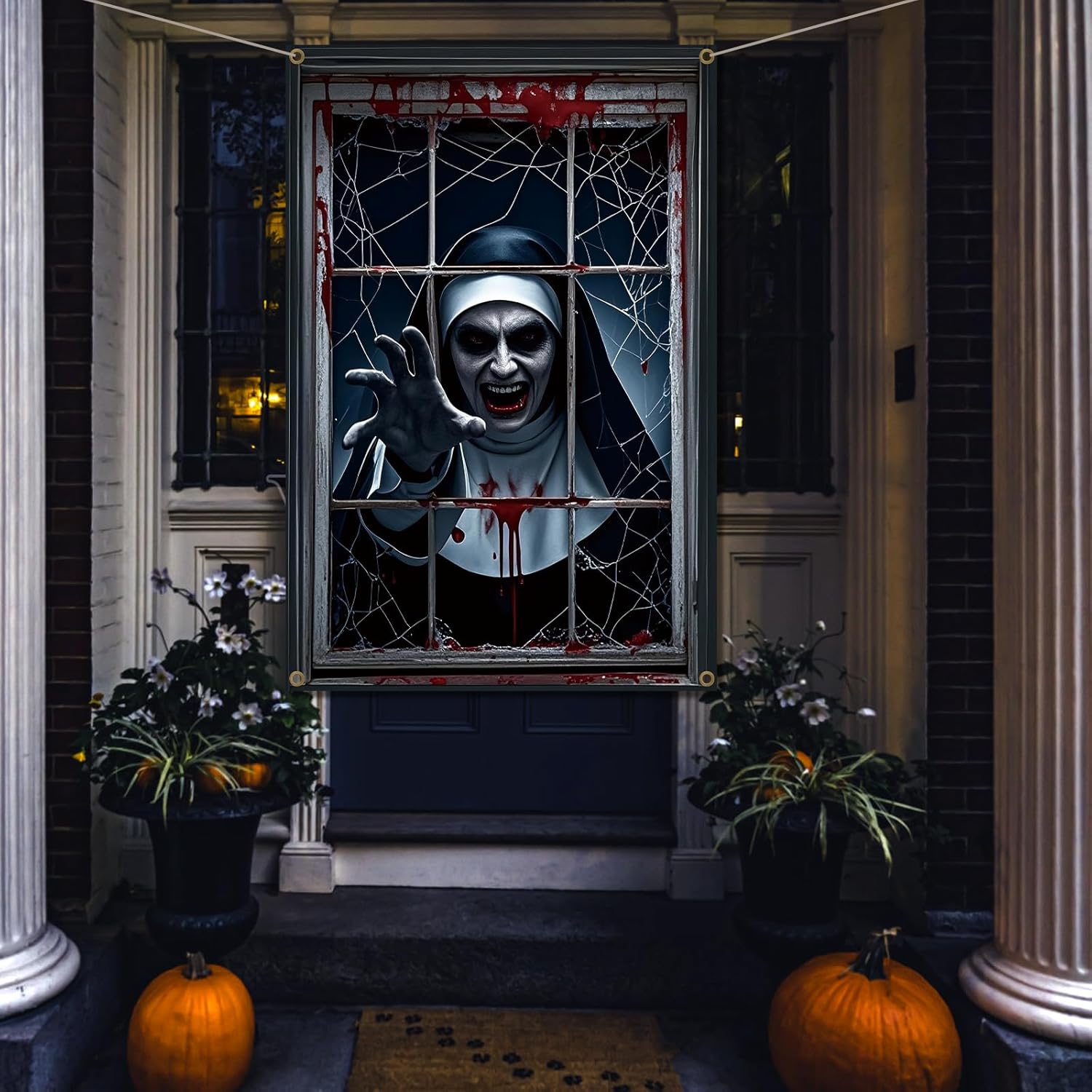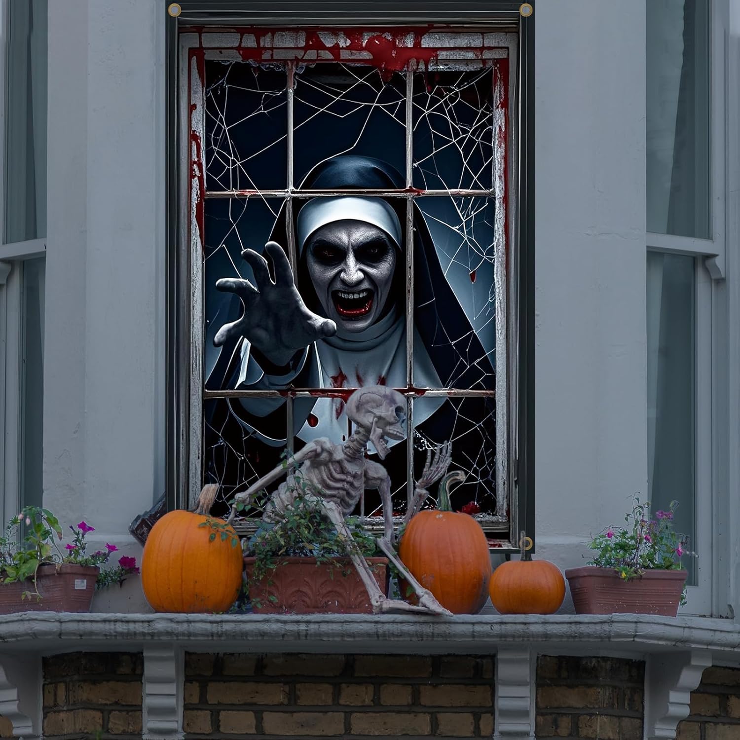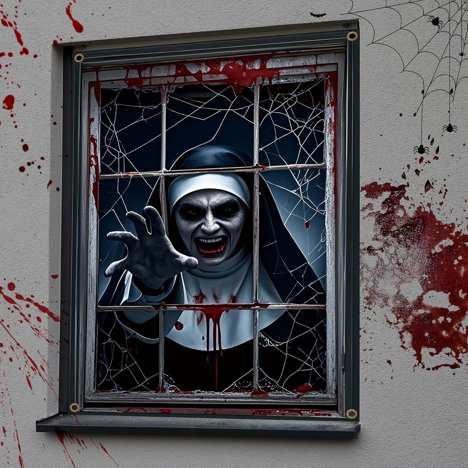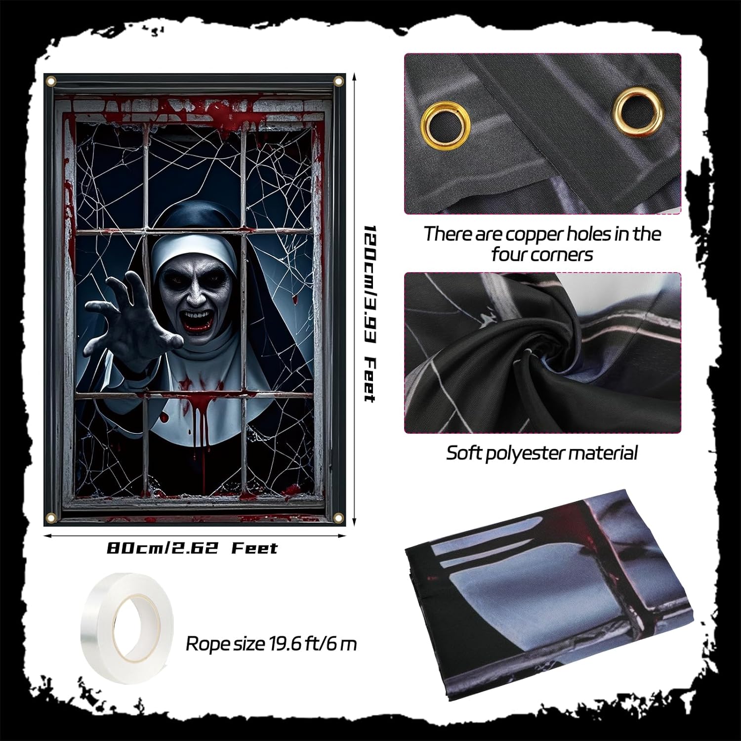 【Striscione Finestra Halloween Horror】Striscione con suora zombie horror (120 x 80 cm), corda (6 m). Striscione di Halloween inquietante, ideale per decorazioni horror di porte e finestre, striscione per porta di Halloween per decorazioni di case infestate. 【Scena Realistica per Finestra】Questo striscione con suora zombie è realizzato per essere esposto su finestre, porte o qualsiasi altra area, assicurando che i passanti siano pieni di paura. Trasforma il tuo spazio in una scena di terrore agghiacciante con la nostra copertura per finestre o porte d'ingresso inquietanti! 【Decorazione Casa Infestata】Questo striscione realistico con zombi di Halloween come sfondo per scene horror, ideale per decorazioni horror di Halloween per interni ed esterni, copertura per finestre horror, copertura per porte horror, poster sanguinolento realistico horror. 【Alta Qualità】Lo striscione con suora zombie insanguinata è realizzato in tessuto di poliestere, non in plastica, rame di alta qualità non arrugginisce, resistente, stampa digitale, colori brillanti, elevata resistenza del colore! Terrorizzerà al massimo i tuoi vicini e amici, rendendolo un'ottima scelta per le decorazioni di Halloween. 【Acquista con Fiducia】Se hai domande sul nostro striscione con suora zombie inquietante, contattaci per assistenza. Per altri adesivi per finestre di Halloween, bomboniere per feste di Halloween, tatuaggi e trucchi per Halloween, visita il negozio DPKOW.