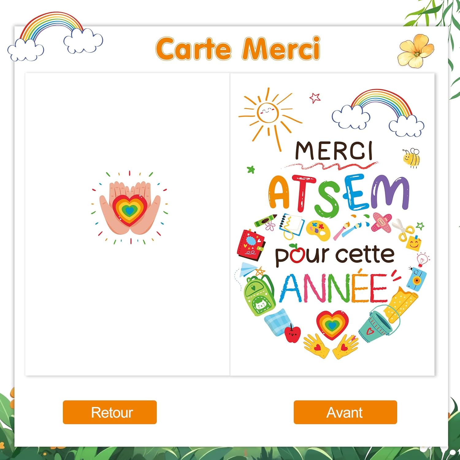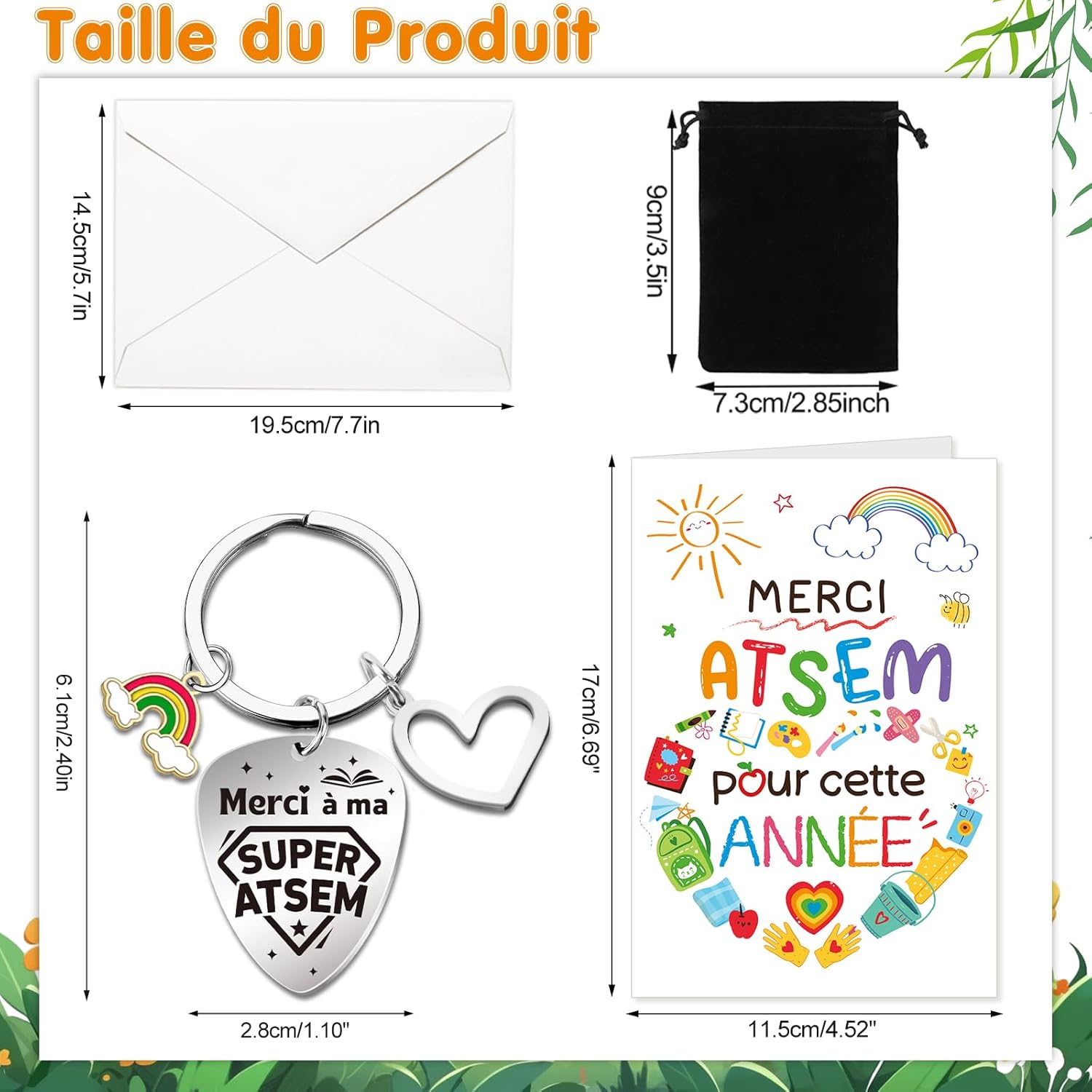 【Biglietto portachiavi di ringraziamento ATSEM】 In particolare: Grazie ATSEM per il biglietto di ringraziamento con busta di quest'anno, Grazie al mio portachiavi Super ATSEM. Idea regalo per la scuola ATSEM di fine anno, originale regalo di ringraziamento ATSEM. 【Grazie al mio Portachiavi + Borsa Super ATSEM】Il portachiavi scolastico ATSEM è realizzato in acciaio inossidabile, molto resistente e durevole, non si deformerà, non arrugginirà né annerirà. Grazie portachiavi ATSEM con ciondoli a forma di cuore e arcobaleno, viene fornito con una borsa morbida per riporre facilmente questo portachiavi. 【Biglietto di ringraziamento ATSEM con busta】 La copertina del biglietto è progettata con: "Grazie ATSEM per quest'anno", fiore, ape, mela, cuore, arcobaleno, sole, stella, pennello, zaino, quaderno, forbici, tavolozza di colori, coperta... C'è uno spazio vuoto all'interno del biglietto per scrivere le tue benedizioni. 【Idea regalo di ringraziamento ATSEM】Biglietto di ringraziamento ATSEM / portachiavi della scuola materna ATSEM per regalo di fine anno scolastico ATSEM, regalo di ringraziamento ATSEM, regalo scolastico di fine anno Super ATSEM, grazie ATSEM per questo anno regalo, grazie per qualsiasi regalo ATSEM. 【Acquista con fiducia】 In caso di problemi con la nostra chiave magnetica ATSEM, contattaci per ricevere assistenza. Altri regali per insegnanti e master ATSEM, regalo di ringraziamento per avermi aiutato a crescere, per favore visita la vetrina DPKOW.