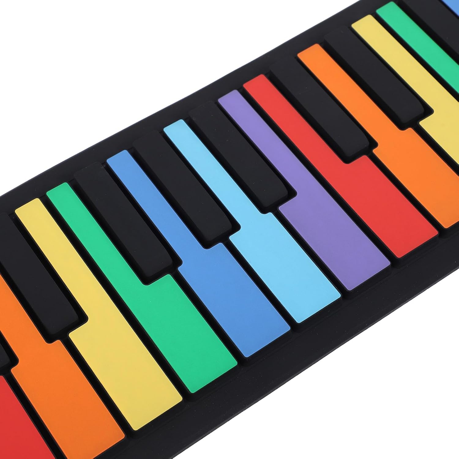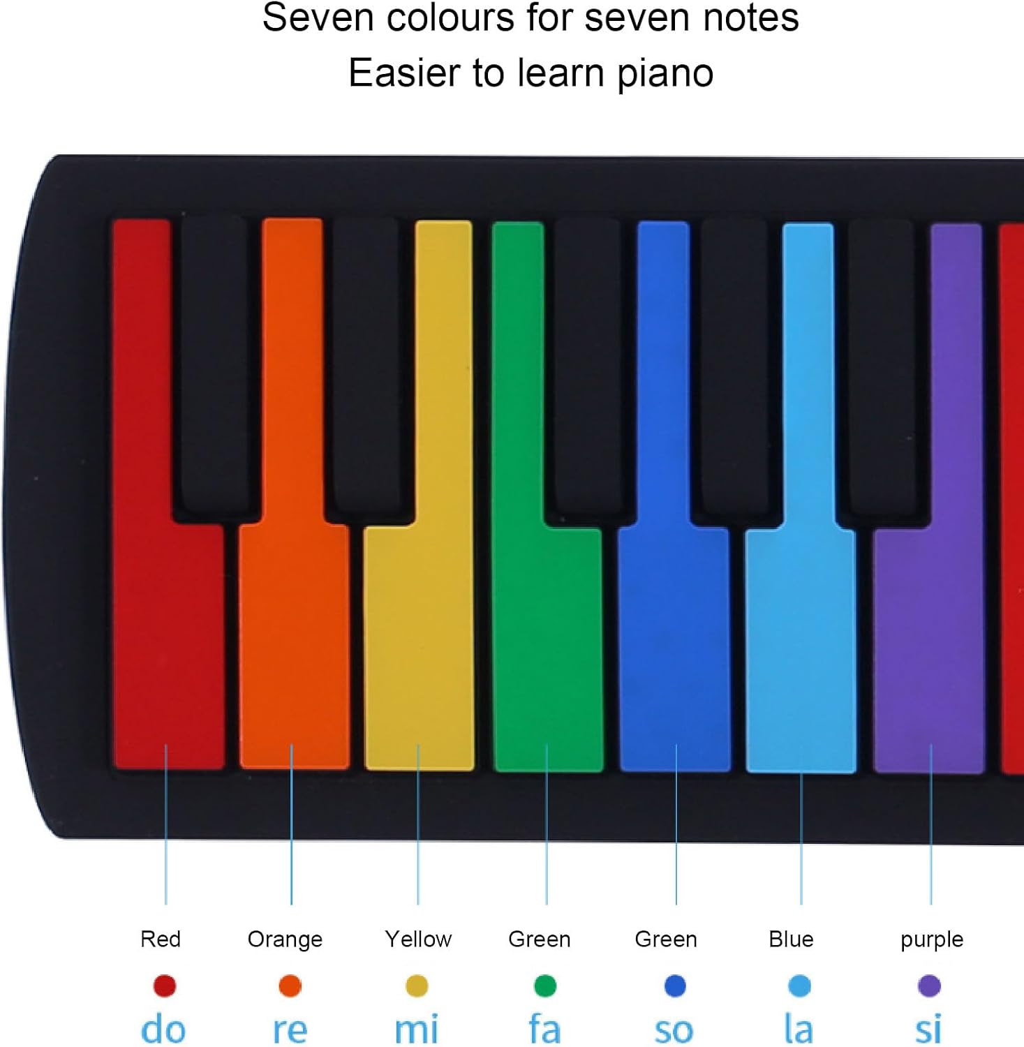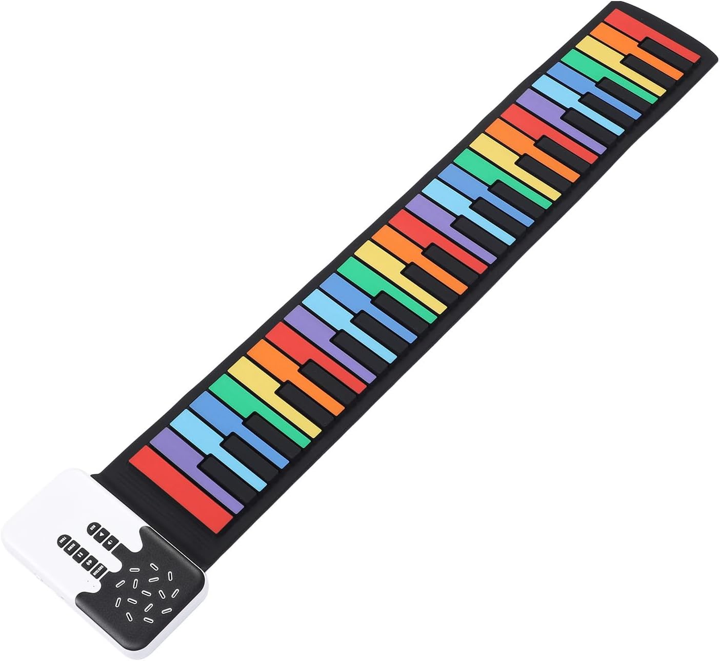 Connettività versatile: può essere collegato ad auricolari e altoparlanti esterni, rendendolo adatto a vari ambienti di gioco. Il morbido cuscinetto per pianoforte è flessibile, si srotola facilmente mentre suoni e lo arrotoli e lo riponi nello zaino dopo aver finito di suonare. Design ricaricabile: viene fornito con batteria ricaricabile da 360 mAh, potenza di uscita di 500 mW. Ideale per principianti e appassionati, porta questo tappetino con te ovunque, anche quando esci all'aperto, puoi suonare sempre e ovunque. Ricche opzioni : 8 toni e 6 brani dimostrativi per imparare e ascoltare la musica classica, con un suono chiaro e nitido 'altoparlante integrato. 49 tasti standard ti consentono di riprodurre tonnellate di musica senza occupare spazio. Tasti del pianoforte colorati: tastiera del pianoforte pieghevole a 49 tasti con tasti standard colorati, presenta una tastiera simulata con un forte rimbalzo. Con tasti di scelta rapida funzionali facile regolazione del ritmo e modalità di sospensione incorporata. e portatile: realizzato con materiale siliconico , design robusto e resistente all'acqua, leggero e compatto, questo pianoforte avvolgibile può essere arrotolato per un facile trasporto e stoccaggio.