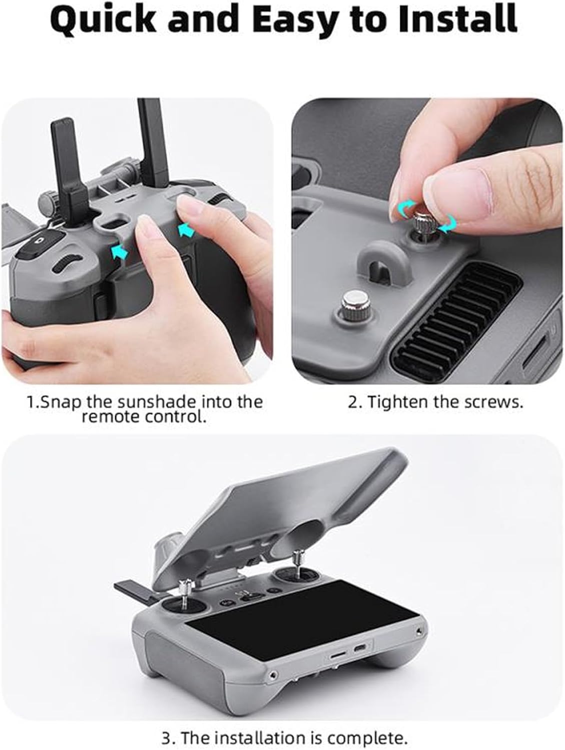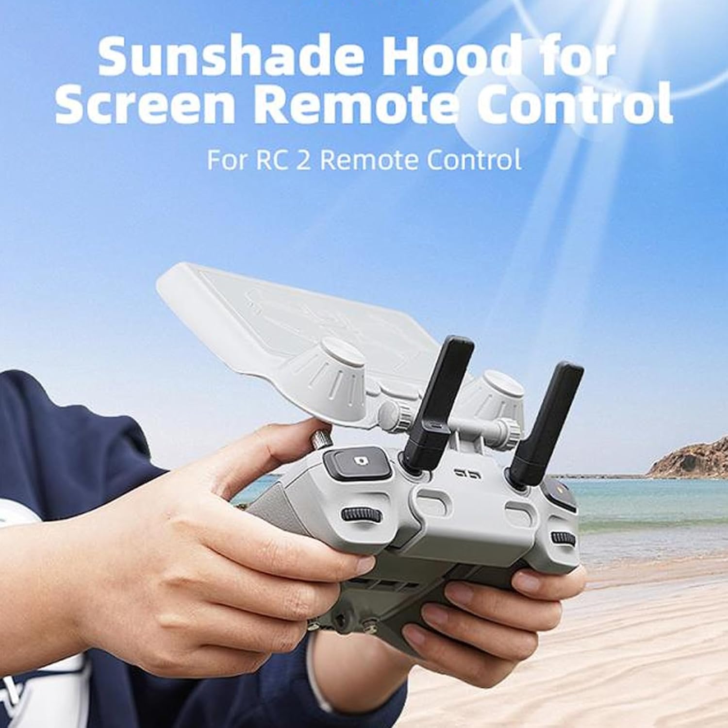 [Protezione schermo intero] Offre una copertura completa proteggendo lo schermo del telecomando RC 2, garantendo sicurezza e longevità al tuo dispositivo. [Design pieghevole] Non è necessario rimuovere il parasole, può essere piegato per coprire lo schermo quando non in uso, proteggendolo da eventuali danni. [Angolo regolabile] Grazie agli ingranaggi multi-angolo, la protezione per lo schermo del parasole consente di regolare facilmente gli angoli in base alle proprie esigenze, migliorando significativamente le prestazioni di ombreggiatura. [Robusto e leggero] Realizzato in materiale ABS, questo parasole è robusto, leggero e facile da riporre, rendendolo un accessorio per il funzionamento dei droni in ambienti luminosi. [Modello compatibile] Questo parasole per controller drone è perfettamente progettato per adattarsi al telecomando RC 2, fornendo un blocco della luce personalizzato per il tuo dispositivo drone.