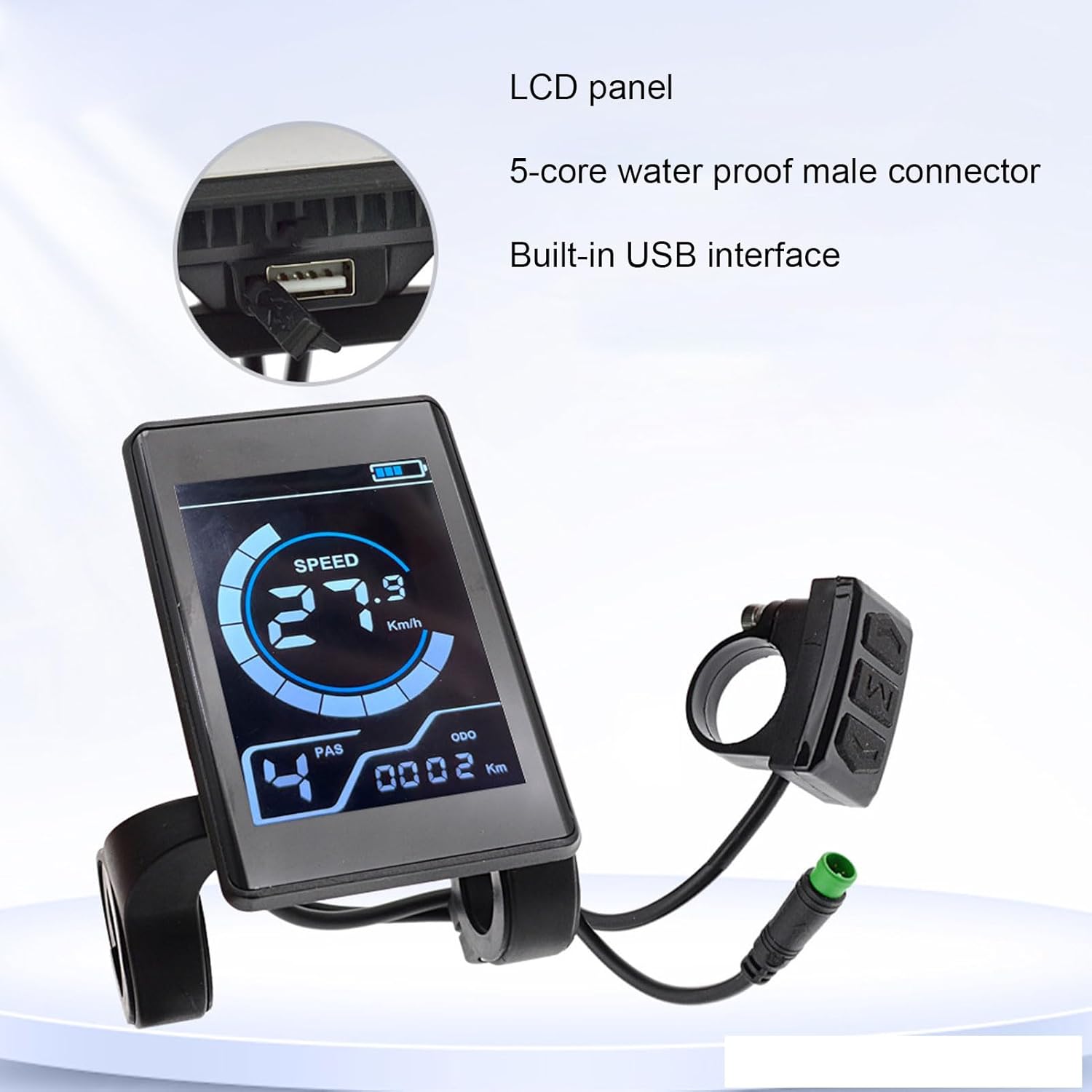 [DISPLAY LCD INTUITIVO] Il pannello LCD dello scooter mostra chiaramente le informazioni sulla velocità e sulla batteria, garantendo un'esperienza di guida confortevole. Ideale per bici elettriche e scooter. [PRESTAZIONI IN TUTTE LE METEO] Grazie al design impermeabile a 5 pin, questo pannello di controllo LCD per bici elettrica può sopravvivere ai giorni di pioggia senza danni, migliorando la tua pedalata. [PRESTAZIONI ROBUSTE] Goditi prestazioni stabili con un basso tasso di guasto con questo display LCD per bici elettrica, adatto per l'uso a lungo termine e le corse impegnative. [DURATA GARANTITA] Realizzato in materiale ABS, il pannello LCD della bici elettrica offre resistenza e maggiore durata. Può funzionare in un intervallo di temperature compreso tra -20°C e 60°C ed è impermeabile quotidianamente. [OPZIONE DI SOSTITUZIONE EFFICIENTE] Questo display LCD funge da sostituto affidabile per parti vecchie o danneggiate di biciclette e scooter elettrici, fornendo ai ciclisti una soluzione coerente ed efficiente.