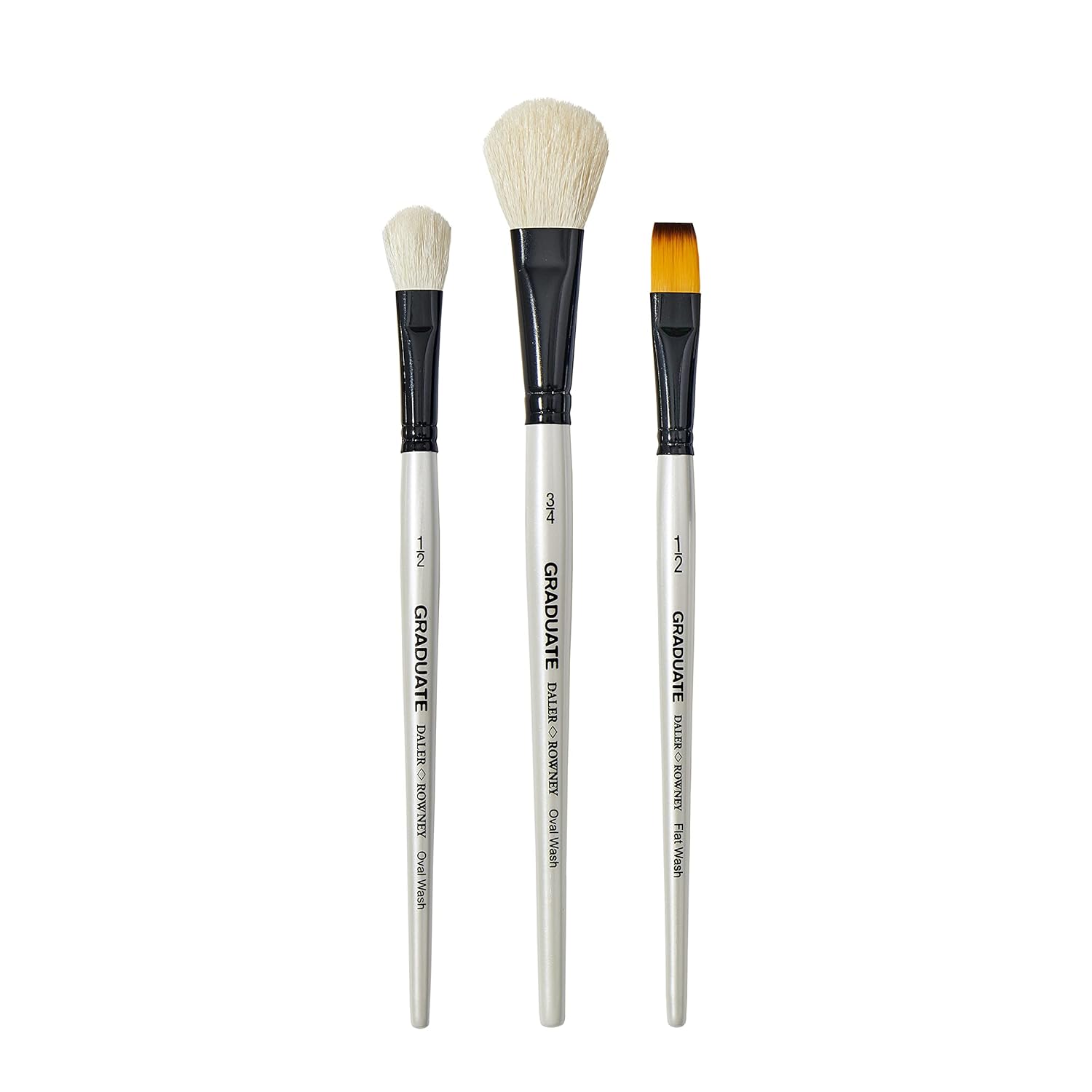 Daler-Rowney - Pennello graduato in pelo di capra con manico corto, ideale per pittura ad acquerello e gouache. Include una testa ovale con pelo di capra bianca, 1,27 cm e 1,9 cm, testa piatta sintetica da 1,27 cm. Il contenuto può variare. La serie di pennelli graduati è una gamma multi-tecnica, con pennelli per tutti i colori per progetti artistici. Con un'eccellente capacità di mantenimento del colore e controllo del flusso, i pennelli in pelo di capra super morbidi sono perfetti per gli acquerelli. Sono completati dal pennello sintetico, le cui fibre sono morbide ma resistenti, il che li rende ideali per acquerelli, ma sono adatti anche per colori acrilici liquidi e oli. Combinati con la montatura in setole nere lucide e un manico ergonomico bianco perlato, questi pennelli combinano prestazioni, stile e convenienza. Questo set di pennelli per acquerelli è perfetto per studenti e pittori dilettanti e offre un ottimo rapporto qualità-prezzo. Fatto a mano nella Repubblica Dominicana. La collezione Graduate è appositamente progettata per soddisfare le esigenze di artisti principianti e studenti che vogliono praticare e perfezionare le proprie abilità. Il marchio Daler-Rowney ispira la creatività dal 1783. L'obiettivo dichiarato dell'azienda è quello di consentire a tutti di essere creativi. Si sforzano di essere aperti, inclusivi e innovativi e di offrire a tutti un'esperienza artistica eccezionale.