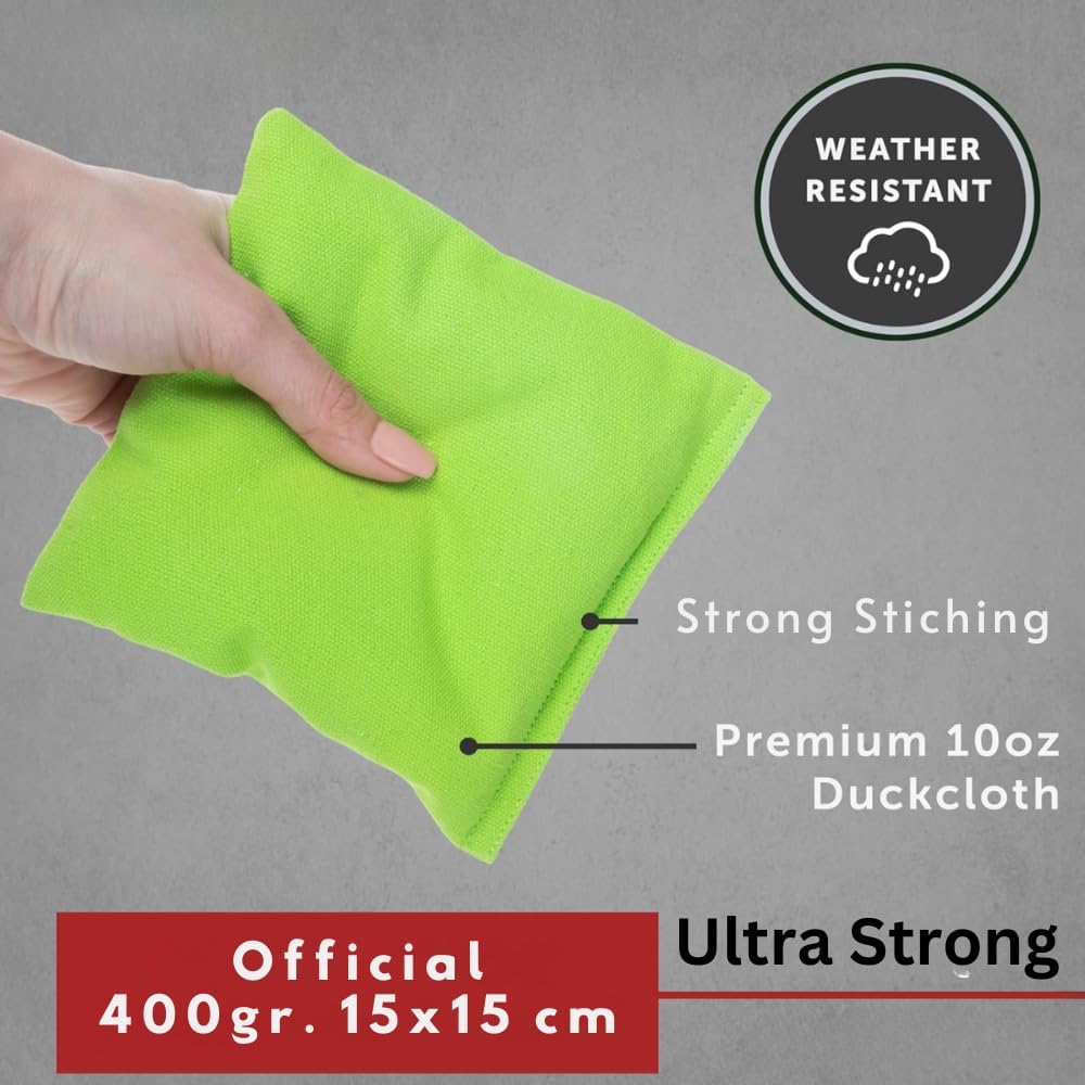 Che si tratti di principianti o avanzati, queste borse per Bean Cornhole di dimensioni ufficiali daranno un ulteriore livello di autenticità al tuo gioco Cornhole. Per tutte le stagioni: 4 sacchetti verdi e 4 neri, in cotone resistente e durevole con imbottitura sintetica (imbottitura ideale per tutte le stagioni) Dimensioni e peso: borse professionali per cornhole con dimensioni di 15 cm x 15 cm e 400 g. BORSA INCLUSA: include 2 sacchetti di cotone con coulisse Versatile: questa borsa Cornhole Bean può essere utilizzata per qualsiasi gioco della nostra serie Cornhole. PER TUTTI I GIOCATORI;- Che tu sia un principiante o un giocatore avanzato, queste borse per Bean sono perfette per il tuo gioco Cornhole.