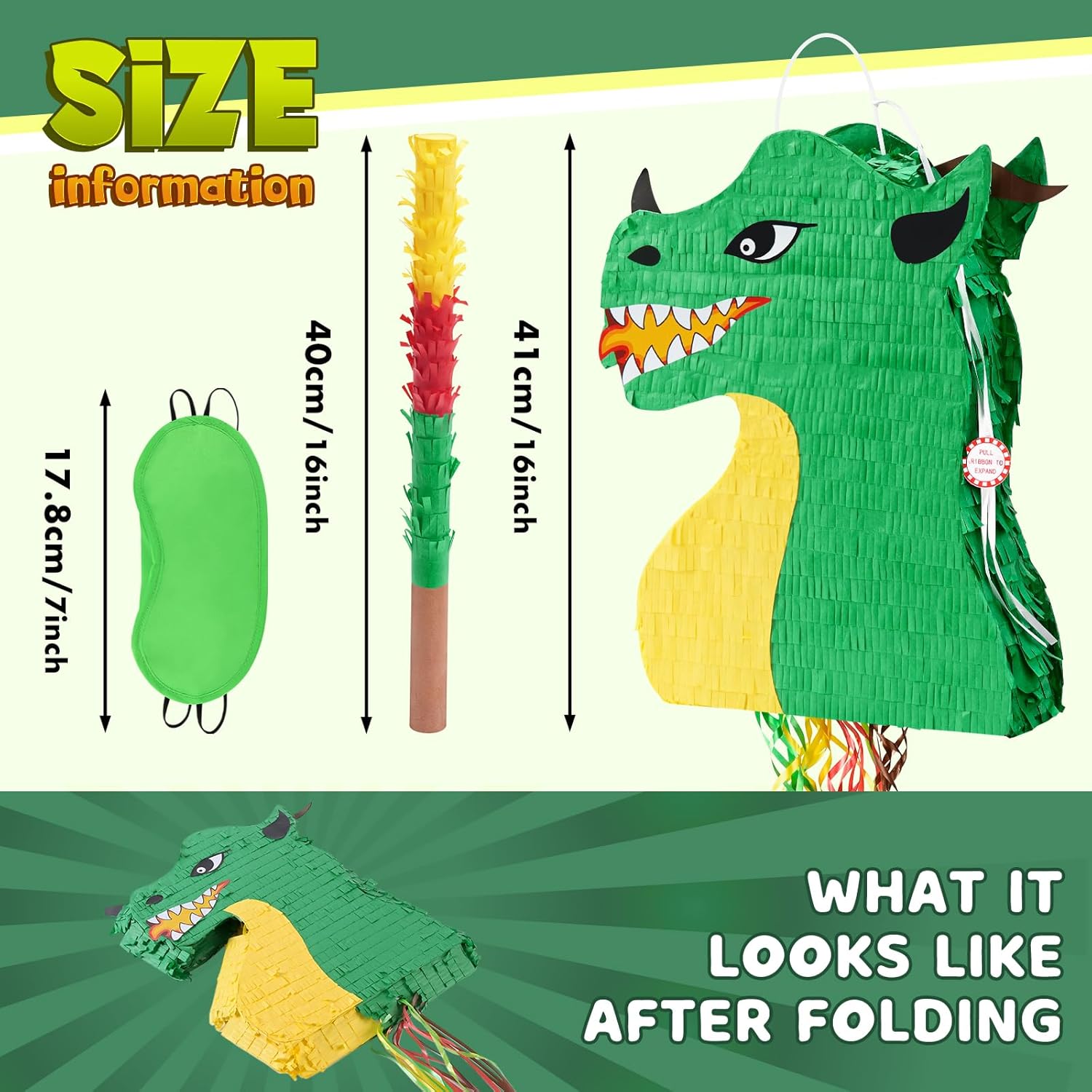 Design a tema del gioco: inizia la tua festa a sorpresa per bambini con il nostro videogioco Piñata! Questa Piñata per bambini è ispirata ai controller di gioco e garantisce un'esperienza di gioco coinvolgente. E la combinazione di colori brillanti sarà sicuramente un successo con i ragazzi! Facile da riempire: il controller di gioco Piñata misura 41,9 x 31,9 x 7,4 cm. Puoi riempirli con fino a 2,3 kg di materiale di riempimento per piñata, caramelle o giocattoli. Nella parte superiore della piñata si trova un foro prefabbricato e un passante per appenderlo facilmente ovunque tu voglia.