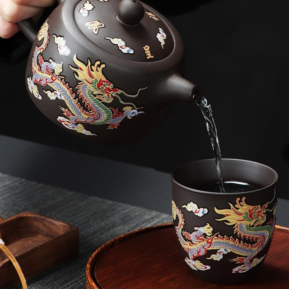 4. Tecnologia squisita: il vaso ha una lunga storia di produzione e patrimonio culturale. Questo set da tè kung fu è realizzato con tecnologia tradizionale, tecnologia squisita e conserva il sapore originale. Design e praticità: il design con drago e fenice significa buona fortuna, non solo aggiunge bellezza classica e connotazione culturale, ma fornisce anche praticabilità, consentendo agli utenti di acqua temperatura del tè osservando il cambiamento di colore del corpo del vaso per garantire qualità e gusto del tè. cambiamento di temperatura dell'effetto: quando l'acqua calda viene iniettata nella pentola, diversi stili di tè POTS mostreranno un effetto di cambiamento di temperatura unico e cambiano colore con il cambiamento della temperatura, che aumenta il divertimento e il godimento visivo processo di preparazione del tè. Quattro stili tra cui scegliere: questo set di pentole Qinquan a cambiamento caldo drago/fenice offre quattro scelte di design diversi stili e modelli, tra cui diversi modelli di drago e fenice e abbinamento di colori, in modo che i consumatori possano scegliere più adatto in base alle loro preferenze e stili personali 5. Adatto per una vasta gamma di persone: questo set è adatto per gli amanti del tè, collezionisti di tè e persone che amano gustare il tè e apprezzare il tè. non è solo un pratico servizio da tè, ma anche un valore ornamentale e da collezione. Ognuno mostra un fascino unico, consentendo alle persone di scegliere il set di pentole con cambio caldo drago e fenice che meglio soddisfa le proprie estetiche e preferenze.