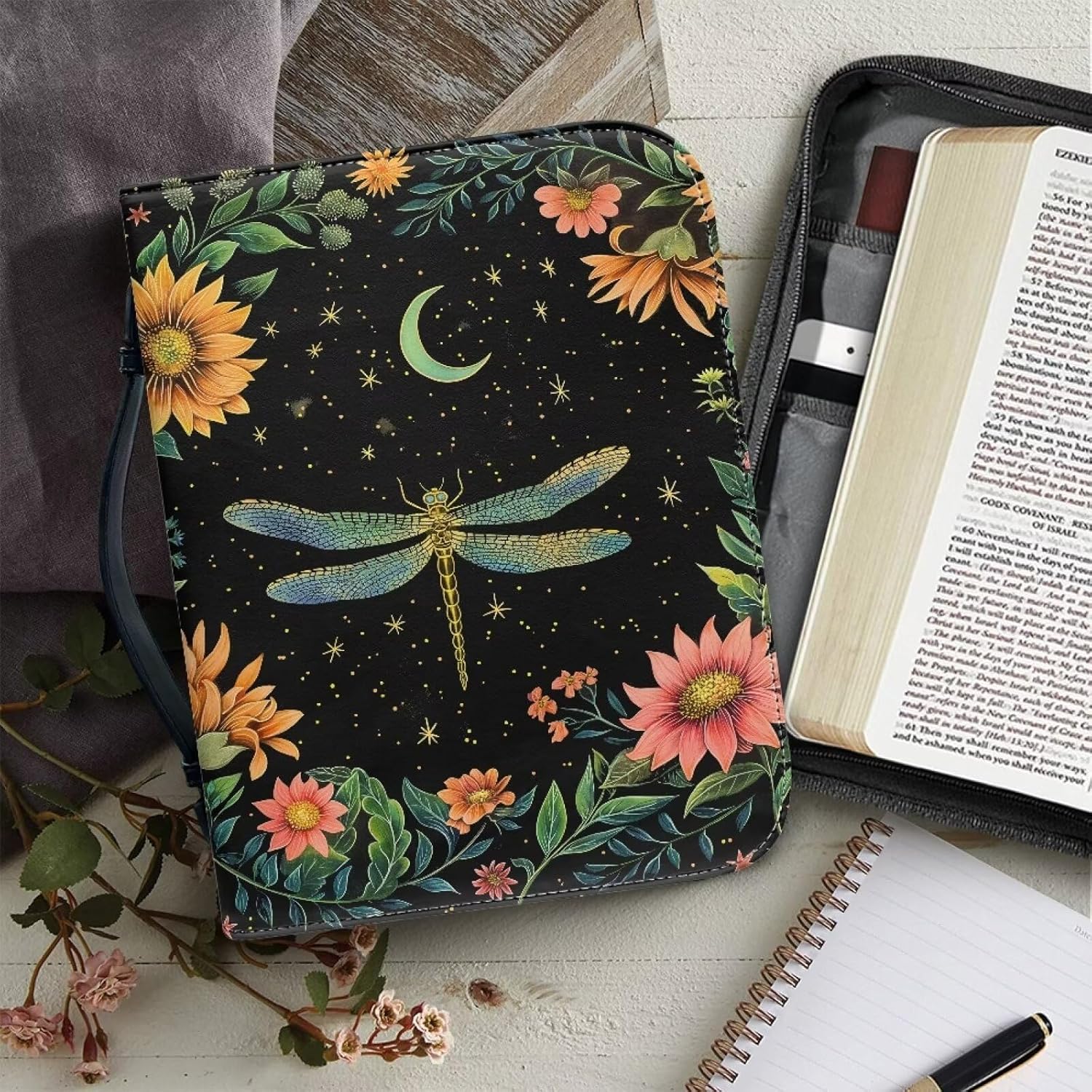 Dragonfly Moon - Custodia grande per libri con cerniera, con scomparti per penne e tasca, regalo per donne, taglia M