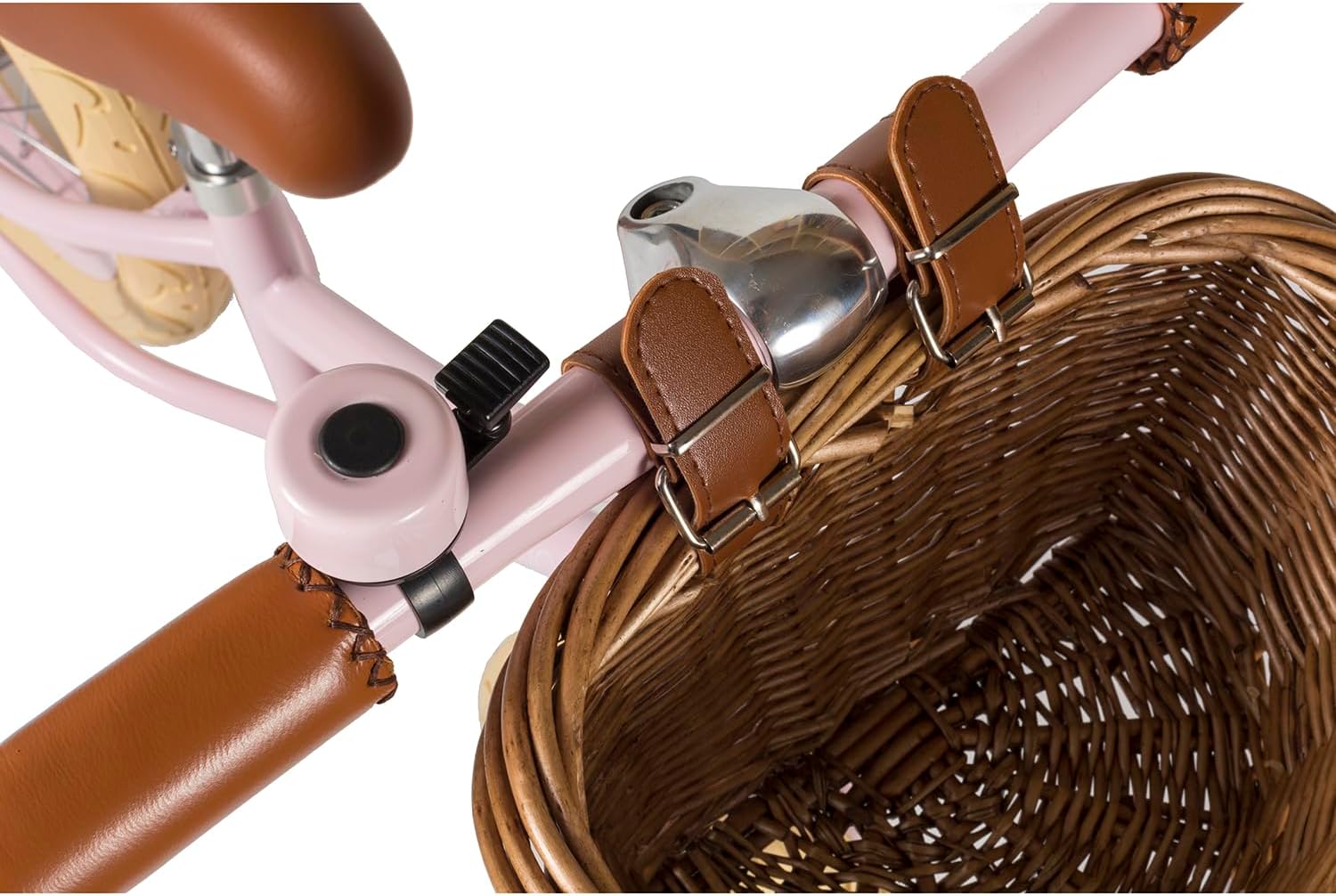Struttura in acciaio con finitura colorata Sedile ergonomico e confortevole Altezza della seduta regolabile da 40 a 49,8 cm Manubrio regolabile Cesto in vimini e campana inclusi Ruote da 12 pollici Peso: 4,5 kg