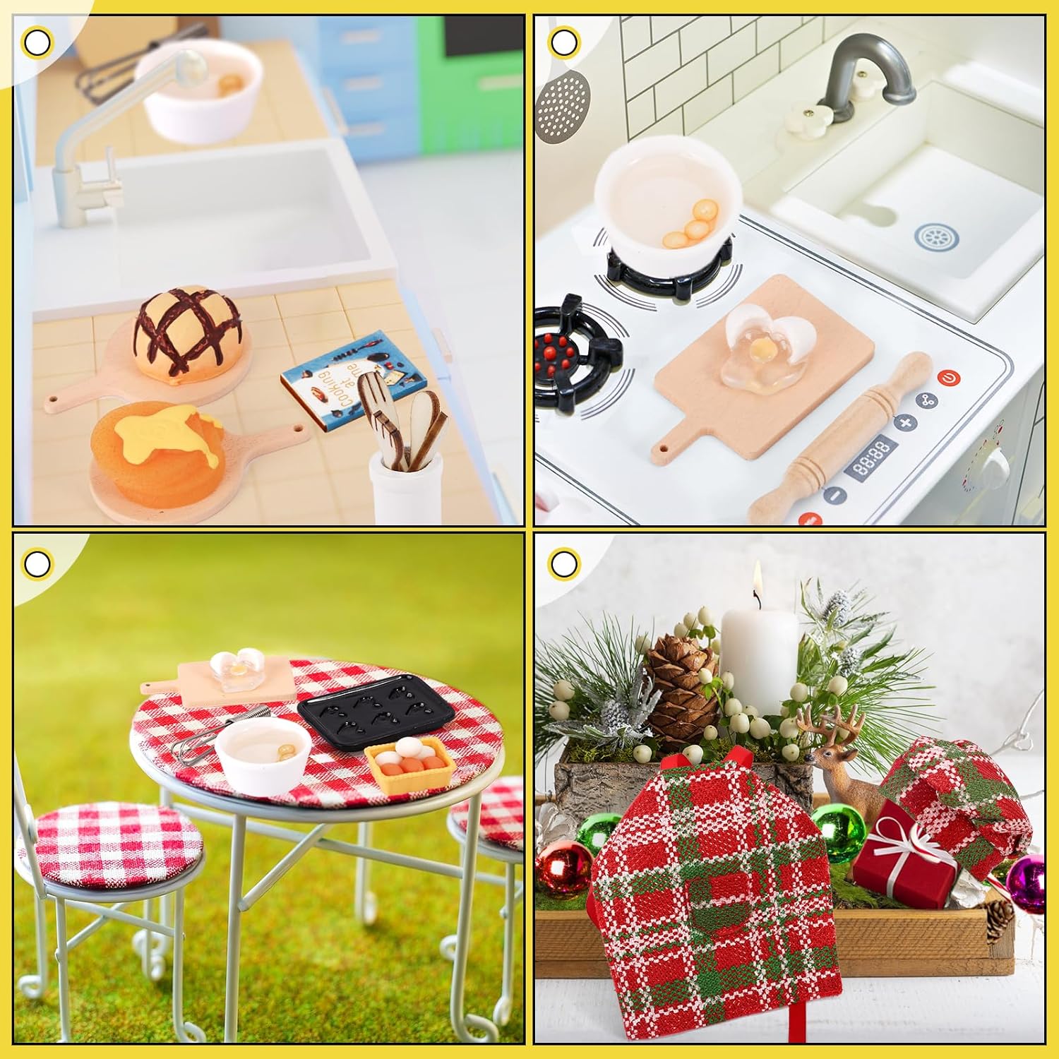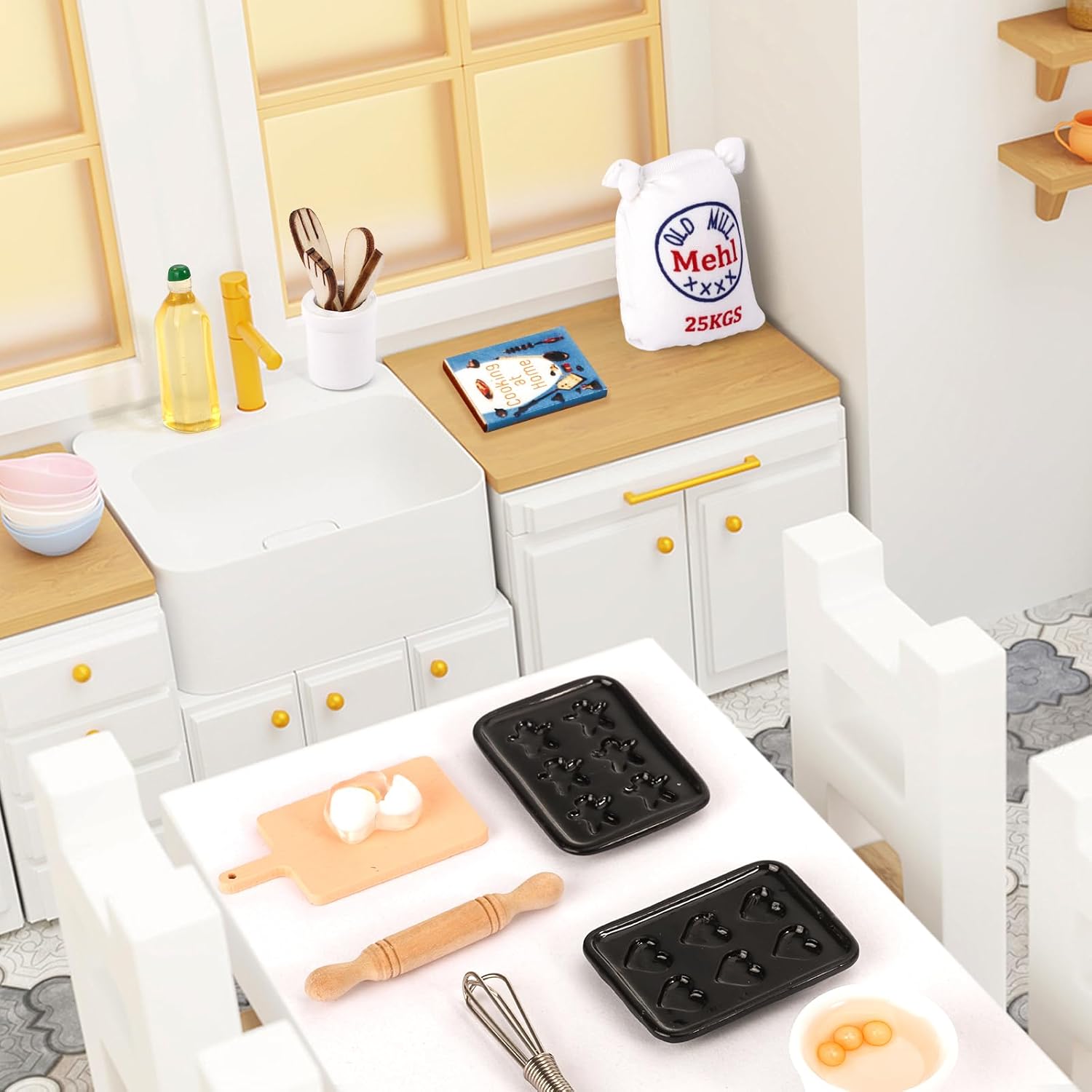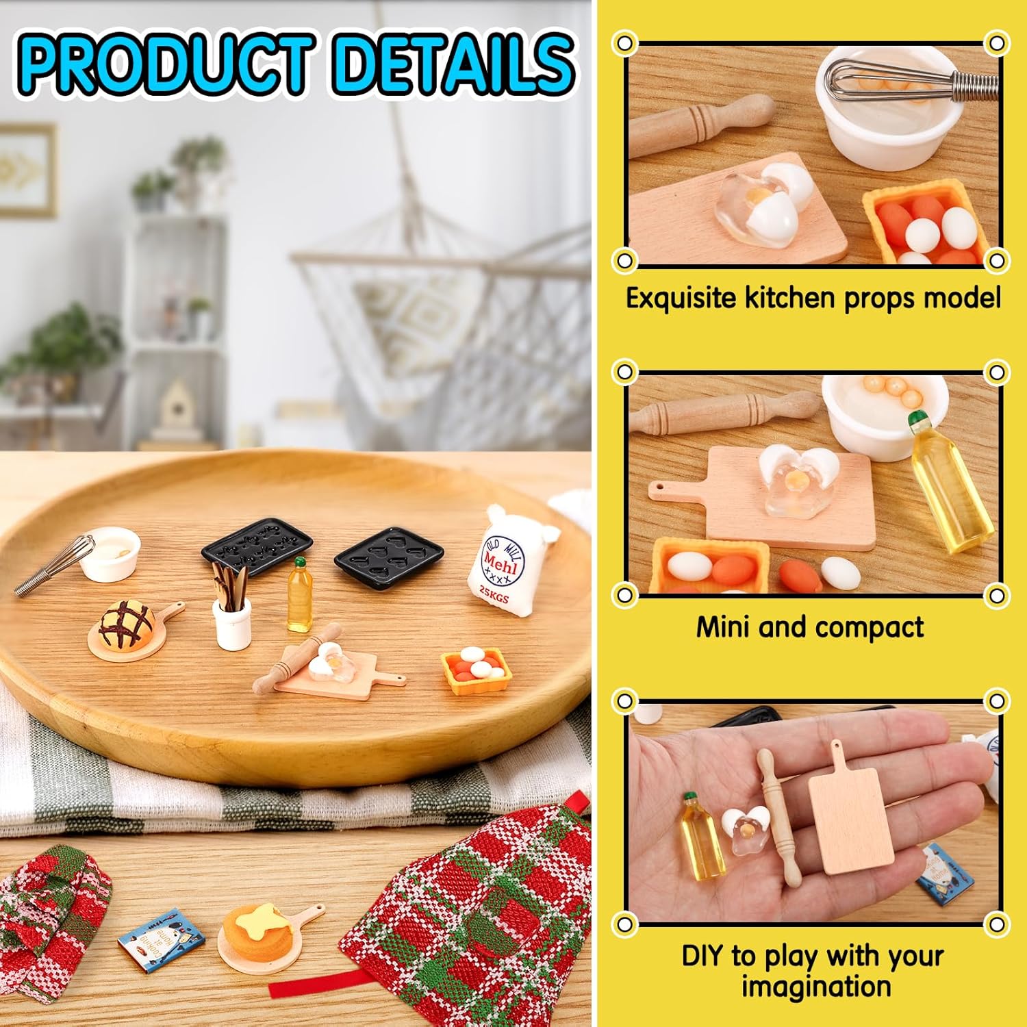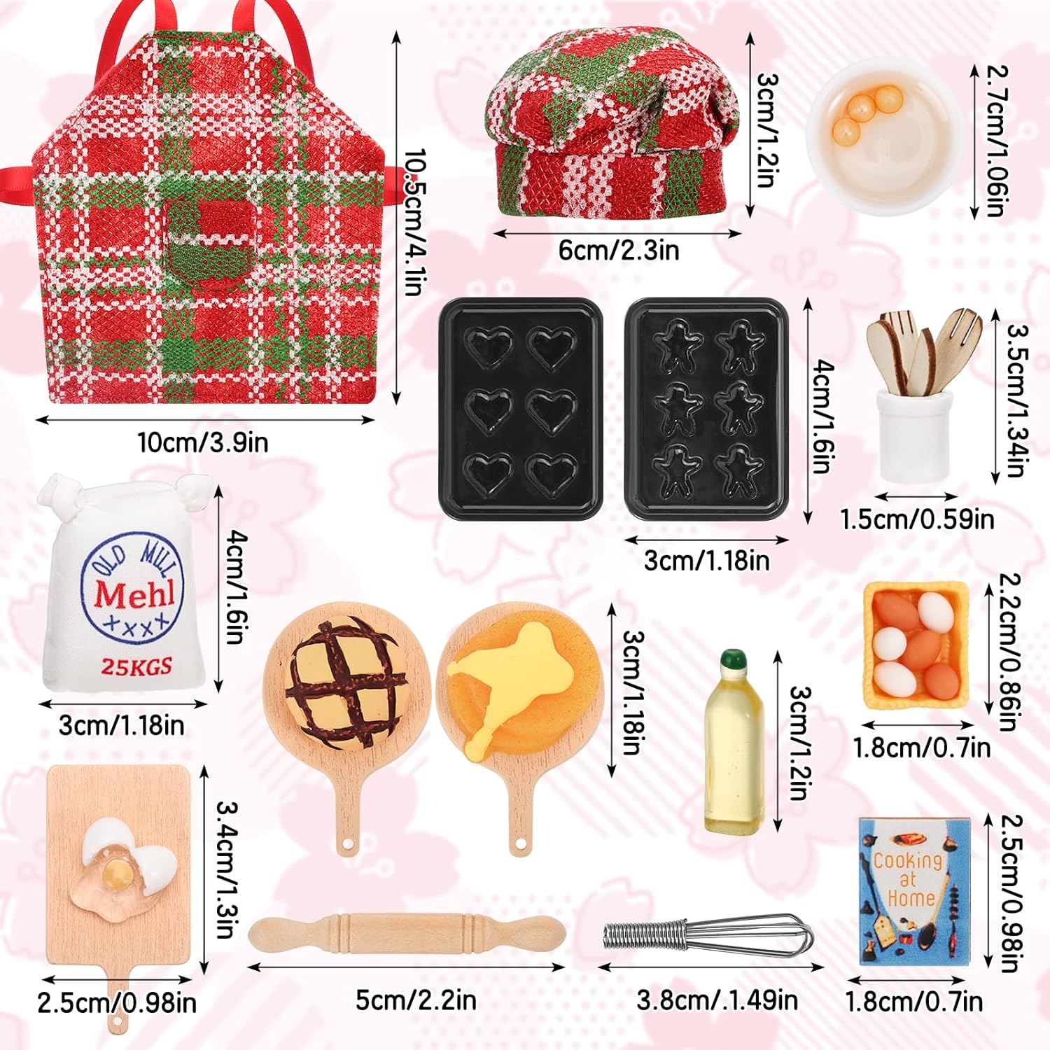 【Set Accessori per Gnomi】Riceverai 28 pezzi di accessori per gnomi miniatura, tra cui 1 tagliere, 2 vassoi, 1 sacchetto di farina, 1 bottiglia di olio, 1 cestino per le uova, 1 frusta, 1 mattarello, 1 ciotola, 2 teglie da forno, 1 uovo schiacciato, 6 uova, 2 pani, 1 cappello da cuoco, 1 grembiule, 4 coltelli e forchette, 1 secchio per coltelli, 1 ricettario, 28 pezzi in totale. Piccolo e squisito, è un'ottima decorazione per la casa dei giocattoli. 【Materiali di Alta Qualità】Il set di accessori per la mini casa delle bambole è realizzato con materiali di alta qualità in Legno, gomma, resina e plastica, sicuri, atossici, durevoli, leggeri e può essere utilizzato a lungo. Presenta una lavorazione pregevole, una superficie liscia ed è delicato sulle mani. 【Effetto Realistico】Accessori gnomo in miniatura sembra squisito e naturale realistico, può costruire mini cucina è gli accessori perfetti per gli accessori di porta dollhouse.gnome può riprodurre realisticamente la scena della cucina della casa delle bambole, è l'accessorio perfetto per la casa delle bambole. 【Decorazione Fai da Te】Gli accessori per gnomi in miniatura sono versatili e adatti alla decorazione di ogni occasione, come casa delle bambole, decorazioni per la casa, casa modello, paesaggio in miniatura, festa di Natale. 【Regalo Perfetto】Perfetto per Natale, compleanni, Ringraziamento e altre festività come ottimo Regalo regalo. Divertirsi con il fai-da-te, usare la loro immaginazione e creare un bellissimo mondo da favola.