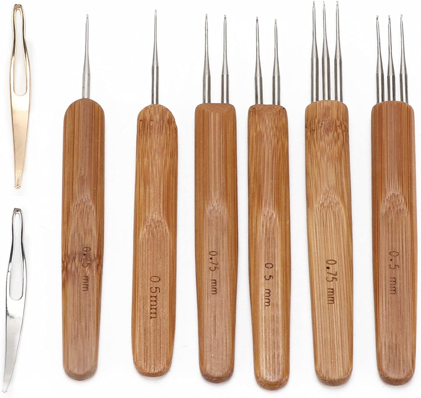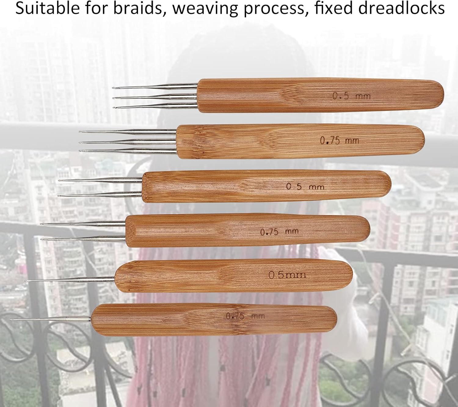 [Manico di bambù] Fatto in bambù, questa forcella è ecologica, resistente e resistente, fornendo una presa comoda per un uso a lungo termine. [Strumenti di acciaio inossidabile premium] Gli aghi robusti in acciaio inossidabile e gli strumenti di bloccaggio dei capelli sono delicati sul cuoio capelluto, garantendo un'esperienza intrecciata liscia e . [Uso versatile] Ideale per creare trecce, fissare dreadlocks e lavorare con capelli sia sintetici che reali, rendendolo adatto per una vasta gamma di acconciature. [Funzionamento semplice] Facile da usare: lavorare a maglia la treccia con l'ago all'uncinetto, quindi fissarlo in posizione usando lo strumento di bloccaggio per capelli per uno stile sicuro e duraturo. [Design ergonomico] La maniglia di bambù ergonomica è robusta, facile da tenere e impedisce la fatica delle mani, permettendoti di creare acconciature impeccabili senza sforzo.