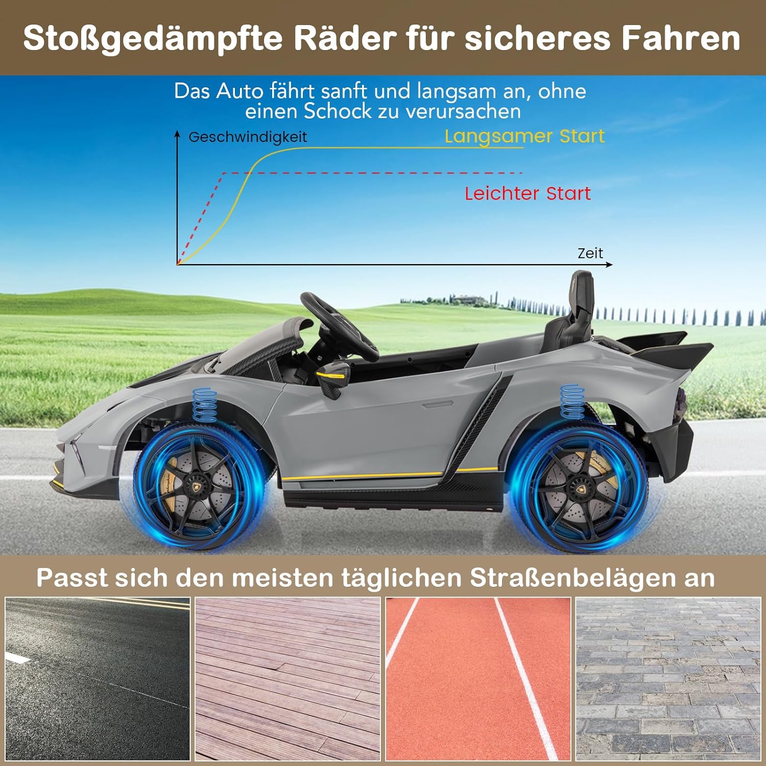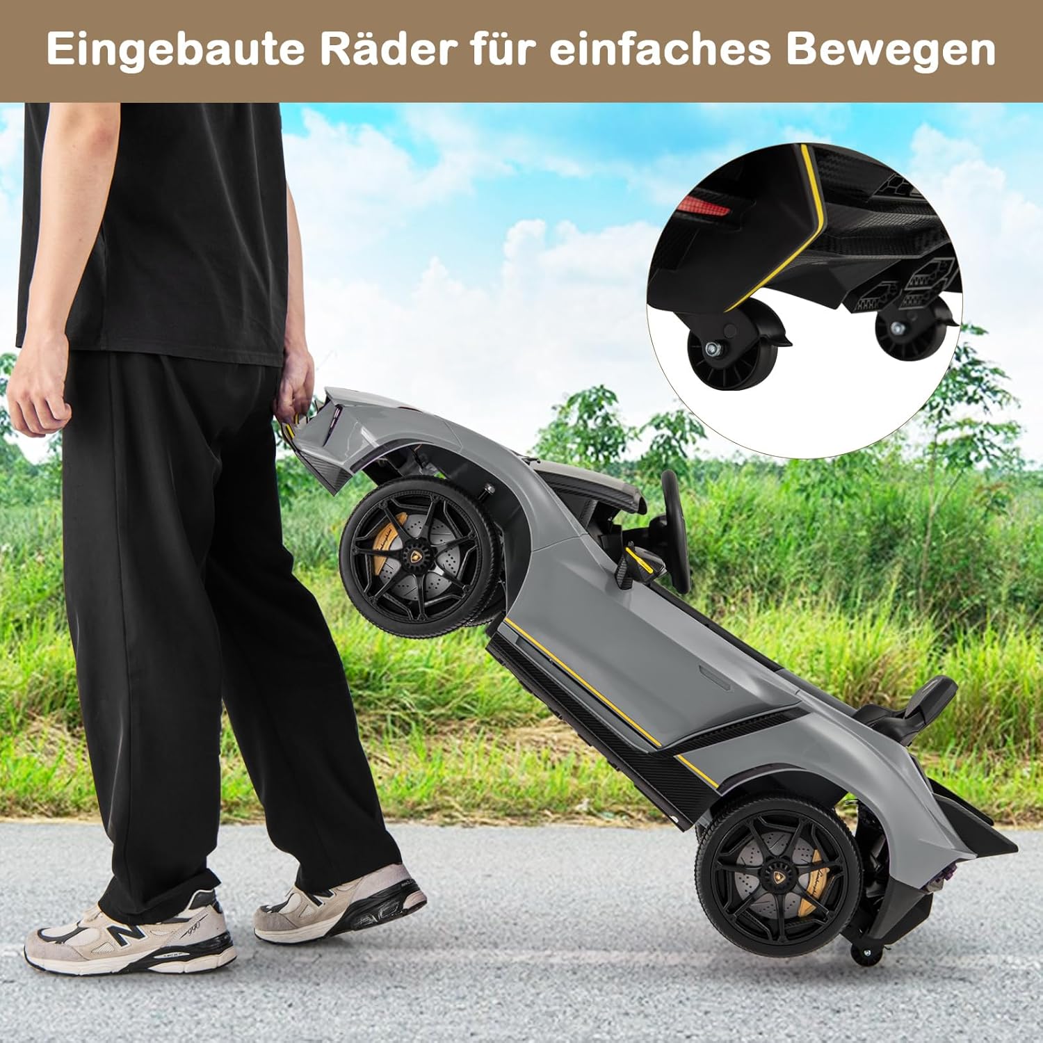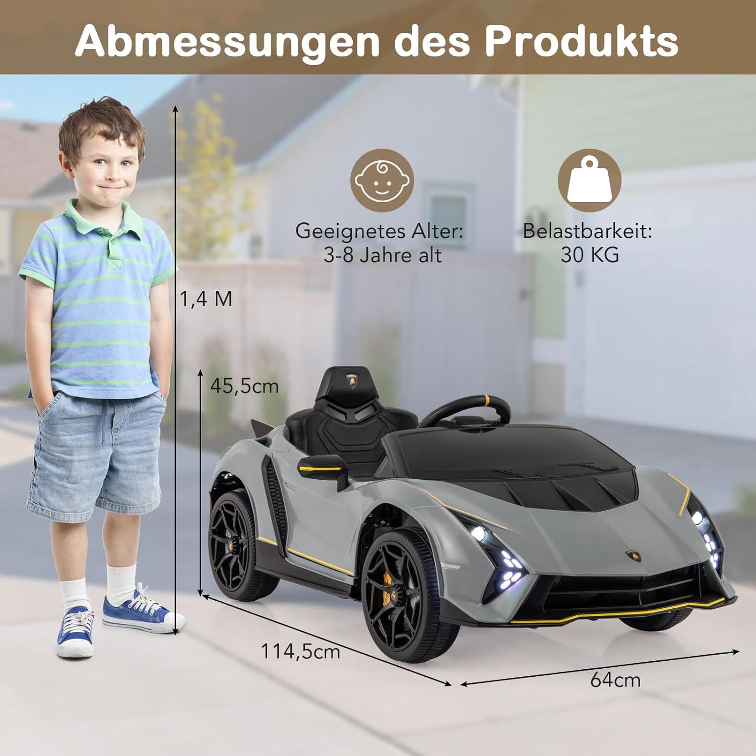 Eccellente design Lamborghini: questa auto per bambini replica l'emozione di una vera auto con il suo design autentico con linee eleganti, porte idrauliche, spoiler accattivante e fari a LED, offrendo un'esperienza di guida coinvolgente per il tuo bambino. Modalità a doppio controllo: i genitori possono guidare in sicurezza il proprio bambino con un telecomando a 2 velocità, mentre i giovani conducenti possono utilizzare l'auto in modo indipendente utilizzando i pedali e i pulsanti, con 3 velocità tra cui scegliere. L'emozionante modalità swing aggiunge ulteriore divertimento. Funzionalità di intrattenimento - Questa auto elettrica per bambini è dotata di connettività wireless e porta USB in modo che i bambini possano ascoltare la loro musica preferita e la radio FM mentre guidano la loro auto sportiva. Queste funzionalità migliorano l'esperienza di guida e rendono il gioco più interattivo e divertente. Guida fluida e sicura: questa auto elettrica per bambini è alimentata da una batteria da 12 V e dispone di una trazione integrale sospesa con 4 ruote resistenti. La funzione di avvio lento garantisce un viaggio sicuro e l'ampio sedile con cintura di sicurezza offre ulteriore comfort e sicurezza. Buon compagno per i bambini: questa auto con licenza Lamborghini è realizzata in materiale PP adatto ai bambini e offre un divertimento duraturo. Questo giocattolo promuove le capacità motorie e il legame genitore-figlio, perfetto per ragazzi e ragazze dai 3 agli 8 anni.