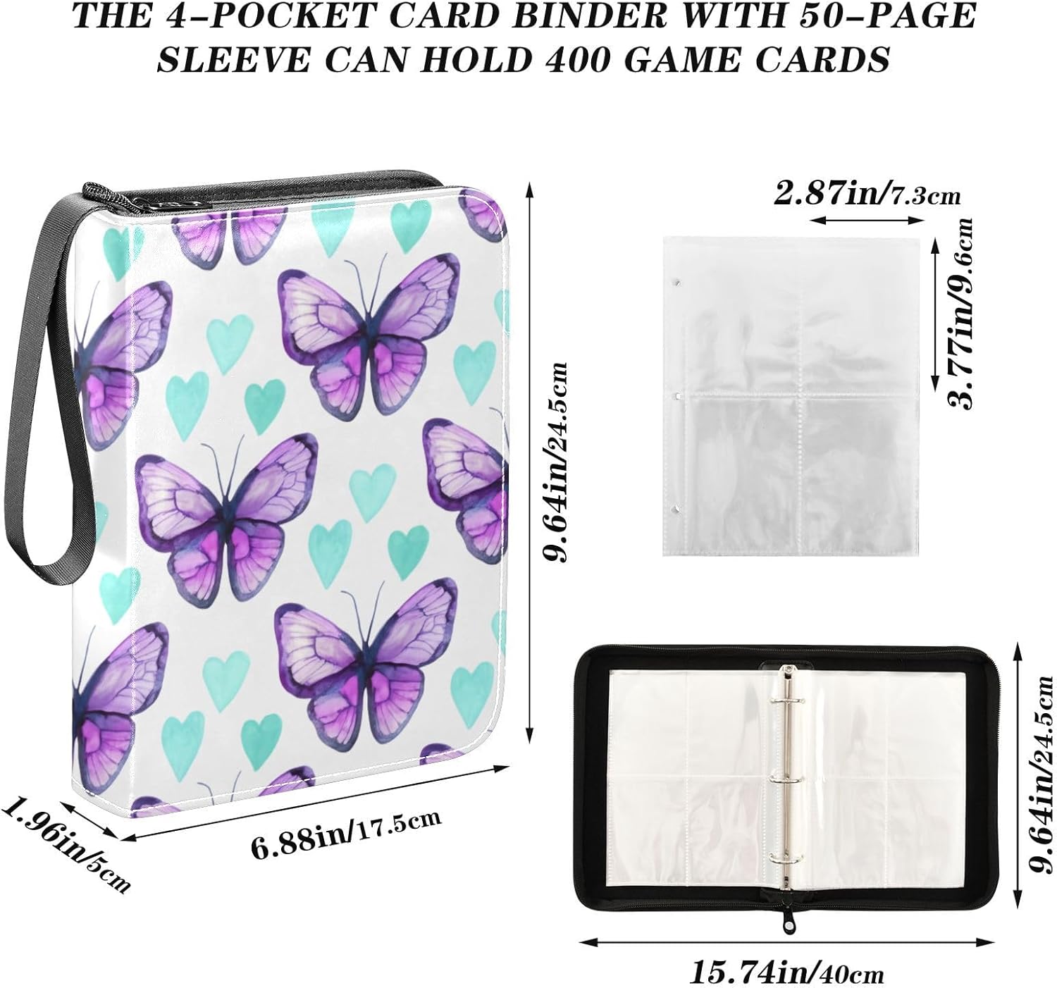Contiene 400 carte: il nostro raccoglitore per carte dispone di 50 pagine con 4 tasche su ogni pagina, per un totale di 400 tasche per carte. Ogni slot misura 9,6 x 7,3 cm, accoglie perfettamente le tue carte collezionabili. Custodie per carte di alta qualità: realizzata in resistente pelle PU, questa custodia per carte da gioco offre un'eccellente resistenza all'acqua e all'usura, garantendo una protezione duratura per le tue carte. Portatile: il raccoglitore per carte collezionabili è progettato con un cinturino in nylon sul lato, che consente una facile portabilità e comodità durante il trasporto della collezione. Design con cerniera: il design con cerniera offre diversi strati di protezione, evitando che le pagine interne o le carte cadano. La superficie è liscia e impermeabile, facile da pulire e mantenere. Ampia applicazione: questo raccoglitore multiuso è adatto per varie carte collezionabili, sia che tu raccolga carte sportive come baseball, calcio, basket o calcio o ti godi carte da gioco.