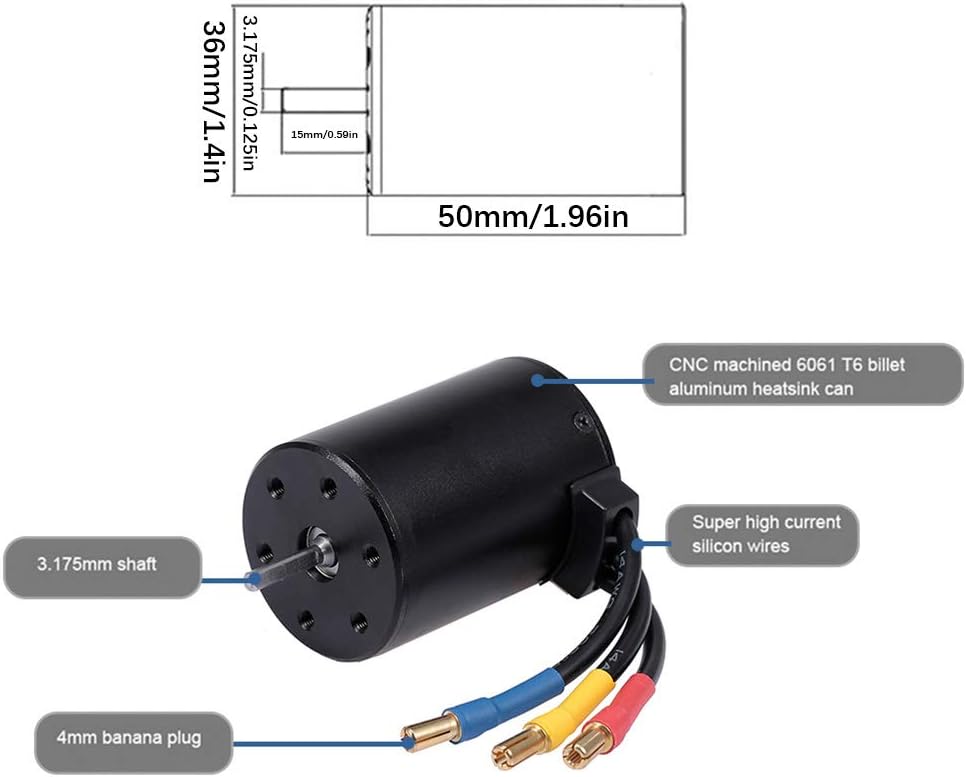 Avvolgimento in rame: il motore RC in lega di alluminio utilizza avvolgimenti in rame di elevata purezza per garantire la massima efficienza di conversione energetica, prestazioni affidabili e uso a lungo termine. Applicazione: 3650 4300KV RC Moto è ideale per modelli di auto RC 1/10, fornisce un'eccellente potenza in uscita ed è un ottimo sostituto per modelli di auto RC vecchi o rotti. Rotore perfettamente bilanciato: il motore brushless sensorless è dotato di un rotore perfettamente bilanciato che garantisce che il tuo modello di auto RC funzioni in modo fluido e stabile, massimizzando la velocità di rotazione e migliorando notevolmente la tua esperienza di guida. Buone prestazioni: questo motore brushless e sensorless è facile da installare e progettato con precisione per la massima conversione di energia, che può migliorare significativamente le prestazioni delle auto RC. Motore a torsione elevata: questo motore da 3650 4300 kV presenta un design a 4 poli e 12 slot con un diametro dell'albero di 3,175 mm, fornendo elevata potenza torsionale, velocità ed efficienza per la tua auto RC.