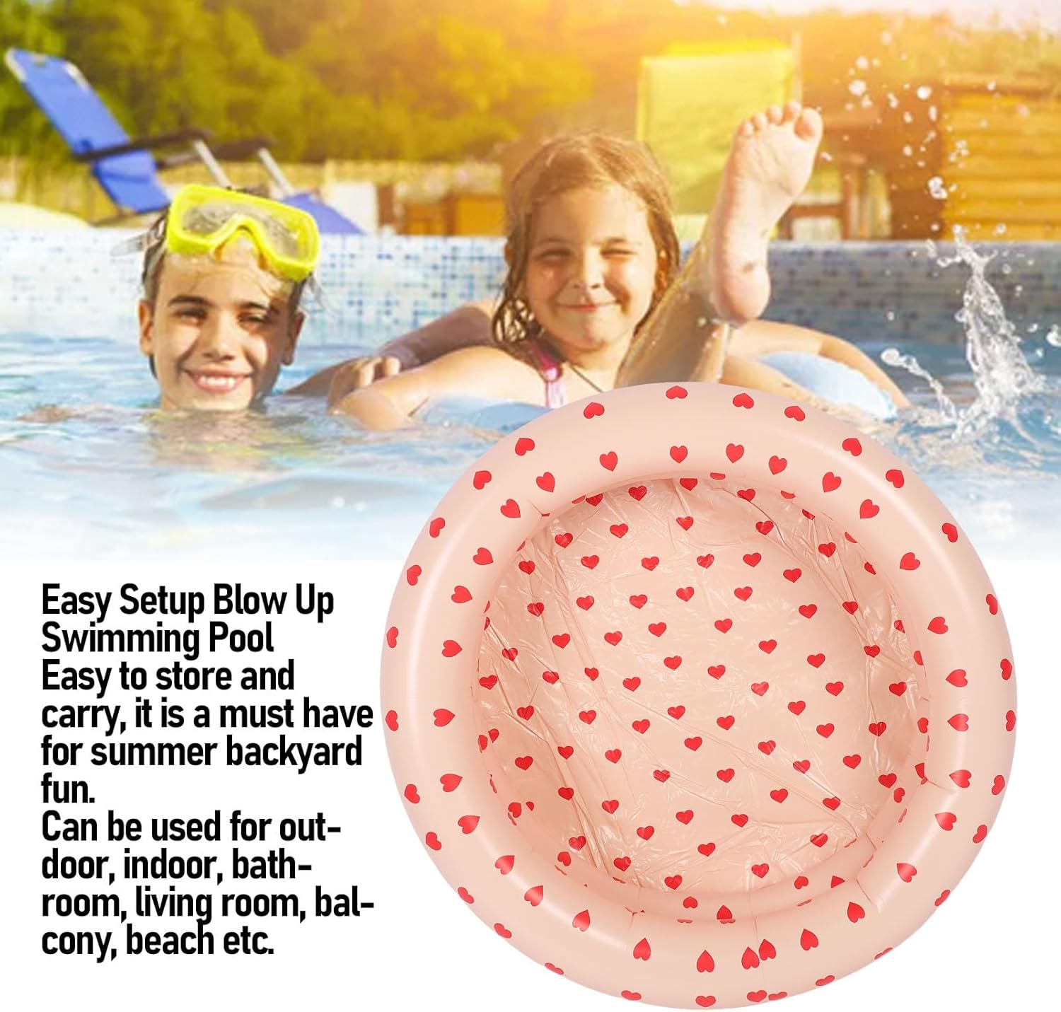 [Materiale in PVC durevole] La nostra piscina gonfiata nel cortile è realizzata con materiale in PVC di alta qualità, progettato per resistere all'invecchiamento e fornire una durata eccezionale, rendendolo resistente alla foratura e duratura. Lo spessore rinforzato garantisce una robusta costruzione per ore di divertimento in gioco. [Inflazione rapida] La piscina esterna esterna esterna si gonfia rapidamente e senza sforzo, permettendoti di impostarlo in pochissimo tempo e iniziare a divertirti immediatamente. Dì addio a lunghe procedure di installazione e ciao a infinite avventure acquatiche! [Uso versatile] Non limitato al nuoto, questa piscina gonfiabile si trasforma in una fossa a sfera o una sandbox, offrendo opzioni di gioco versatili per uso interno ed esterno. Sia in casa, sul balcone o in spiaggia, questa piscina garantisce intrattenimento per tutte le occasioni. [Design pieghevole] Con un comodo design pieghevole, questa piscina gonfiabile risparmia spazio quando non è in uso e consente un facile trasporto per il divertimento estivo in viaggio. Basta piegare, conservare e portalo con te dove desideri un'esperienza da schizzi. [Dimensioni adatte] La dimensione perfetta per i bambini alti sotto 1,2 m, questa piscina gonfiabile da giardino all'aperto garantisce un tempo di gioco sicuro e divertente con la supervisione dei genitori raccomandata. Lascia che i tuoi piccoli si imbricciano nell'acqua in modo sicuro e felice con questa piscina compatta e invitante.