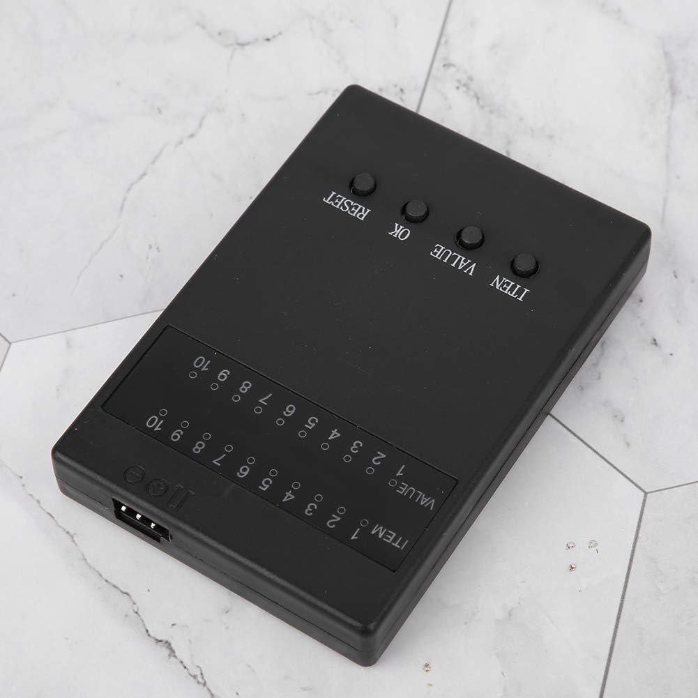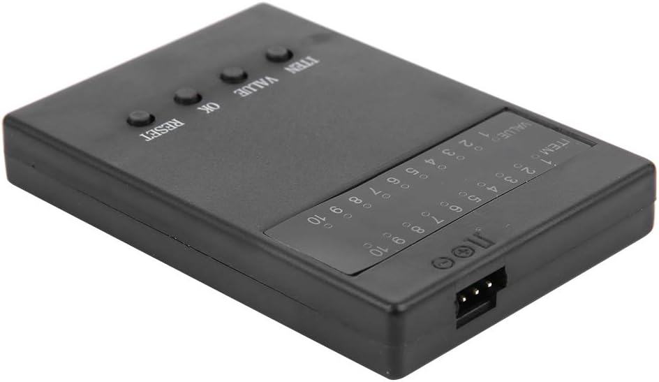 【Adotta Maxinum Braking】 La programmazione offre una migliore esperienza di guida, che può impostare la massima forza frenante (50%, 25%, 75%, (25 A, 35 A, 45 A, 60 A), 25%, 50% , 75%, (80A, 120A)), la forza inversa massima (25%, 50%, 75%, 100%), che consente di controllare meglio l'auto RC e ottenere 【Facile da usare】 Il programimg è facile da usare, con 4 pulsanti, ITEM, VALUE, OK, pulsante RESET, con indicatore luminoso, comodo da impostare 【Ampia applicazione】 Questa è la programmazione per HOBBYFANS, OCDAY, ESC brushless GOOLRC. che è meraviglioso accessorio per la sostituzione. 【Facile da usare】 Il programimg è facile da usare, con 4 pulsanti, ITEM, VALUE, OK, pulsante RESET, con indicatore luminoso, comodo da impostare 【Applicazione per】 La scheda di programmazione ha prestazioni eccellenti, è appositamente progettata per auto RC 1/10, montaggio diretto.