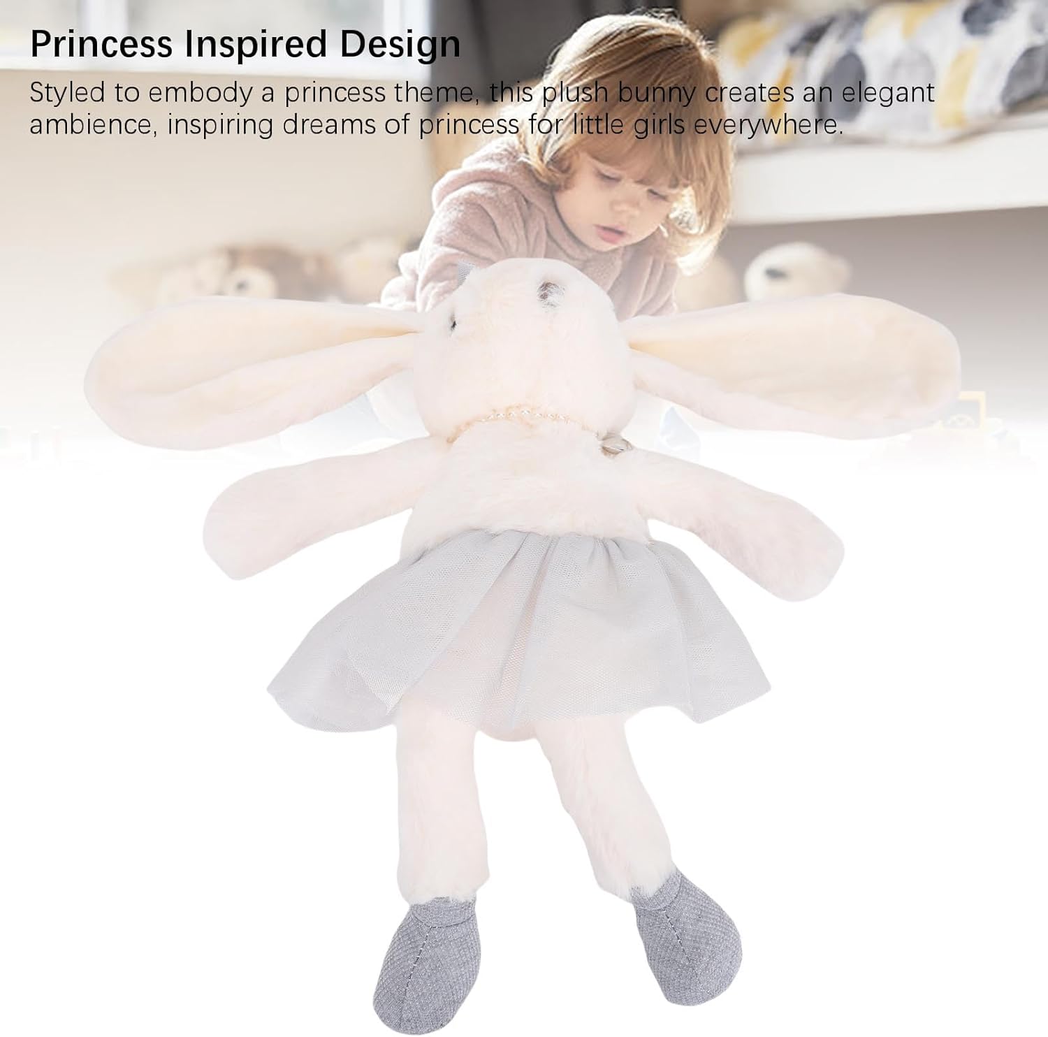 [Morbidezza senza pari] Il nostro peluche principessa è realizzato in tessuto lussuoso che è eccezionalmente morbido e delicato, garantendo ore di gioco comodi per bambini che adorano coccole. Il materiale è resistente e si perde minimamente, offrendo un giocattolo sicuro e di lunga durata per i bambini. [Adorabile design] Con orecchie lunghe affascinanti, questa bambola coniglietta trasuda fascino e capriccioso, rendendolo irresistibilmente carino. Le orecchie annesse in modo sicuro migliorano il fascino del giocattolo, distinguendosi tra gli altri animali di peluche e deliziosi bambini con il suo design giocoso. [Premium Craftsmanship] Fraticato a mano con dettagli meticolosi che utilizzano tessuto di peluche premium, ogni giocattolo di peluche principessa garantisce una morbidezza e una durata superiori. Le intricate caratteristiche di design e espressive rendono questa bambola di coniglietto un compagno di fiducia durante le coccole di gioco e della buona volta. [Decorazioni versatili] Non un delizioso compagno di giochi, il nostro elegante peluche principessa funge da bellissimo pezzo decorativo per camere per bambini e feste di compleanno. Il suo design senza tempo e la costruzione di qualità lo rendono un ideale per compleanni, vacanze o qualsiasi occasione speciale, portando gioia ai bambini di tutto il mondo. [Immaginazione ispiratrice] Pensatamente progettato per ispirare il gioco creativo e le fiabe, il nostro peluche è un ricordo caro. Dai suoi occhi espressivi alla sua soffice coda, ogni aspetto di questo giocattolo a tema principessa è realizzato con cura, rendendolo per le bambine che amano la narrazione.