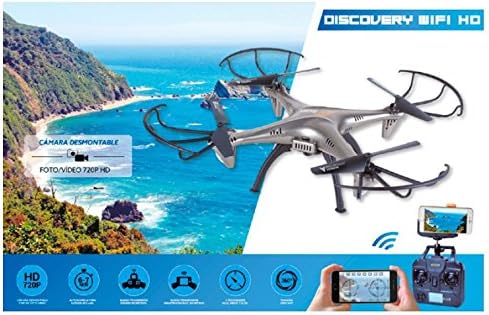 Telecomando N4 Discovery WiFi HD dr-dv600 2,4 Ghz. Supporto per smartphone. Risoluzione della fotocamera da 1 MP. HD 720P. 4 propulsori (4 di riserva). Caricatore USB. Batteria da 600 mAh. Scheda SD da 4GB. Durata della batteria: 6 – 7 minuti. Portata di trasmissione con telecomando: 80 metri. Portata di trasmissione dello smartphone: 50 metri. 3 velocità: bassa, media e alta. Funzione di rotazione a 360° Dimensioni: 340 * 340 * 115 mm Dimensioni scatola: 542 * autonomo * 120 mm Peso netto: 0,145 kg. Peso lordo: 1,1 Kg.
