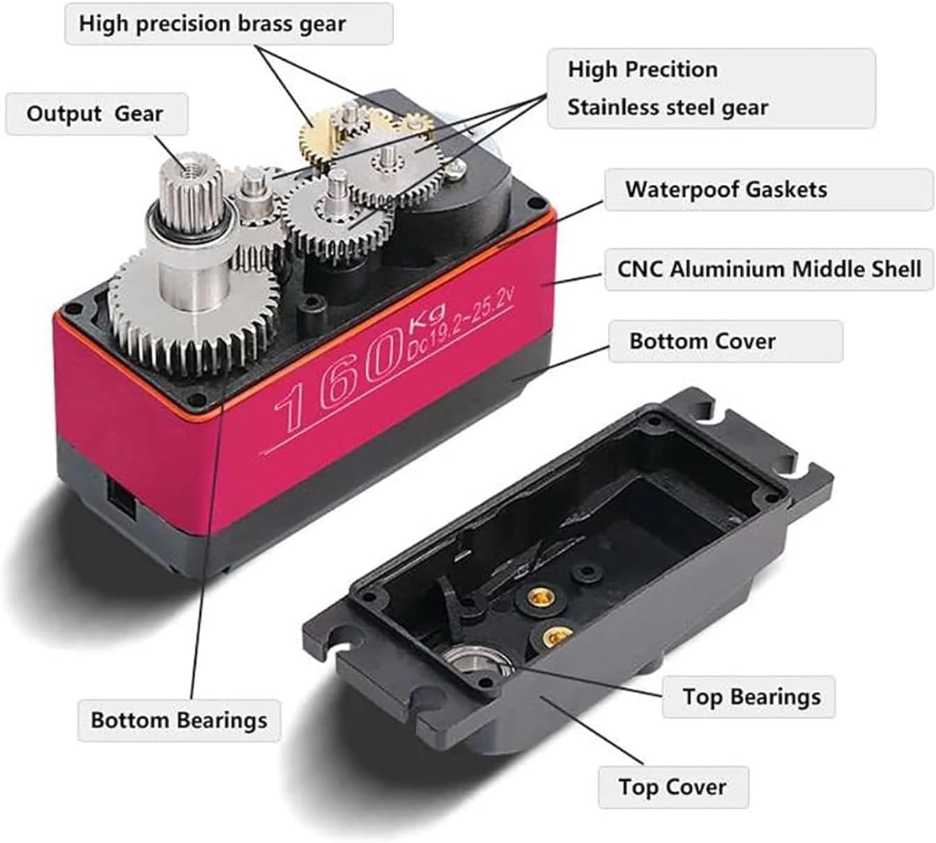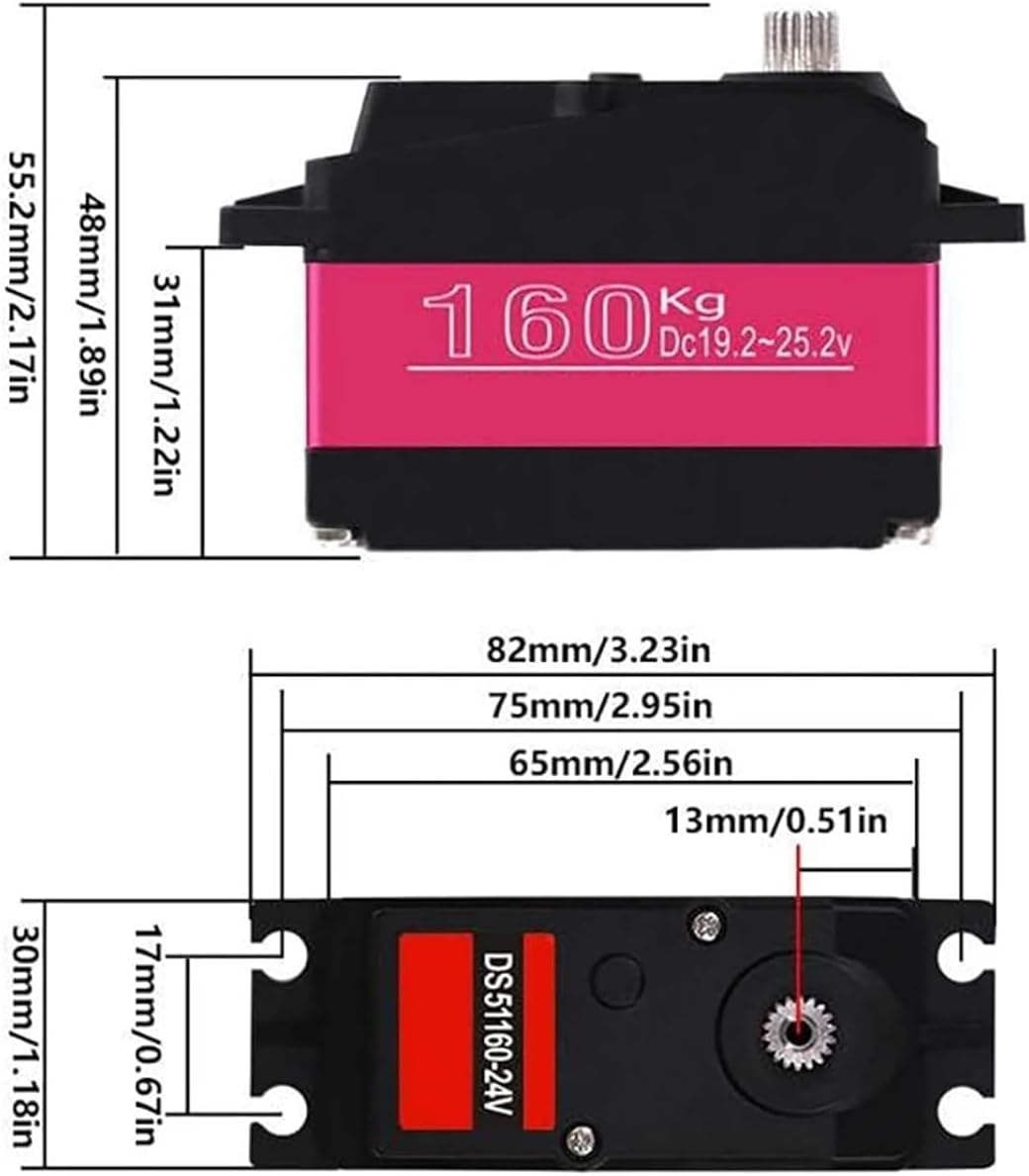 Descrizione: Coppia: 155 kg-cm (19,2 V), 170 kg-cm (24 V), 185 kg-cm (25,2 V) Tipo di motore: motore CC Velocità: 0,24 sec/60 ° (19,2 V), 0,21 sec / 60 ° (24 V), 0,19 sec / 60 ° (25,2 V) Peso: 175 g Tensione di funzionamento: 19,2-25,2 V Dimensioni: 65 * 30 * 48 mm Tipo di ingranaggio: rame alluminio