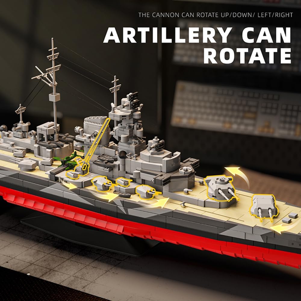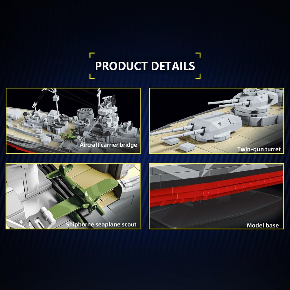DUANT 39058 è modellato sulla corazzata Tirpitz in scala 1:300 ed è composto da oltre 2.738 componenti. È lungo 80 centimetri (31,49 pollici), largo 13 centimetri (5,12 pollici) e alto 25,5 centimetri (10,04 pollici). La corazzata Tirpitz fu la seconda corazzata tedesca della classe Bismarck. Con un dislocamento di 52.900 tonnellate, una velocità massima di 30 nodi e una portata massima di 8.870 miglia nautiche, era armato con quattro cannoni gemelli da 380 mm nella batteria principale e dodici cannoni da 150 mm e sedici cannoni da 105 mm nella batteria secondaria. Questa grande nave da guerra era dotata di un potente sistema di artiglieria, un efficace sistema di controllo del fuoco, una migliore protezione della corazza e un propulsore stabile. Questo eccellente strumento di apprendimento STEM consente agli appassionati di blocchi di imparare assemblando. L'assemblaggio pratico rende tangibili i concetti scientifici astratti promuovendo al contempo il pensiero logico e le abilità pratiche. Le istruzioni illustrate incluse spiegano i meccanismi in modo di facile comprensione. Ciò consente ai giocatori di integrare in modo naturale le proprie conoscenze nel gioco, creando un'esperienza divertente ed educativa. Se durante il processo di costruzione mancano parti, contattateci. Siamo felici di trovare una soluzione soddisfacente.