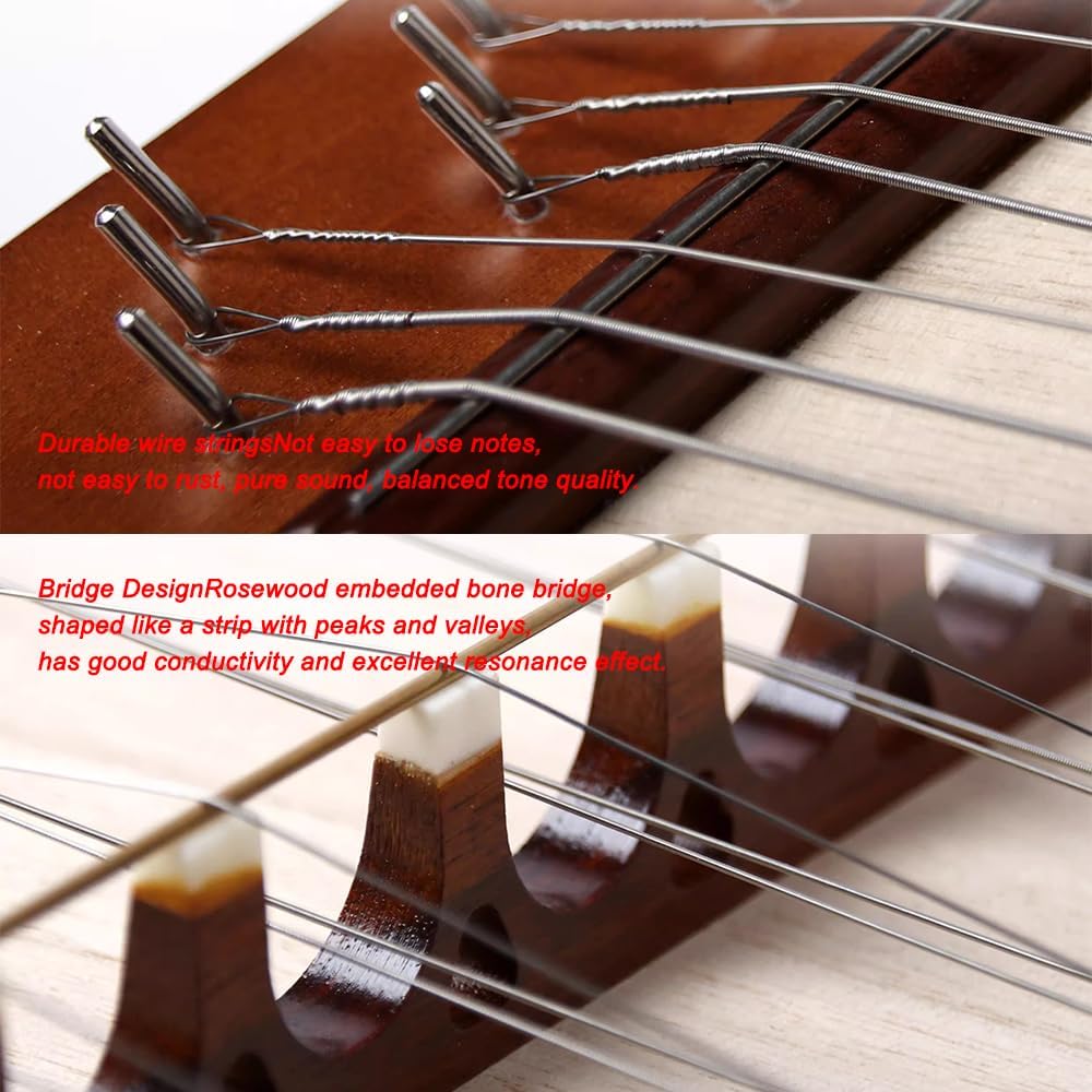 Ideale per i principianti: il nostro Dulcimer portatile è progettato specificamente per i principianti, offrendo un punto di ingresso accessibile nel mondo di strumenti musicali a corda. Accompagnamento della musica versatile: se ti esibisci con un'orchestra o inceppamento con gli amici, questo strumento migliora il tuo suono e completa vari stili musicali. Materiali: Paulownia Top, il nostro Dulcimer portatile garantisce la durata e produce un suono melodioso e maestoso che si distingue in qualsiasi ambiente musicale. Leggero e portatile: pesa circa 2,5 kg, questo dulcimer è facile da trasportare, rendendolo un'ottima scelta per gli amanti della musica in movimento. Pacchetto completo per gli amanti della musica: che tu stia andando a una prova, un concerto o semplicemente praticando a casa, puoi facilmente portare il tuo dulcimer, proprio come altri strumenti a corda come violini e chitarre acustiche.