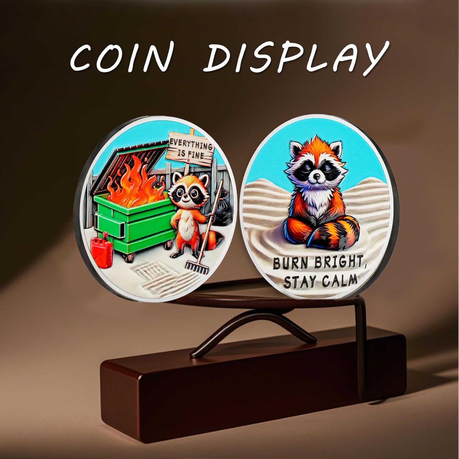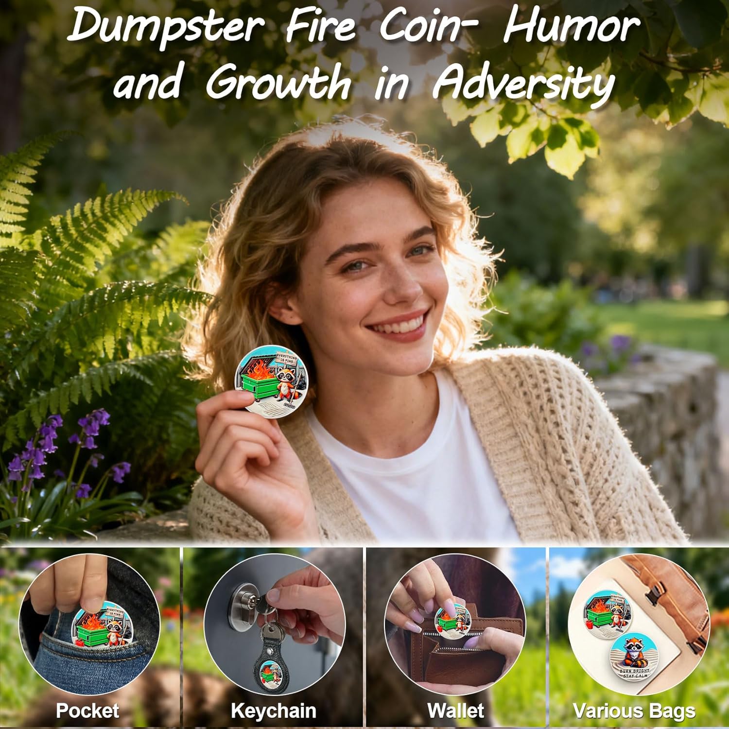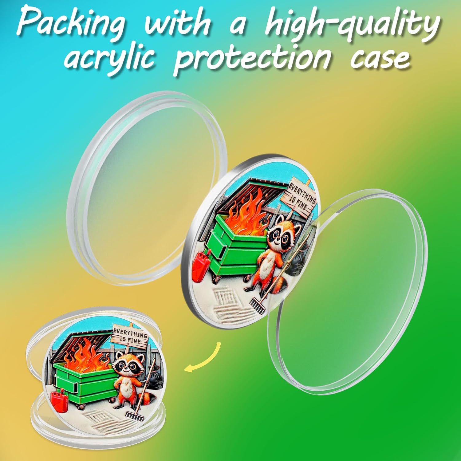 Raccoon Dumpster Fire Coin: La moneta del fuoco del cassonetto "Tutto va bene" riflette umoristicamente il caos e le sfide della vita. Incoraggiare chi lo indossa ad affrontare le incertezze della vita con un atteggiamento ottimista, ricordando loro che anche nei momenti peggiori, la forza può essere tradotta dalle avversità, diventando più forte e coraggiosa e continuando ad andare avanti Squisita lavorazione a doppia faccia: la parte anteriore presenta un procione che tiene un rastrello, accanto a un cassonetto verde acceso, parole "Everything is bene". Il rovescio raffigura un procione calmo con le parole "BURN BRIGHT, STAY CALM", trasmettendo il messaggio Anche di fronte al caos, dobbiamo mantenere un atteggiamento positivo, crescere attraverso le sfide e diventare più forti e più resilienti Artigianato di alta qualità e dimensioni ideali: realizzata in lega di zinco resistente, questa moneta antincendio è accuratamente realizzata con una finitura argento e intricati dettagli in rilievo 3D che danno vita a ogni elemento di design. La moneta motivazionale è di circa 40 mm di diametro e 3 mm di spessore, perfetta da tenere in tasca o in portafoglio, o appesa a un portachiavi per una facile visualizzazione. Ogni moneta viene fornita con una custodia protettiva trasparente di alta qualità Adatto per varie occasioni: perfetto per una varietà di occasioni, soprattutto quando si affrontano pressioni, sfide o avversità. È un regalo ideale per l'ufficio per aiutare i colleghi a rilassarsi ed è anche ottimo come regalo incoraggiante per amici o familiari che vivono lotte di vita o transizioni di carriera. Perfetto per chi ha senso dell'umorismo, appassionati di auto-miglioramento, imprenditori o anche come decorazione per ufficio e un ricordo per i vigili del fuoco Regalo umoristico ispiratore: la moneta forgiata nel fuoco è un regalo divertente e stimolante, perfetta per auto-motivazione, laurea, regali in ufficio o come regalo speciale e divertente. Incoraggiare le persone a rimanere tenaci nei momenti più difficili e tutti hanno il potenziale per coltivare la capacità di affrontare le sfide con facilità, diventare più forti, più resilienti e alla fine diventare un sé più forte