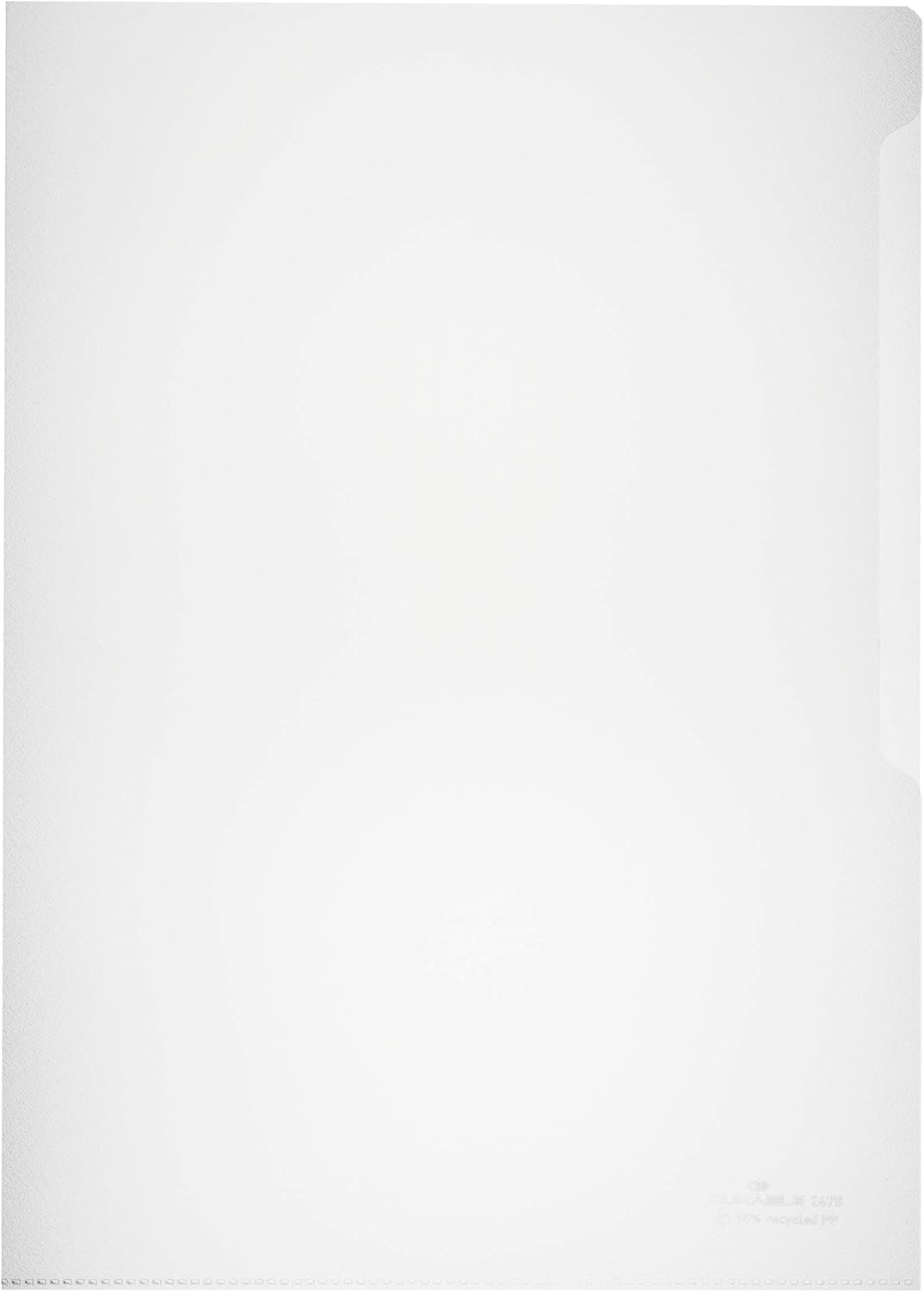 Contenuto della confezione: buste a L trasparenti A4, 100 pezzi, apertura superiore e laterale Ecosostenibili: realizzate con almeno il 95% di plastica riciclata pre-consumo (rifiuti industriali, scarti o residui di produzione) Funzionali: buste trasparenti formato A4 per inserire e proteggere i documenti Buste trasparenti in polipropilene con pratica lunetta di apertura Made in Germany - Durable è uno dei principali produttori tedeschi di soluzioni per l'organizzazione e la presentazione di informazioni