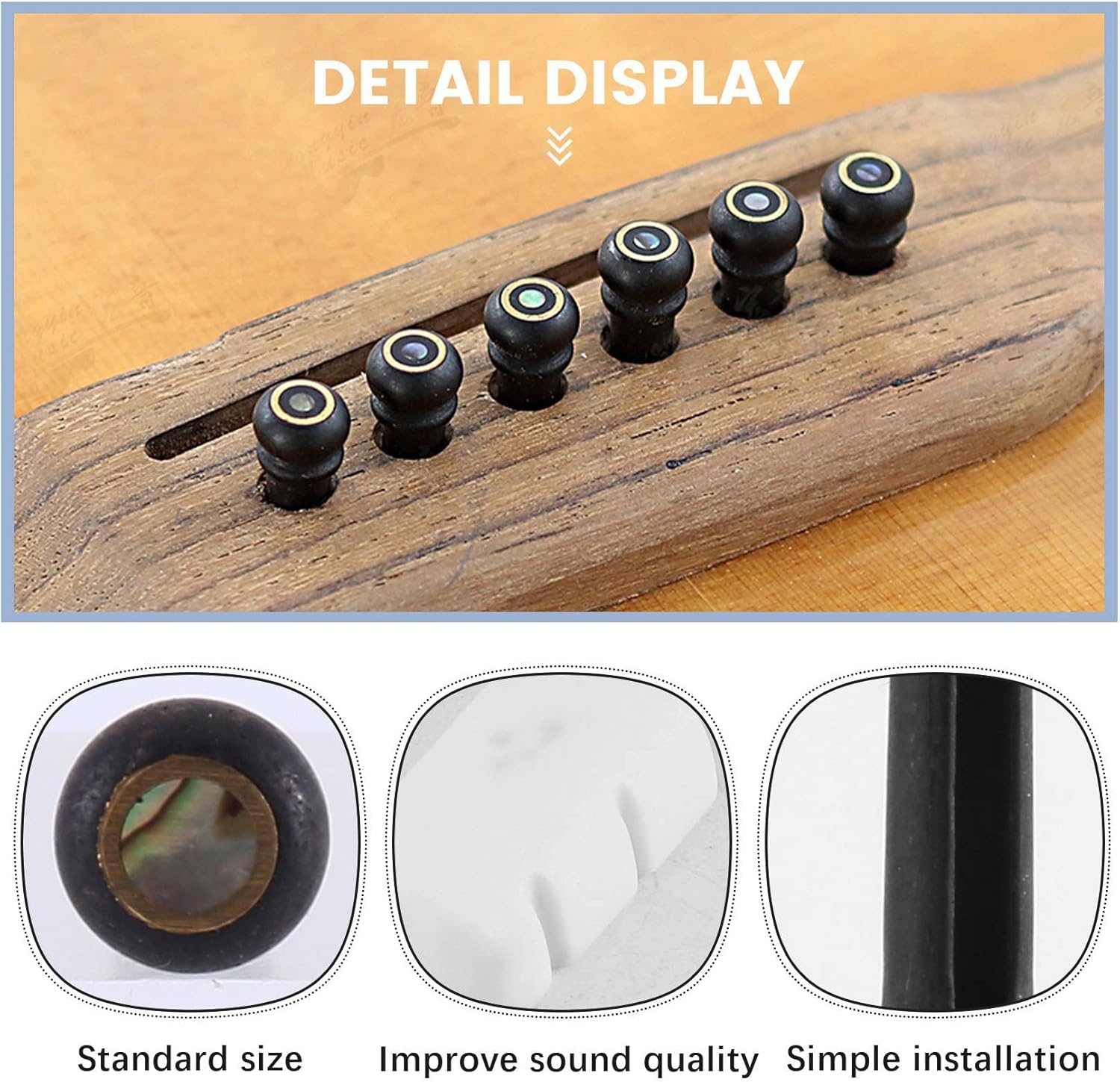L' ha una porosità minima e un bell'aspetto. La sua densità e la minima porosità sono caratteristiche che producono una intonazione e chiarezza. 100% di zecca, alta qualità e test va Costruisci il tuo ponte per chitarra in stile con questi bei perni, e . Portatile e facile da usare, adatto per qualsiasi marca di chitarra acustica. (Si prega di verificare se la dimensione è adatta alla propria chitarra prima di acquistare.) perni del ponte da 6 pezzi sono realizzati in ebano con punto abalone verde e cerchio in testa. Non solo questi splendidi perni renderanno la tua chitarra meravigliosa, ma la loro densità e rigidità forniranno un migliore trasferimento vibrazionale attraverso il ponte rispetto alla plastica, quindi anche la tua chitarra suonerà meglio!