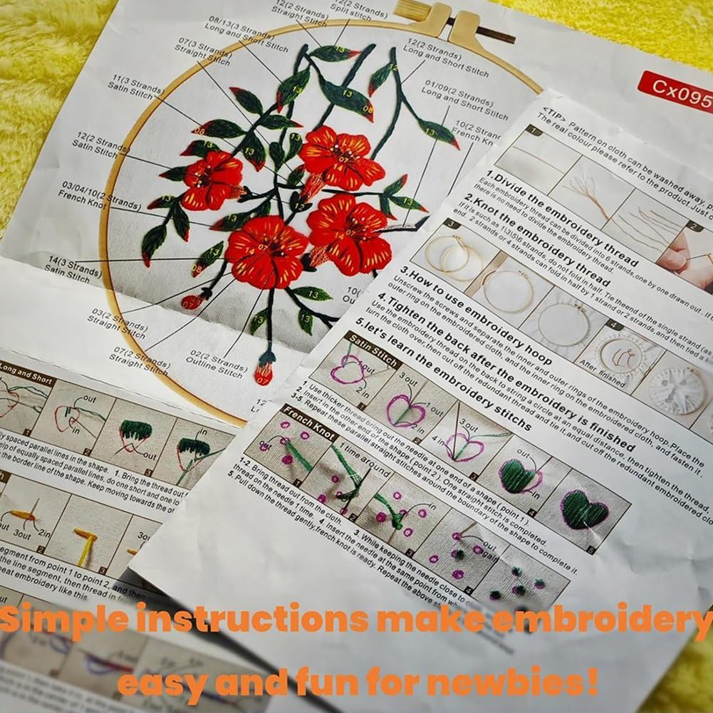 Design splendido e vivace: questo kit da ricamo presenta un bellissimo motivo floreale con dai colori vivaci. Una volta completato, il ricamo diventa un meraviglioso elemento che aggiunge fascino a qualsiasi . Ideale per i principianti: inizia facilmente con questo kit da ricamo per principianti. Il disegno idrosolubile rende il ricamo semplice e divertente, anche per i principianti. Hobby rilassante e : prenditi una pausa dallo stress quotidiano e goditi gli effetti rilassanti del ricamo. Questo kit da ricamo è perfetto per rilassarsi a casa, offrendo un modo divertente e per rilassarsi mentre si lavora a un bel progetto. Un regalo premuroso per i propri cari: questo kit da ricamo è un regalo meraviglioso per figlie, mamme, nonne e amiche. È un ottimo modo per condividere momenti di qualità insieme, creando qualcosa di bello, perfetto per compleanni, festività o qualsiasi occasione speciale. Kit completo per principianti: questo kit da ricamo include tutto il necessario: 4 tessuti prestampati, 4 manuali facili da seguire, 4 set di fili dai colori vivaci, 2 telai di bambù, 12 , forbici, scucitore e un infila ago. È il set completo perfetto per iniziare il tuo viaggio nel ricamo!