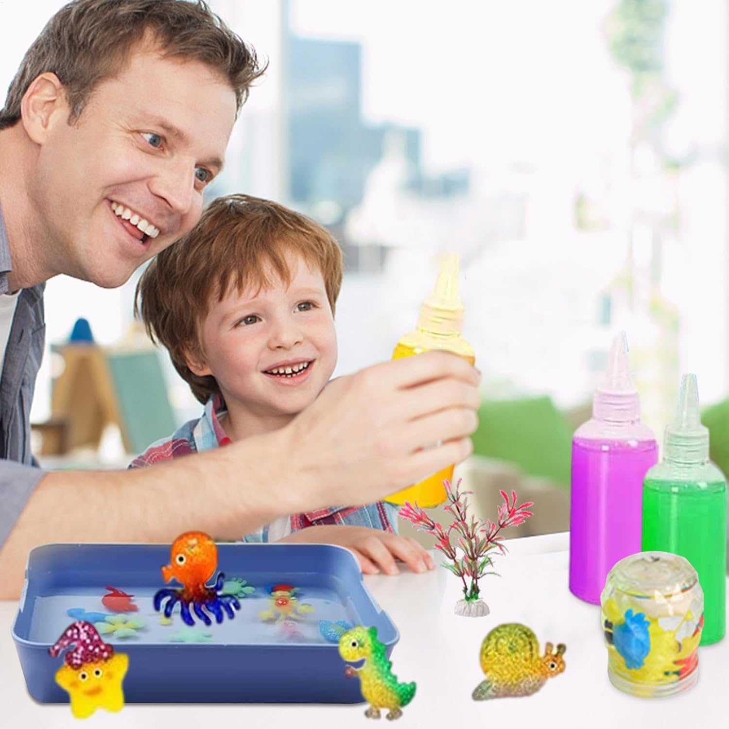 Giocattoli di attività per bambini: il kit di perline per animali acquatici è adatto a bambini di tutte le età, ideale per interazioni genitore-figlio e riunioni per migliorare le abilità sociali, un regalo divertente ed educativo per compleanni e Natale. Colori vivaci: con colori vivaci per attirare i bambini, Magic Water E-lf Toy Set include tutti gli strumenti D-IY necessari per giocare, lasciando che il tuo bambino ami creare ed essere curioso dell'ignoto. Migliora le abilità pratiche: sviluppa concentrazione, percezione del colore e coordinazione occhio-mano, il kit di perline Water E-lf è un buon esercizio per l'immaginazione e la creatività, fornendo un'attività per i bambini per migliorare le loro abilità pratiche e artistiche. Facile da usare: lascia che i tuoi bambini realizzino facilmente simpatici personaggi giocattolo colorati, il kit 3D Magic Gels è un'attività fatta a mano per mantenere i bambini freschi e facile da usare versando il gel in uno stampo e posizionandolo in acqua. Materiale flessibile: il gel Magic Water E-lf è realizzato in lattato di calcio naturale e alginato di sodio, non si rompe o sbiadisce facilmente, e sicuro per non ferire le mani, con elevata elasticità e buona resistenza.
