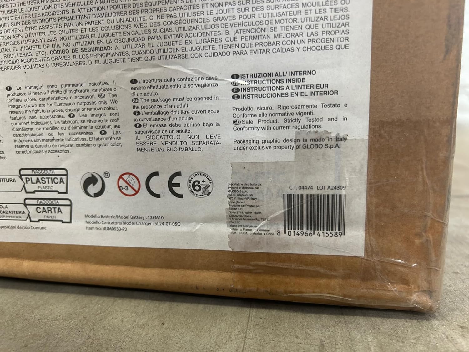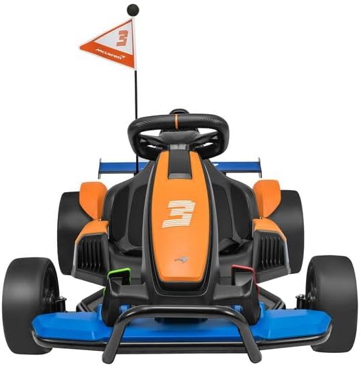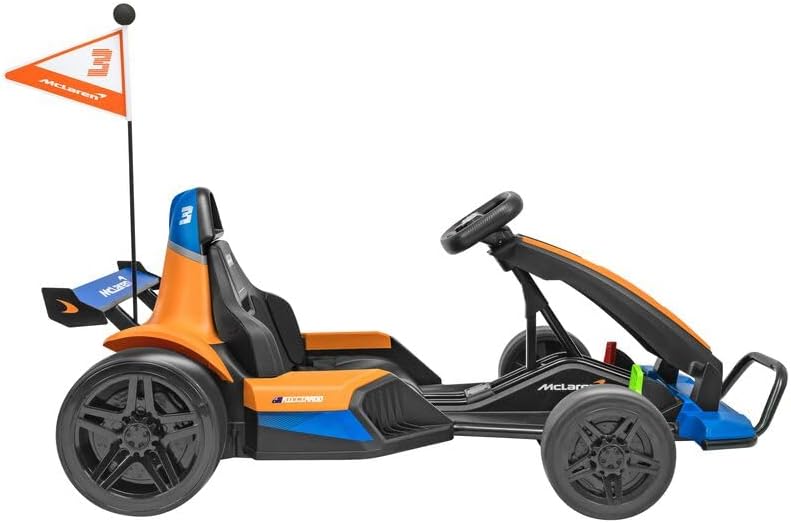 Chiave per l'accensione, con effetti sonori realistici Cintura di sicurezza Portata massima: 60 kg Una velocità: fino a 12 km/h Fari LED anteriori e posteriori con indicatore di frenata Collegamento Bluetooth, musica e radio incluse Due modalità di guida sul volante con retromarcia ed effetto drift