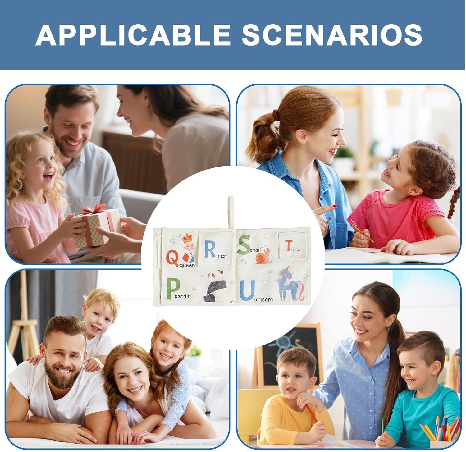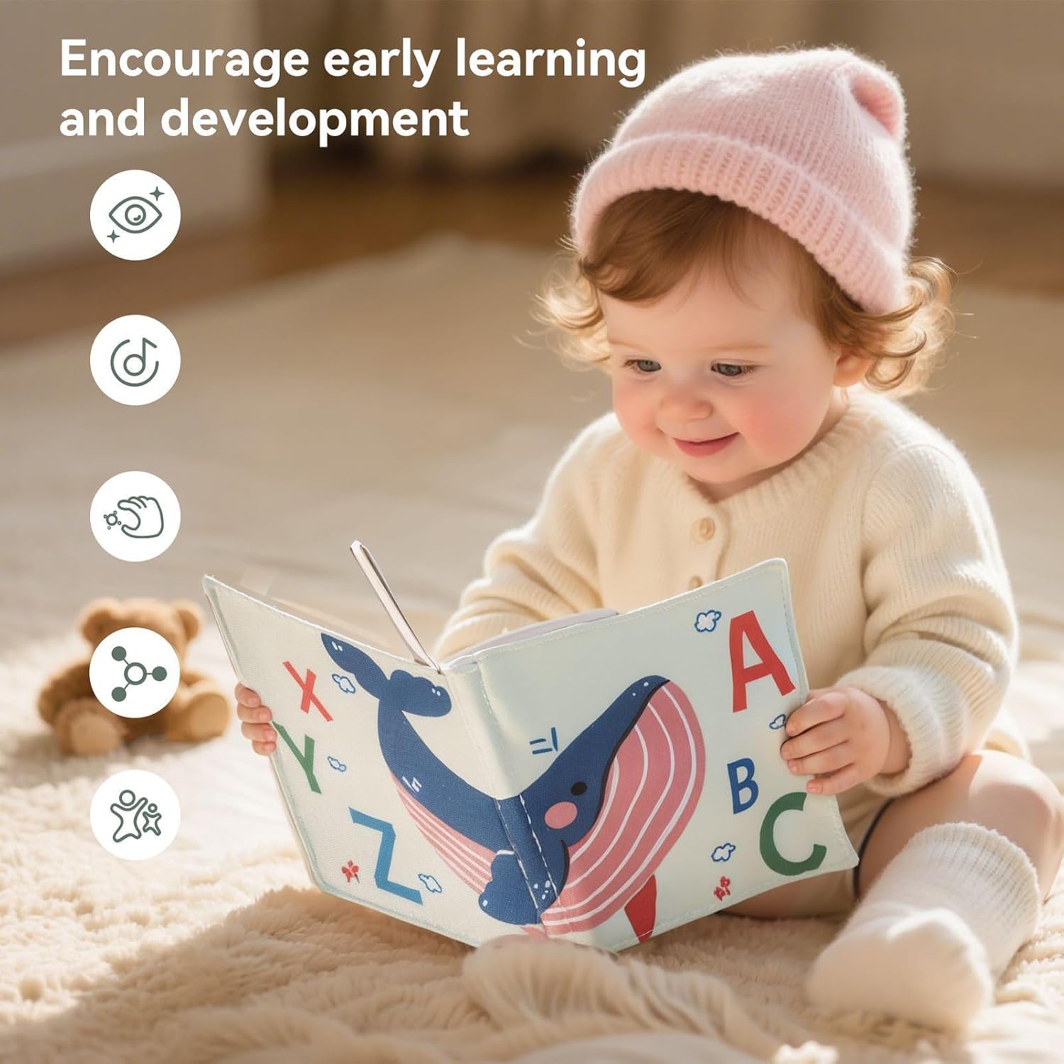 Un regalo ponderato per nuovi genitori, asilo o asilo , questo libro di stoffa combina istruzione, gioco e stimolazione sensoriale. È adatto ai bambini dalla nascita ed è ideale per favorire le abitudini di apprendimento precoce, il gioco e i momenti di interattivi con genitori o caregiver Sicuro per la dentizione, il libro in tessuto consente di masticare, toccare ed esplorare senza preoccupazioni. I suoi morbidi, materiali proteggono le gengive delicate fornendo comfort, rendendolo una scelta eccellente per il di pancia, le corse dei passeggini o la distrazione da tavolo da pranzo durante i pasti Ogni pagina colori vivaci, trame e semplici illustrazioni per stimolare lo sviluppo visivo e la curiosità. per insegnare forme, animali e concetti di base, questo libro educativo precoce promuove la crescita cognitiva mantenendo i bambini intrattenuti sia all'interno che all'esterno Progettato per la portabilità, questo libro di stoffa è leggero e facile da trasportare per l'uso nel vivaio, nel soggiorno, nel balcone o persino durante i viaggi di shopping. La sua costruzione durevole resiste a masticare, tirare e lavarsi, rendendolo un giocattolo educativo pratico e di lunga durata per Incoraggia l'apprendimento precoce e lo sviluppo sensoriale con questo libro di stoffa per bambini. Realizzato in morbido, tessuto, fornisce stimolazione tattile, visiva e uditiva per e. Ideale per la dentizione, la strisciante o il gioco, aiuta a sviluppare le capacità di coordinamento e riconoscimento degli occhi mantenendo poco nell'apprendimento sicuro e interattivo