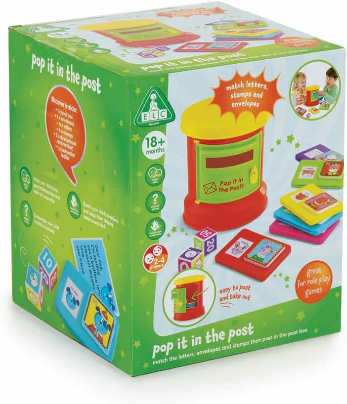 Abbina lettere, buste e francobolli, quindi imbucali nella cassetta della posta con il set Pop It In The Post di Early Learning Center. Questo gioco divertente e semplice delizierà il tuo bambino e adorerà i colori vivaci e giocosi. Per iniziare, divertiti a imbucare le lettere nella cassetta della posta e a tirarle fuori di nuovo. Possiamo inserire ed estrarre lettere dalle buste e cliccare su francobolli di grandi dimensioni. Possiamo fare un gran pasticcio con tutte le lettere, i francobolli e le buste e poi abbinarli di nuovo. Quando saremo davvero bravi a postare, potremo usare entrambi i dadi per giocare una partita a turni. È molto divertente per i piccoli post-persone. Ottimo per lo sviluppo delle capacità motorie, questo gioco può essere utilizzato anche dai bambini piccoli per giochi di ruolo e come gioco educativo duraturo quando saranno un po' più grandi. Abbina lettere, buste e francobolli e inviali tramite la casella di posta. Luminoso e colorato. Ottimo per sviluppare la motricità fine. Utilizzare per giochi di ruolo. Divertente gioco di abbinamento delle cassette delle lettere. Il set contiene: 1 cassetta della posta, 6 buste, 6 lettere, 6 francobolli, 2 dadi (animale e numero) e 1 foglio di istruzioni (lingua italiana non garantita). Dimensioni del prodotto (A x L x P): 19,5 x 18 x 18 cm. Dimensioni imballo: 21,5 cm (A) x 18 cm (L) x 18 cm (P).