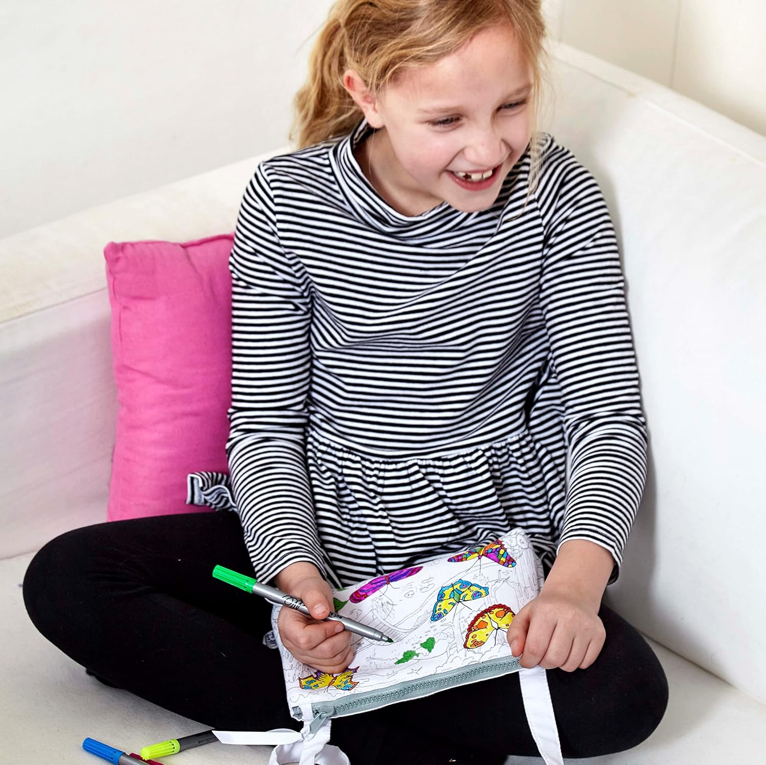 Loved the item but unfortunately Amazon had sent the product without packaging and with the address sticker affixed to the front of the cardboard sleeve. I was unable to remove the address sticker without leaving glue residue on the product sleeve, which spoilt the appearance of what was to be a gift. On informing the seller of this they promptly replied, explaining they had no control over Amazon not packaging properly but quickly arranged a refund that we hadn't asked for. Was very impressed by this and would use them again, but maybe not through Amazon. I think the item itself is a lovely bag which will encourage young childrens' artistic skills. I would say it is suitable for 5 years to 10 years old.