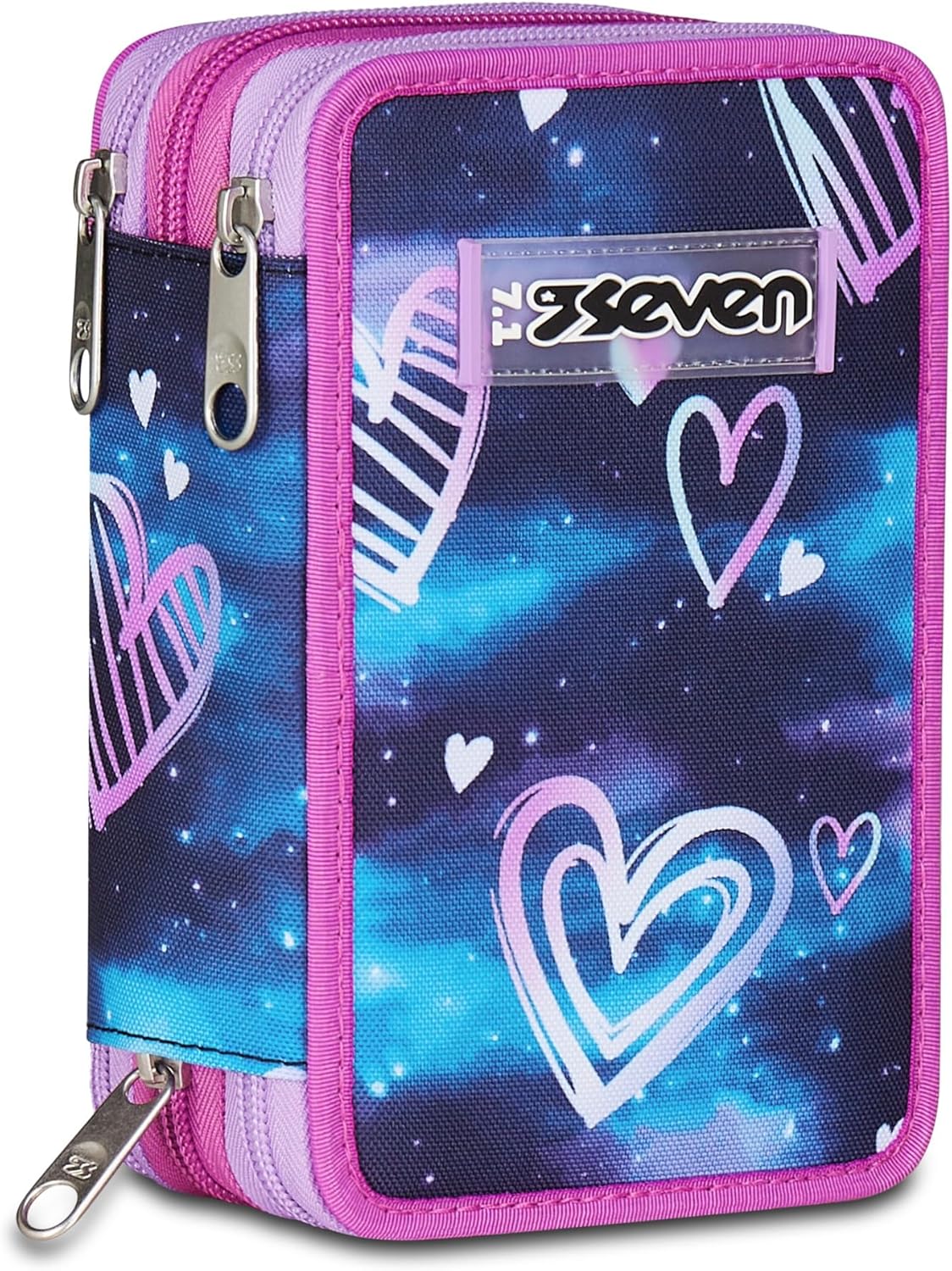 Praktisches schönes Federpenal - Qualität sieht sehr gut aus, auch der Reißverschluß ist gut zu öffnen. Innen kann man dann zB die Farben in das Schlamperfach legen und einen Bleistift und die Füllfeder in diese Gummi schieben, so dass man die wichtigsten Schreibuntensilien sofort zur Hand hat und nicht suchen muß - Aufteilung finde ich so perfekt. Für das Lineal oder Geld ist noch ein Reißverschluß fach im Deckel.