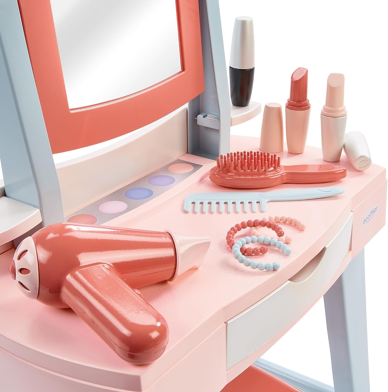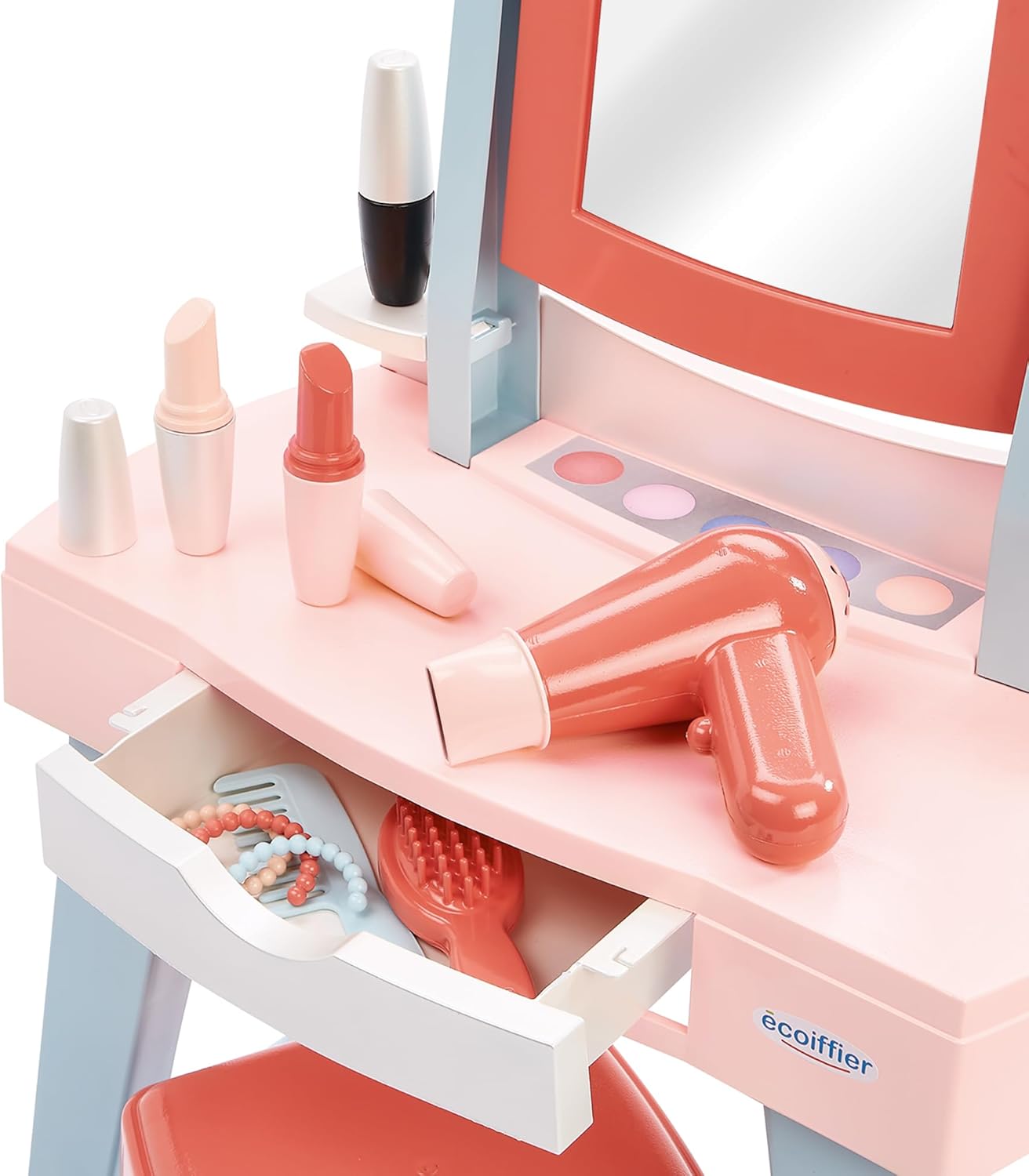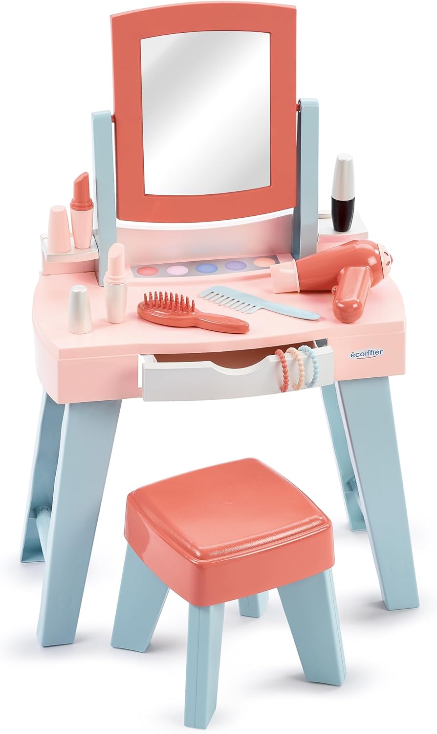 La più bella per andare a ballare: questa toletta e il suo sgabello hanno la dimensione ideale per tutte le piccole civette che vogliono farsi bella come mamma. Pratica e copertina: questa toletta dispone di molti accessori da riporre nel cassetto: 3 bracciali, 1 pettine, 1 spazzola per capelli e 2 rossetti, 1 mascara, 1 asciugacapelli e sgabello. (cosmetici fittizi) PER ESSERE LA PIÙ BELLE: i giocattoli ecoiffier offrono cosmetici in plastica falsi per giocare senza pericolo a farsi bella GIOCARE PER Crescere meglio: è imitando gli adulti e manipolando diversi giocattoli che i bambini imparano a comprendere il mondo che li circonda, a diventare più abili e più autosufficienti nella vita quotidiana. DES JOUTS ORIGINALE FRANCE GARANTIE: Toys Ecoiffier è un'azienda a conduzione familiare che produce tutti i suoi giocattoli in Francia.