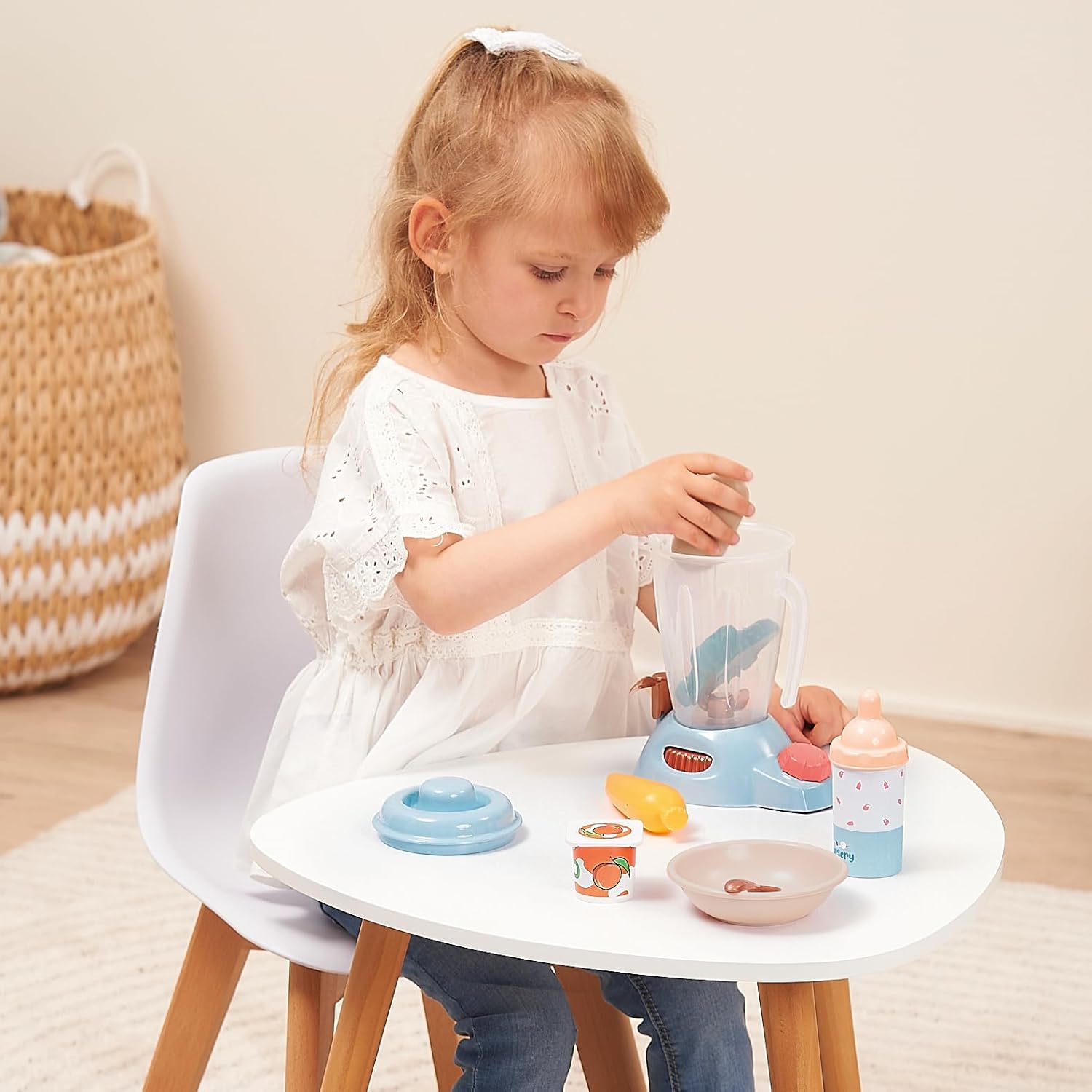 Con questo set di accessori il vostro bambino potrà preparare il pasto per il suo bambolotto, imitando i gesti di mamma e papà La valigetta contiene 8 accessori, tra cui un frullatore, un biberon, un piatto, un cucchiaino. Il set é adatto a partire dai 18 mesi È imitando gli adulti e manipolando diversi giocattoli che i bambini imparano a comprendere il mondo che li circonda, a diventare più abili e autosufficienti quotidianamente. Toys Ecoiffier è un'azienda a conduzione familiare che produce tutti i suoi giocattoli interamente in Francia. DES JOUTS ORIGINALE FRANCE GARANTIE: Toys Ecoiffier è un'azienda a conduzione familiare che produce tutti i suoi giocattoli in Francia.