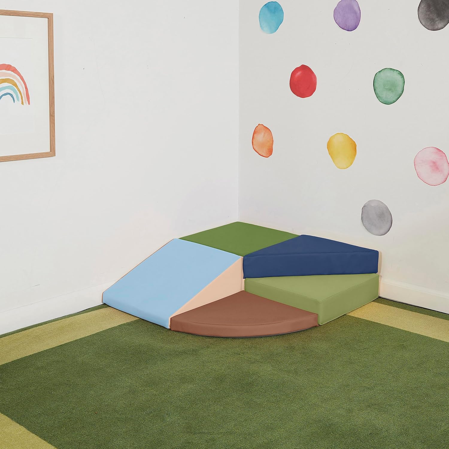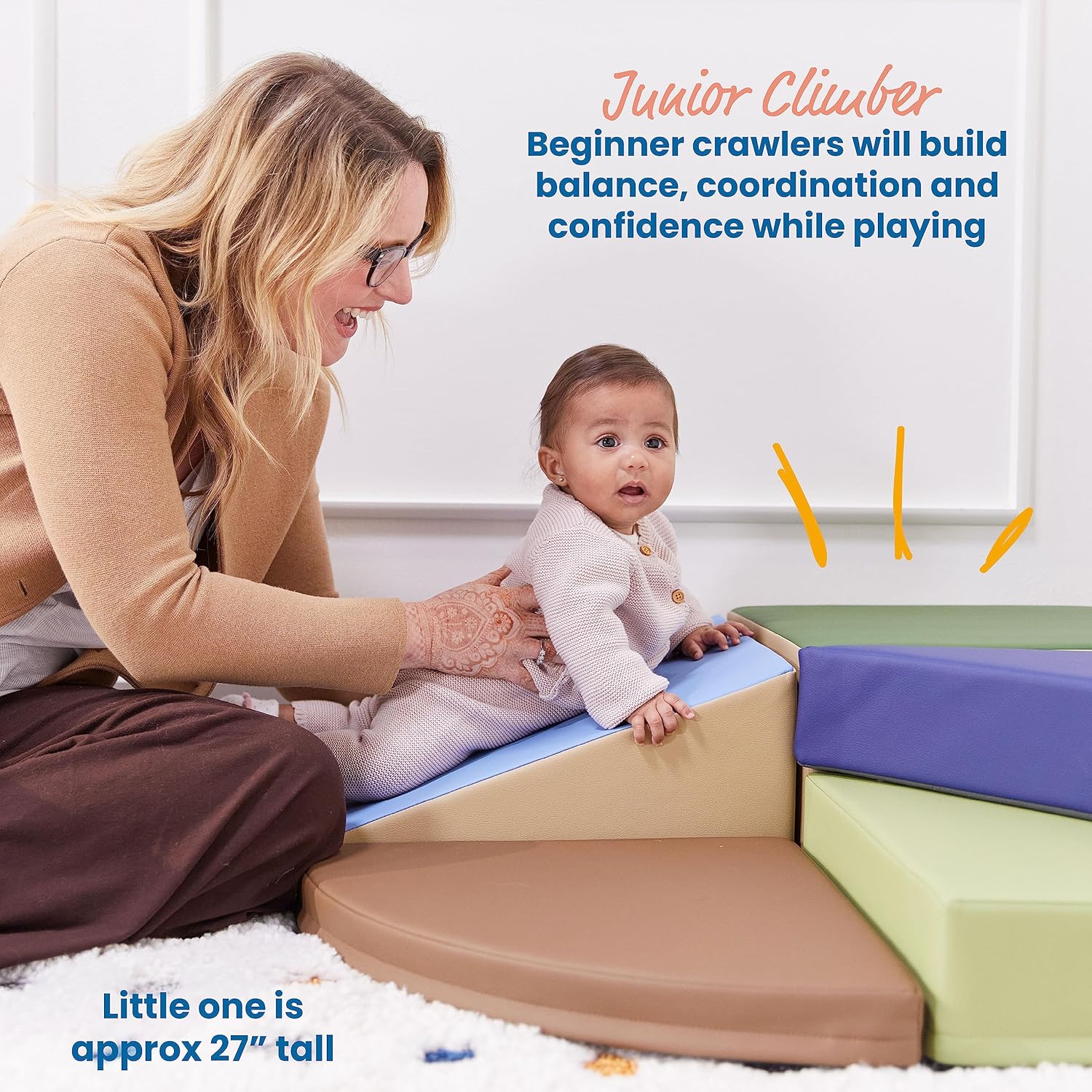 Scalatore di dimensioni mini: neonati e bambini possono arrampicarsi e gattonare in sicurezza su e intorno a questa struttura per principianti; il piccolo set è un ottimo modo per introdurre il gioco morbido negli ambienti della prima infanzia Sviluppo motore: questo scalatore in schiuma per interni incoraggia i bambini a costruire forza attraverso il gioco; posizionare i pezzi contro il muro nell'angolo di una stanza per un uso sicuro o allineare per creare nuove configurazioni Materiali durevoli: il nucleo in schiuma densa è rivestito in pelle vegana e dispone di una base antiscivolo per una maggiore stabilità durante l'uso; facile da montare con chiusure di fissaggio Sicuro certificato: questo set da gioco senza lattice è certificato GREENGUARD [GOLD] per bassi VOC, conforme CPSIA e aderisce ai requisiti CAL TB 117 Dimensioni del prodotto: misura 81,3 cm di lunghezza x 81,3 cm di larghezza x 20,3 cm di altezza; è necessaria la supervisione diretta e attiva degli adulti