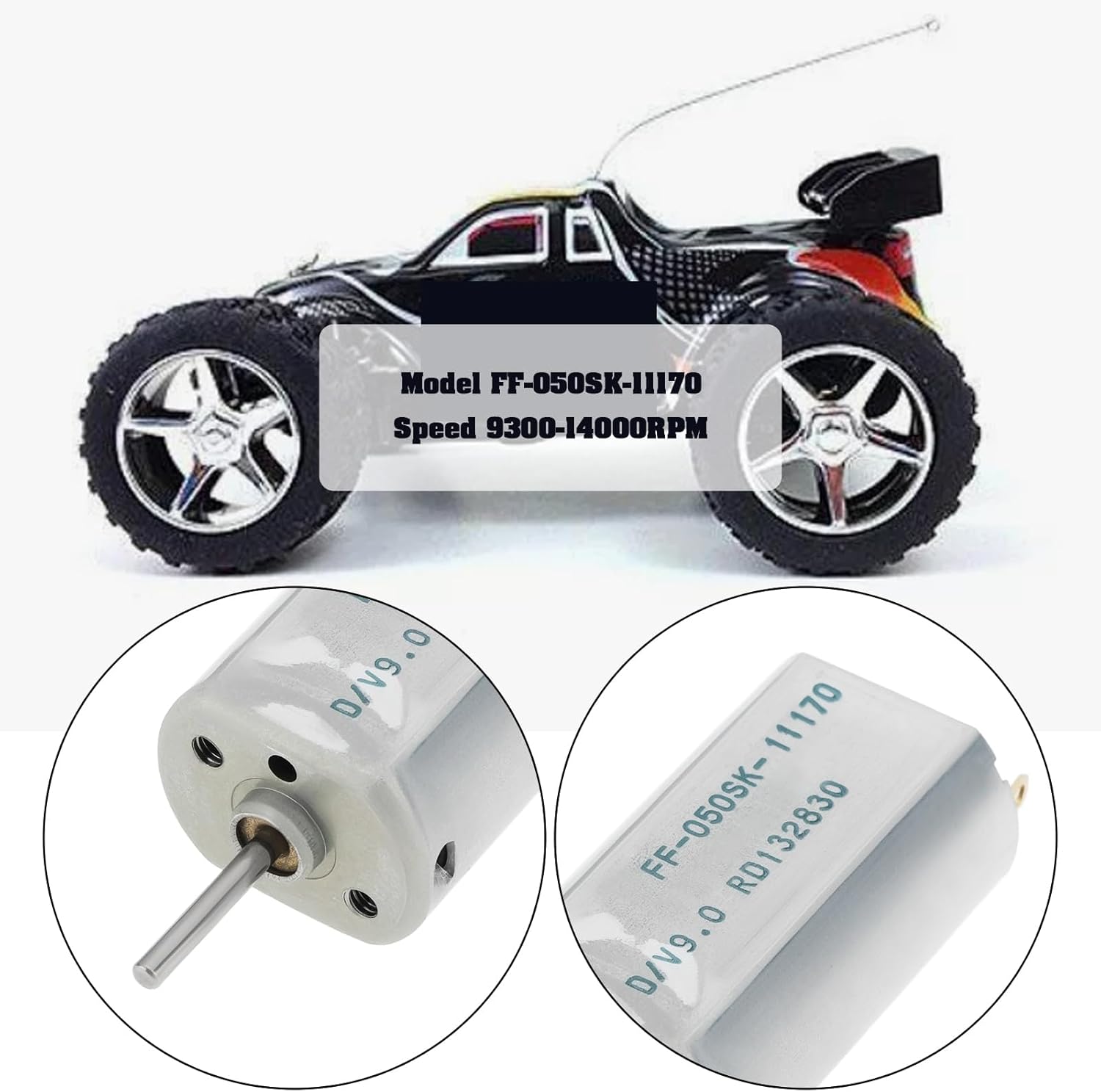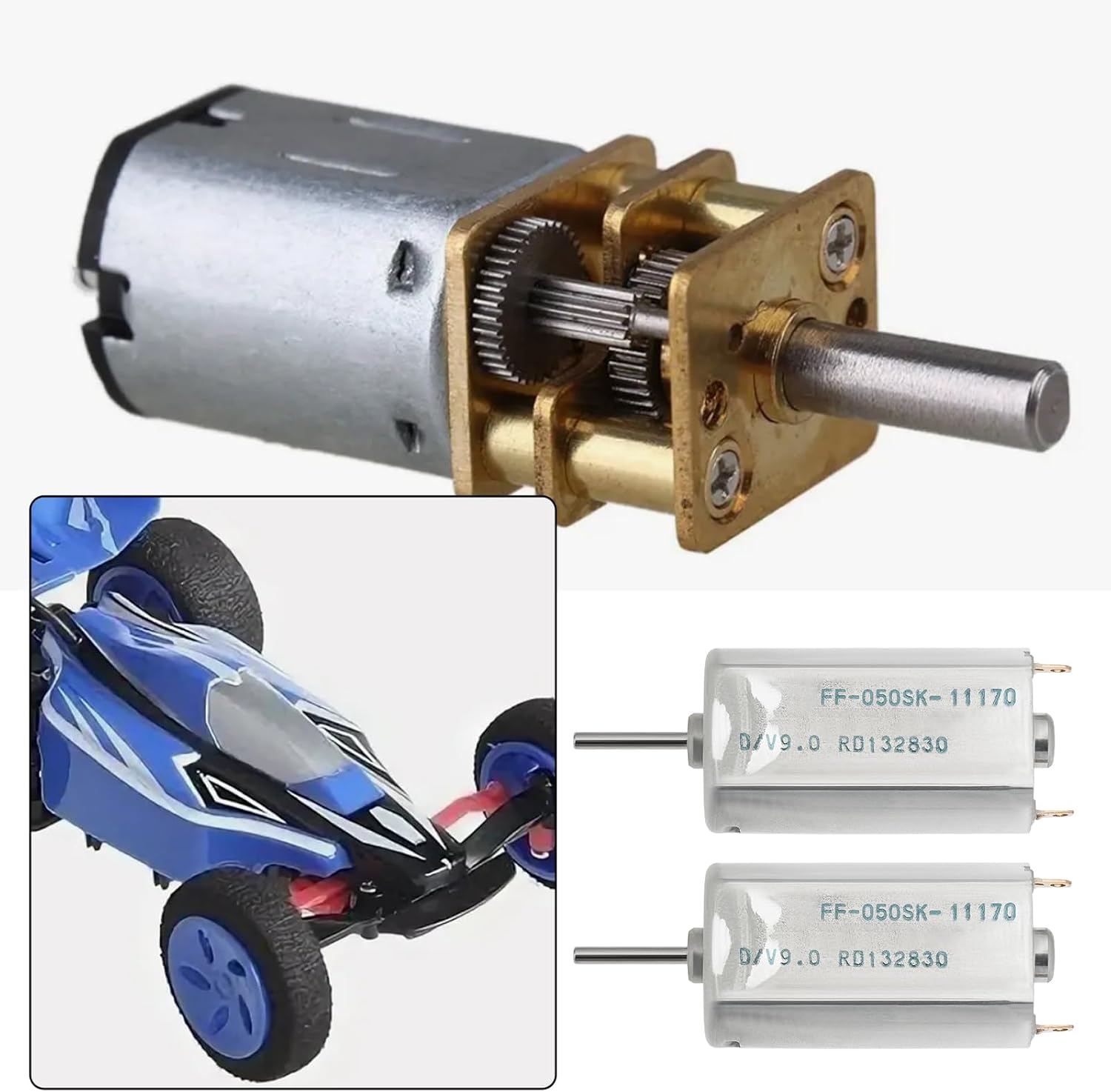 Parametri del prodotto : Modello : FF-050SK-11170, Tensione : 6 V, Corrente : 30 mA, Velocità : 9300 RPM; Tensione : 9 V, Corrente : 40 mA, Velocità : 14000 RPM. Applicabilità : Questo prodotto è adatto per mini ventilatori, macchinine elettriche, giocattoli fai da te, ecc. Facile da installare : Può essere sostituito direttamente senza necessità di regolazioni, con perfetta compatibilità ed elevata affidabilità. Materiale del prodotto : Questo prodotto è appositamente progettato e realizzato in materiale metallico, con elevata durata e non facile da danneggiare. Elenco prodotti : Il prodotto include un totale di 5 mini motori, in grado di soddisfare pienamente le esigenze di utilizzo quotidiano e di sostituzione.