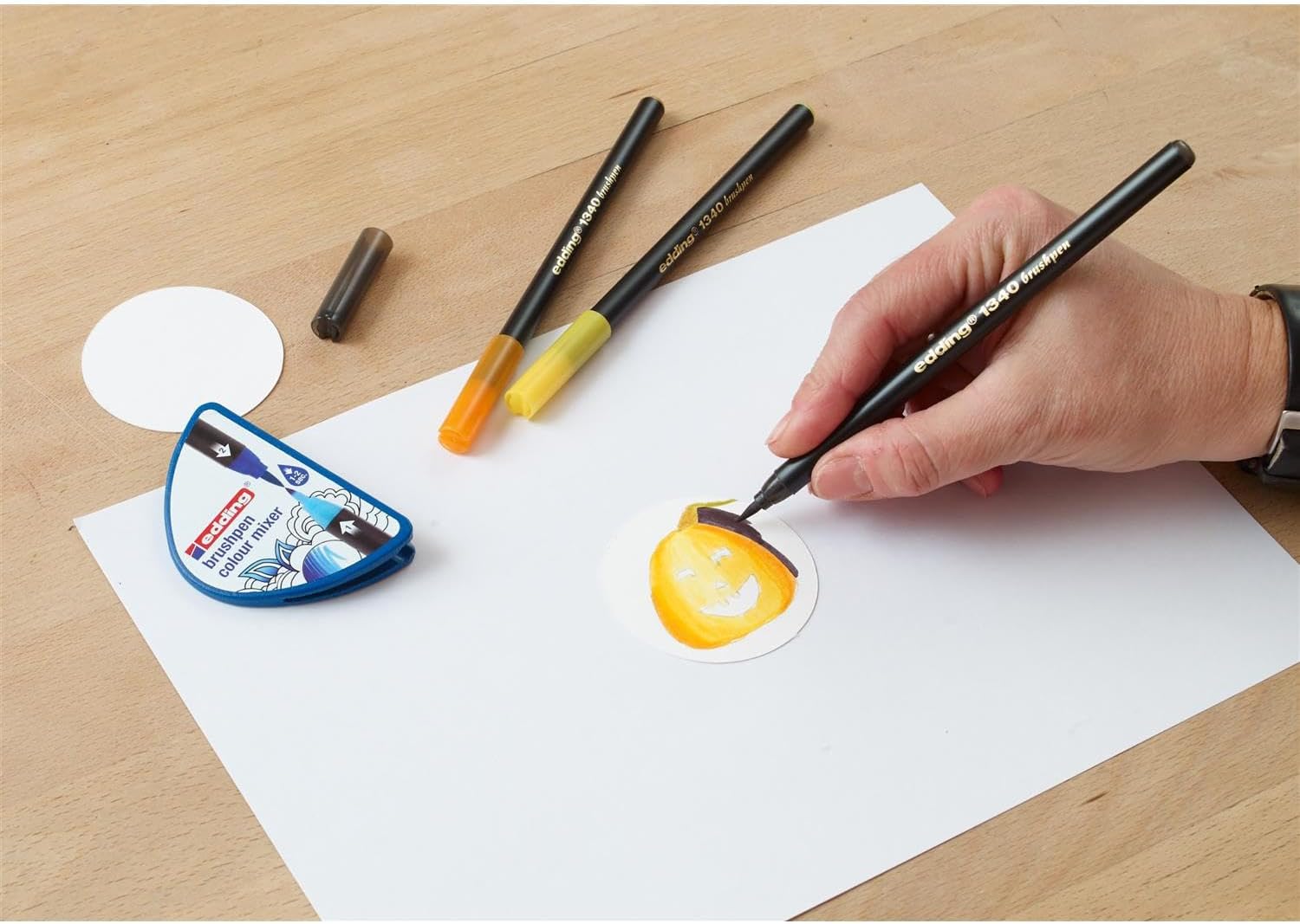 Penna a pennello sottile e luminoso, colori miscebili per carta leggera; punta morbida e flessibile per bei risultati in molti colori brillanti 1 penna a pennello in nero Pennarelli a punta morbida per colorare dettagli fini o grandi superfici; si può variare lo spessore dei tratti premendo più o meno forte Inchiostro a base d'acqua per sfumature di colore creative e bellissimi effetti acquerello; non passa attraverso la carta Le penne colorate a punta a pennello edding sono disponibili in 20 colori; si combinano molto bene con le penne edding 55, edding 1300 e edding 1200