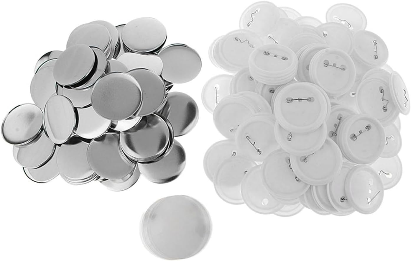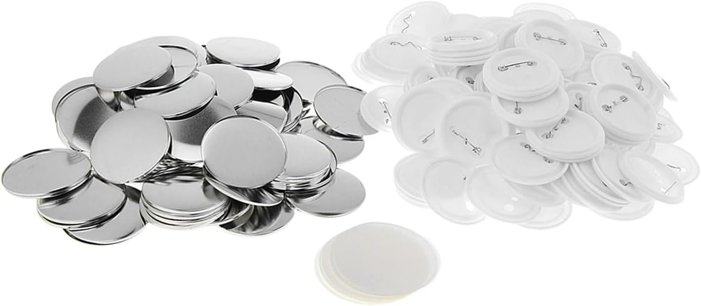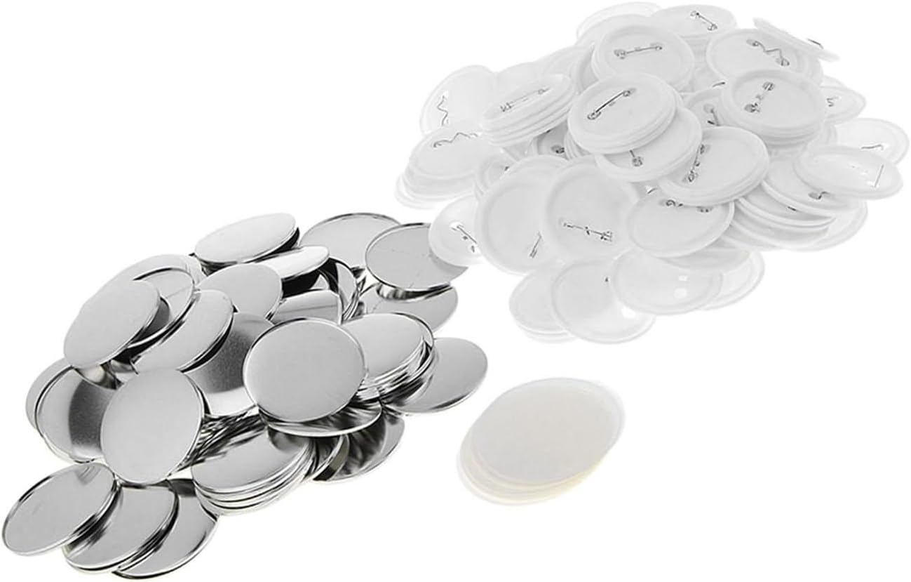 Materiale: metallo acrilico Dimensioni: diametro 5 cm La confezione include: 100 set di accessori per la creazione di bottoni vuoti Colore: bianco Materiale: plastica