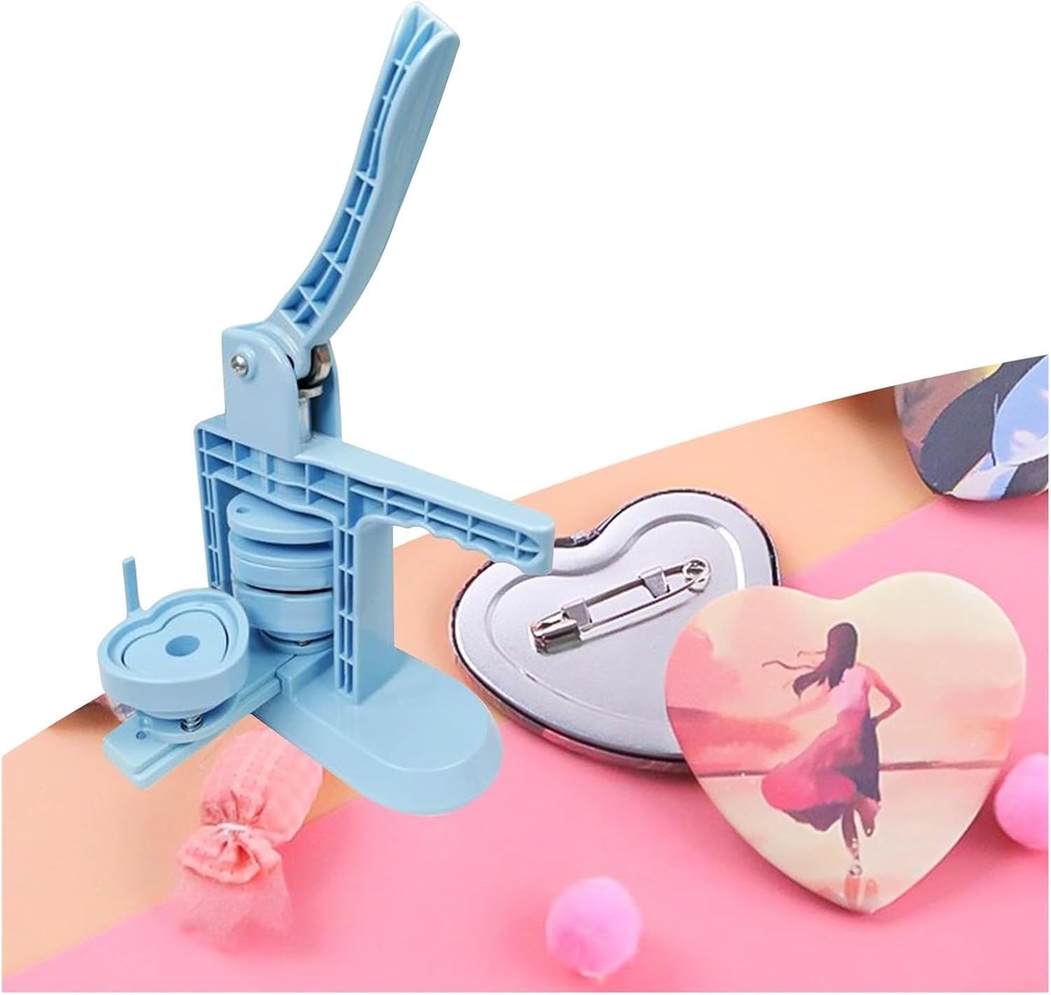 Materiale: plastica, metallo Colore: blu Tabella delle taglie: 23 cm x 8 cm x 37 cm La confezione include: 1 set di macchine per la creazione di bottoni Peso: 2-3 kg